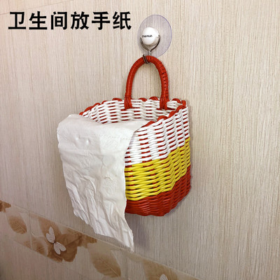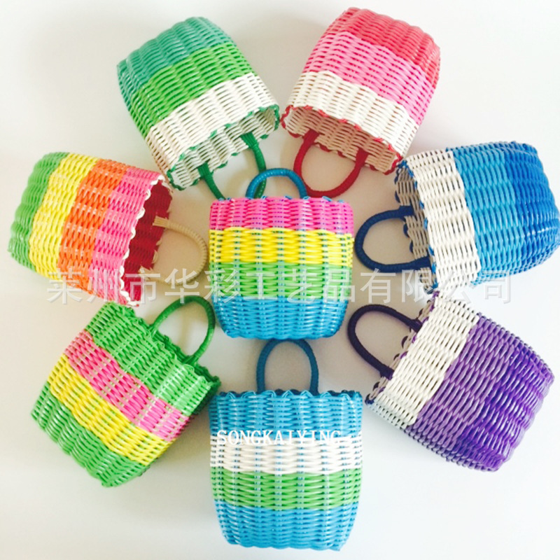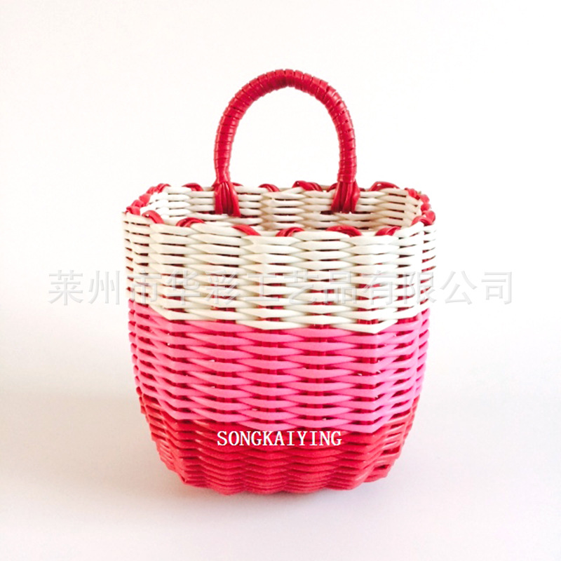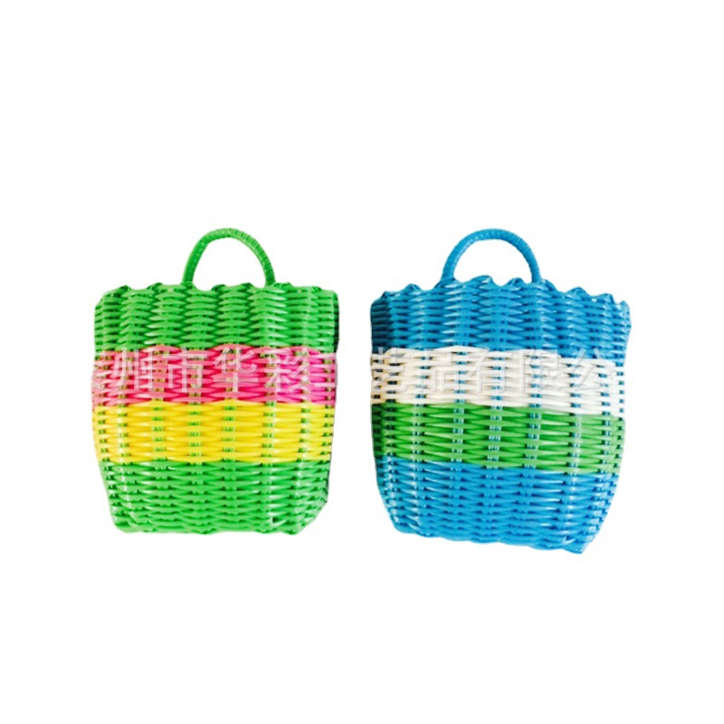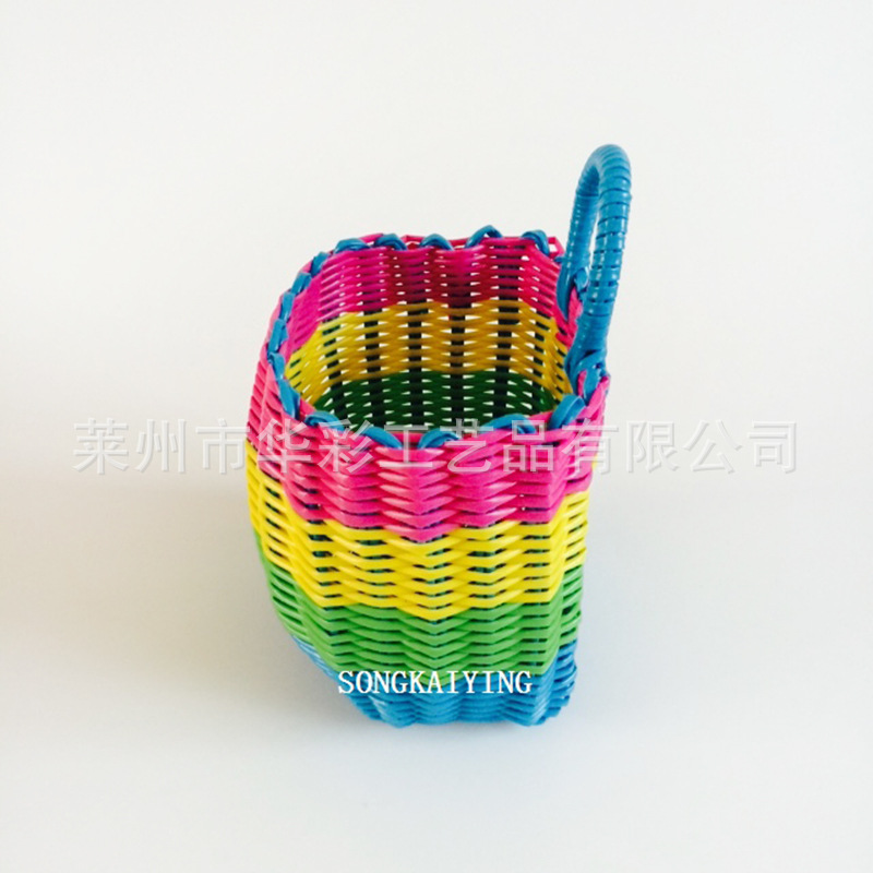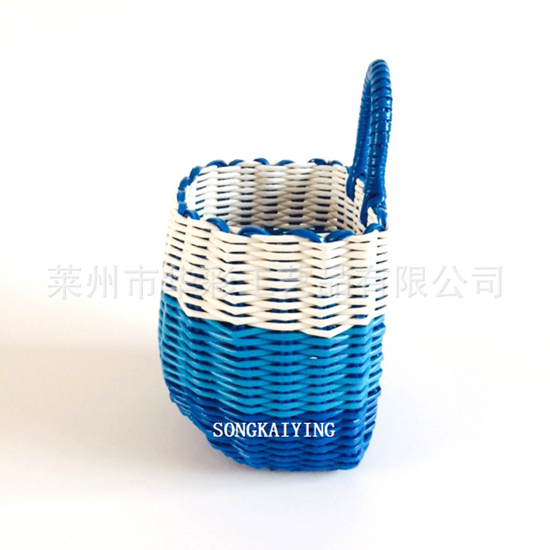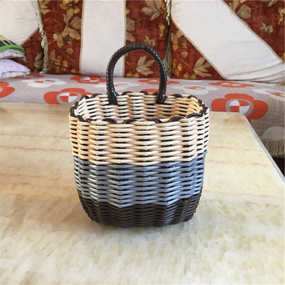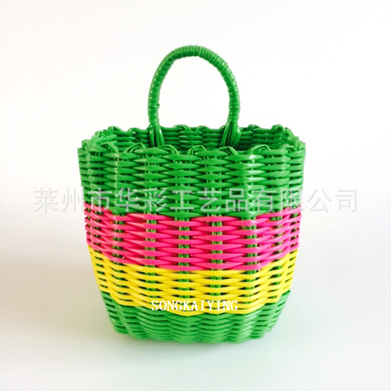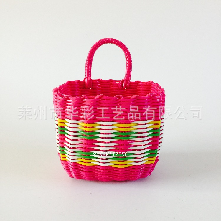销售塑料仿藤编织小挂篮衣篓单把收纳筐手提篮花篮电动车浴筐