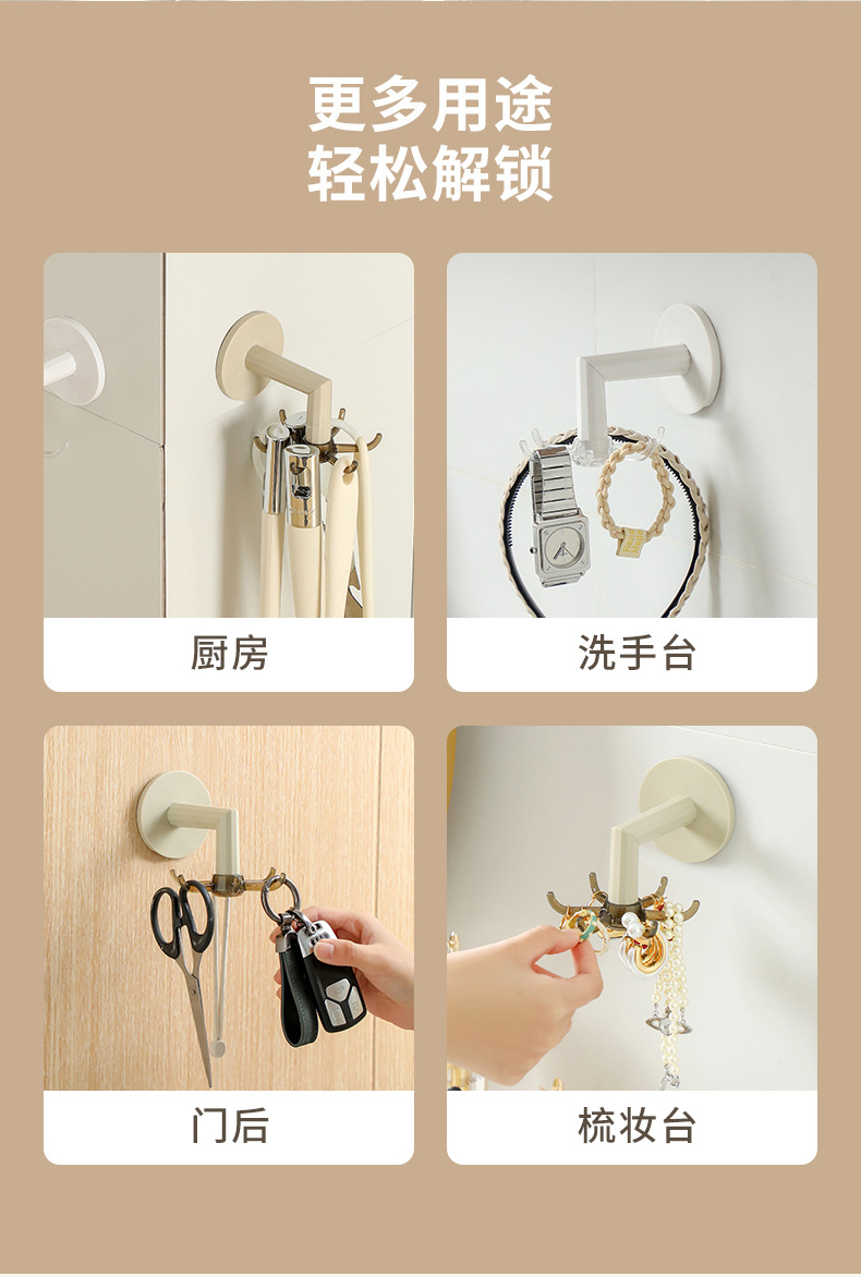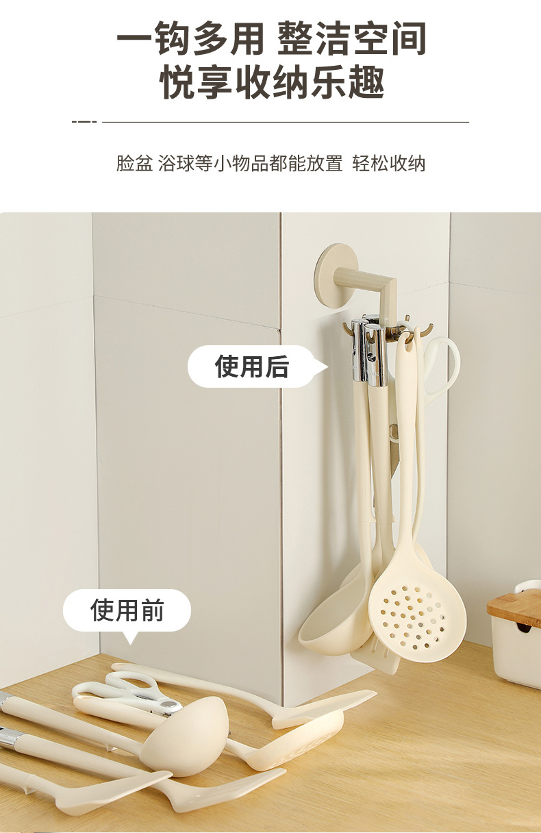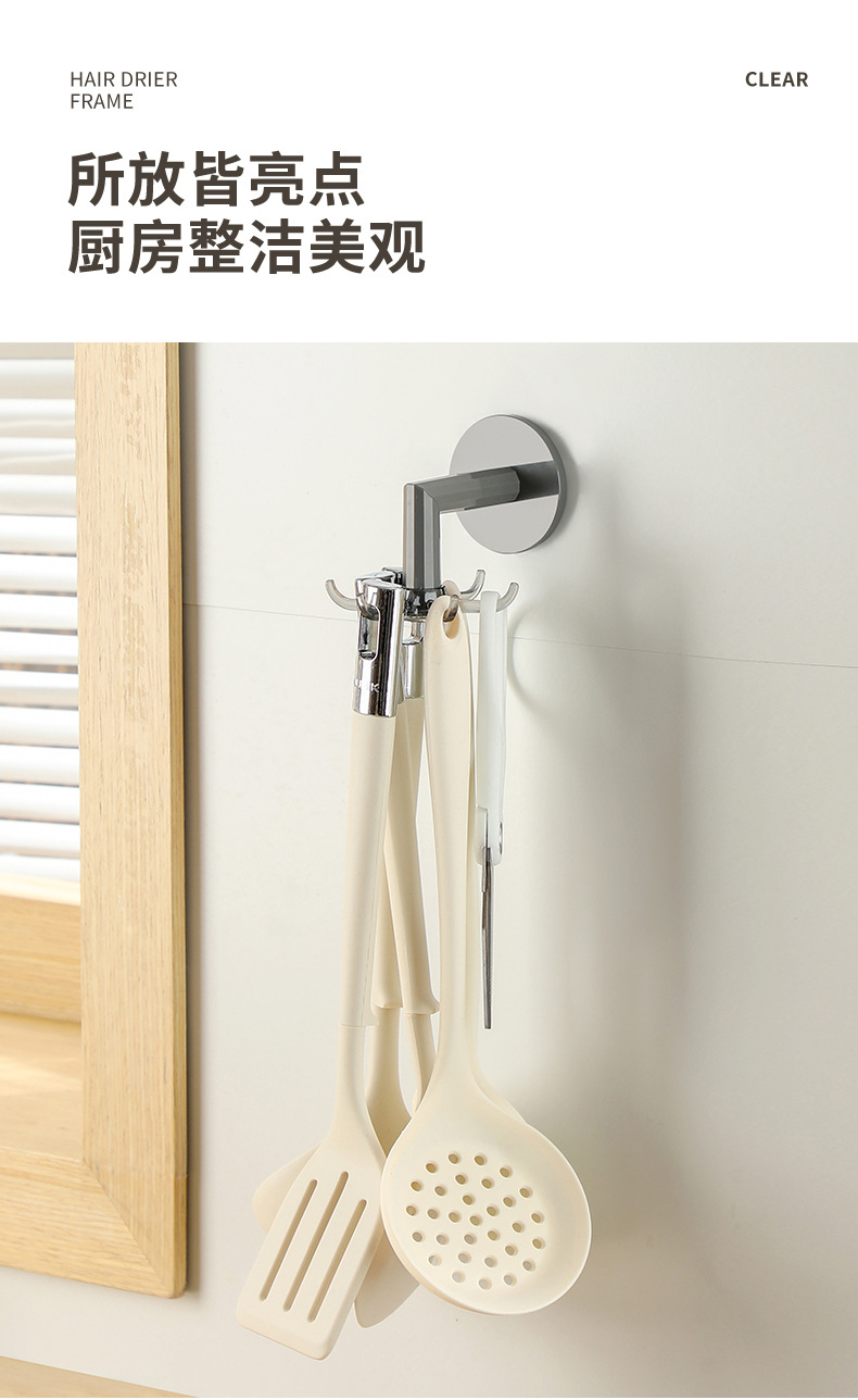 厨房旋转挂钩壁挂式置物架厨具收纳架锅铲勺子铲子挂架免打孔架子