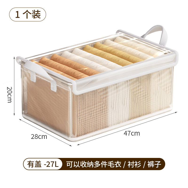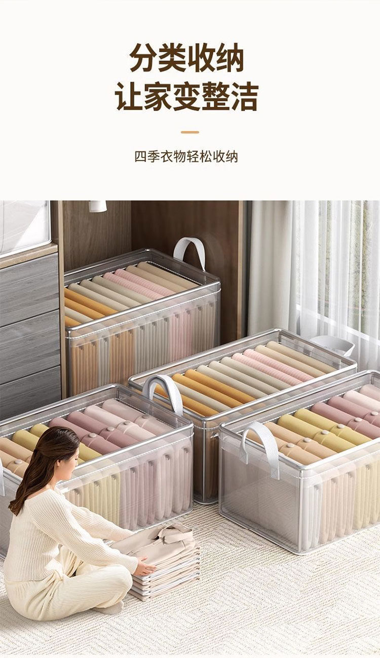 透明可视折叠便携衣服裤子收纳箱家用衣柜放衣物裤子分层神器