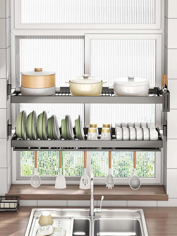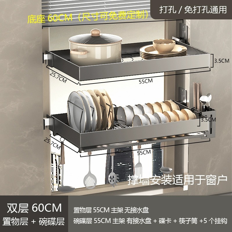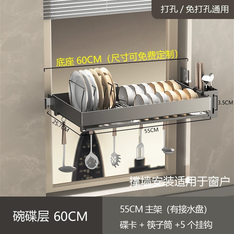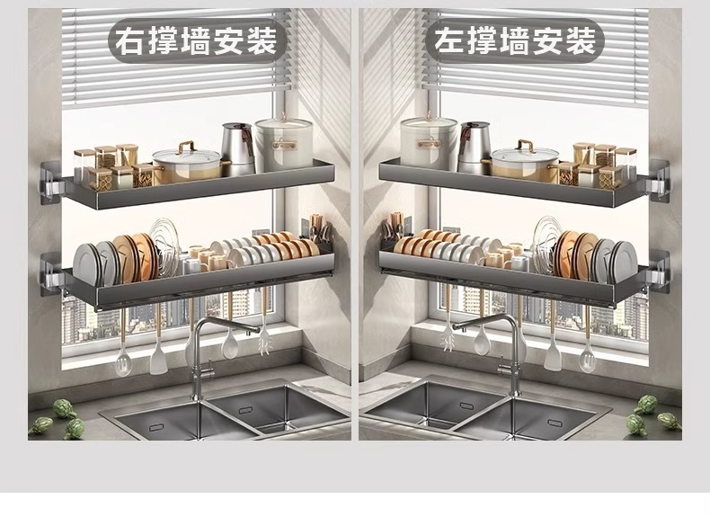 厨房墙上壁挂碗架不锈钢窗台置物架沥水架免打孔水槽放碗碟架窗户