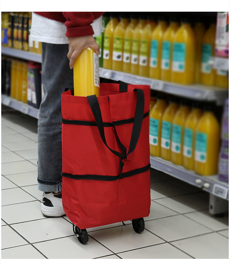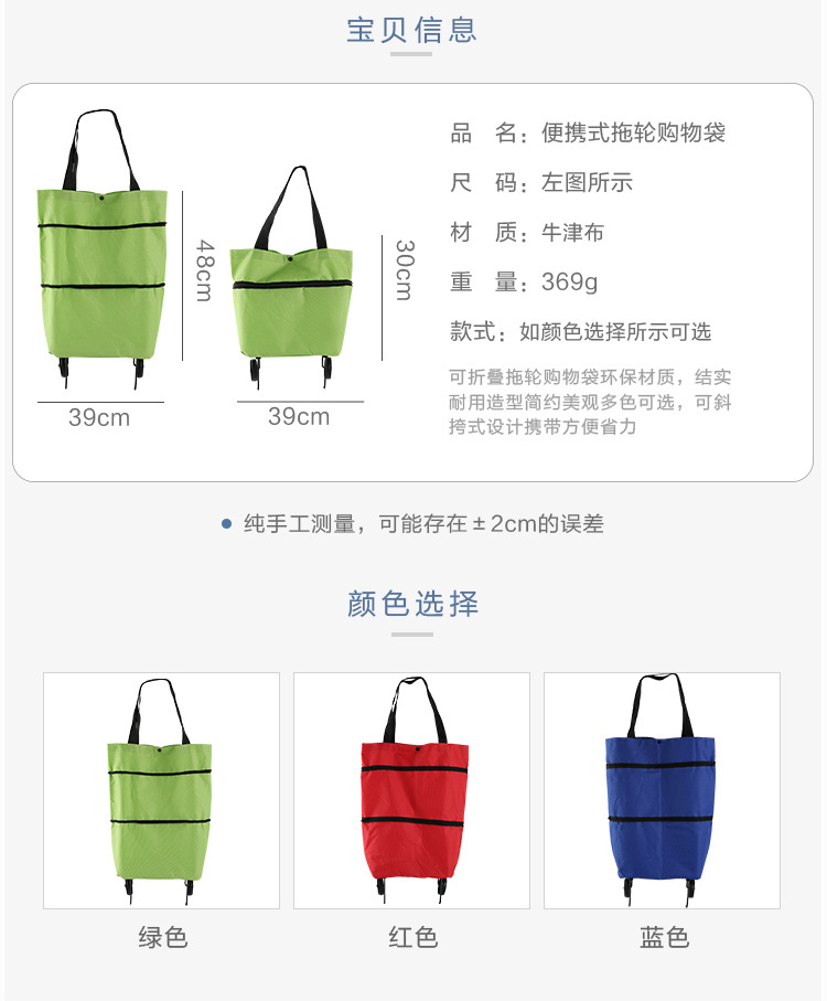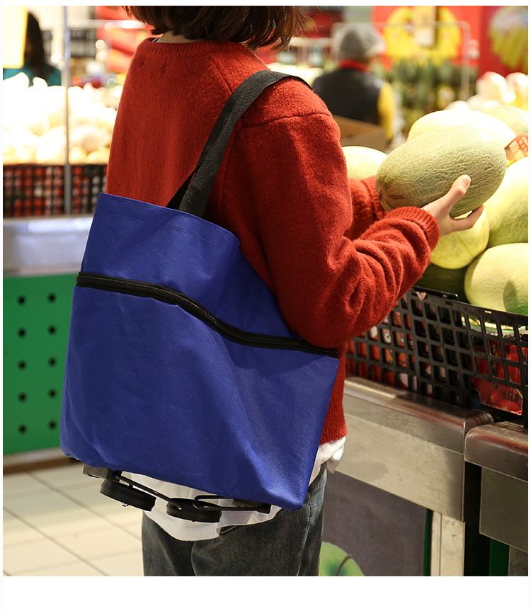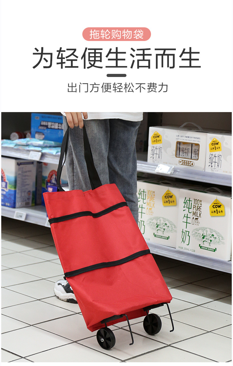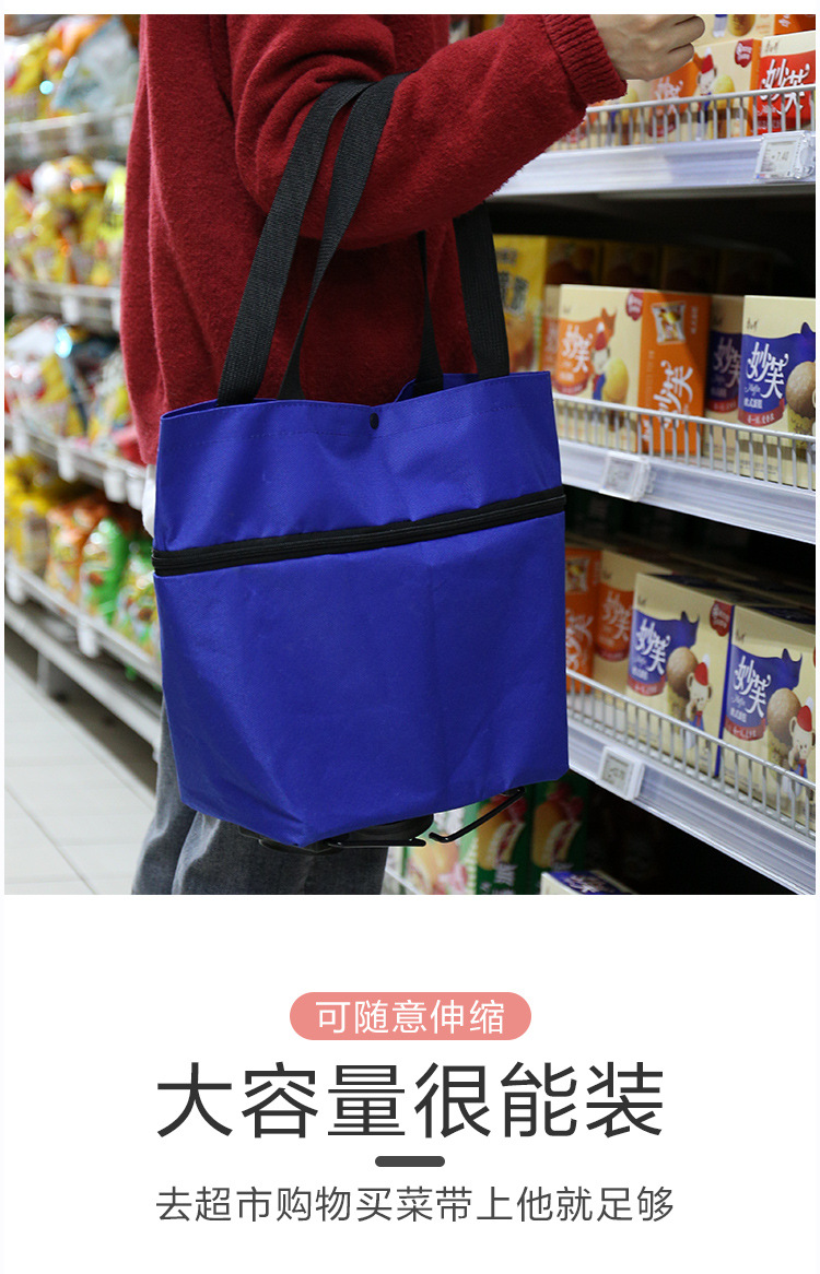 便携式折叠购物袋带印花牛津布手提可拉购物车购物买菜手拉车厂货