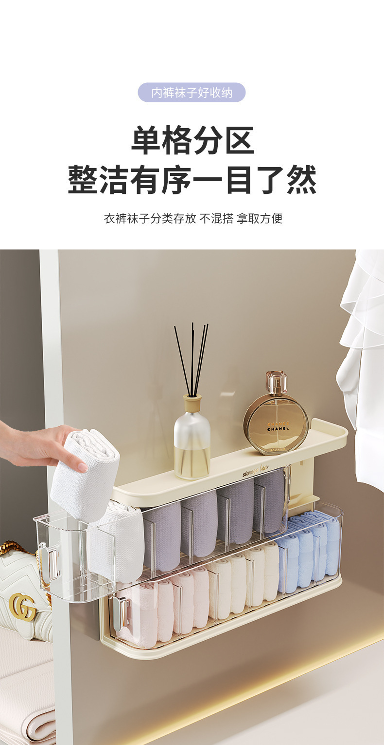 多功能双层内衣内裤袜子收纳盒壁挂式家用衣柜内抽屉贴身衣物分格
