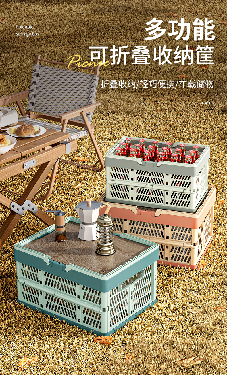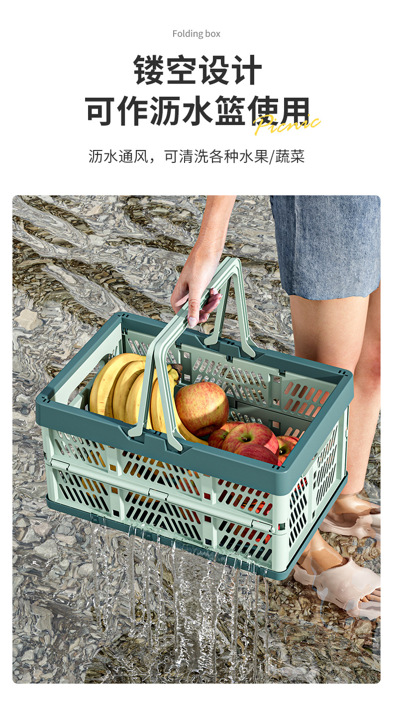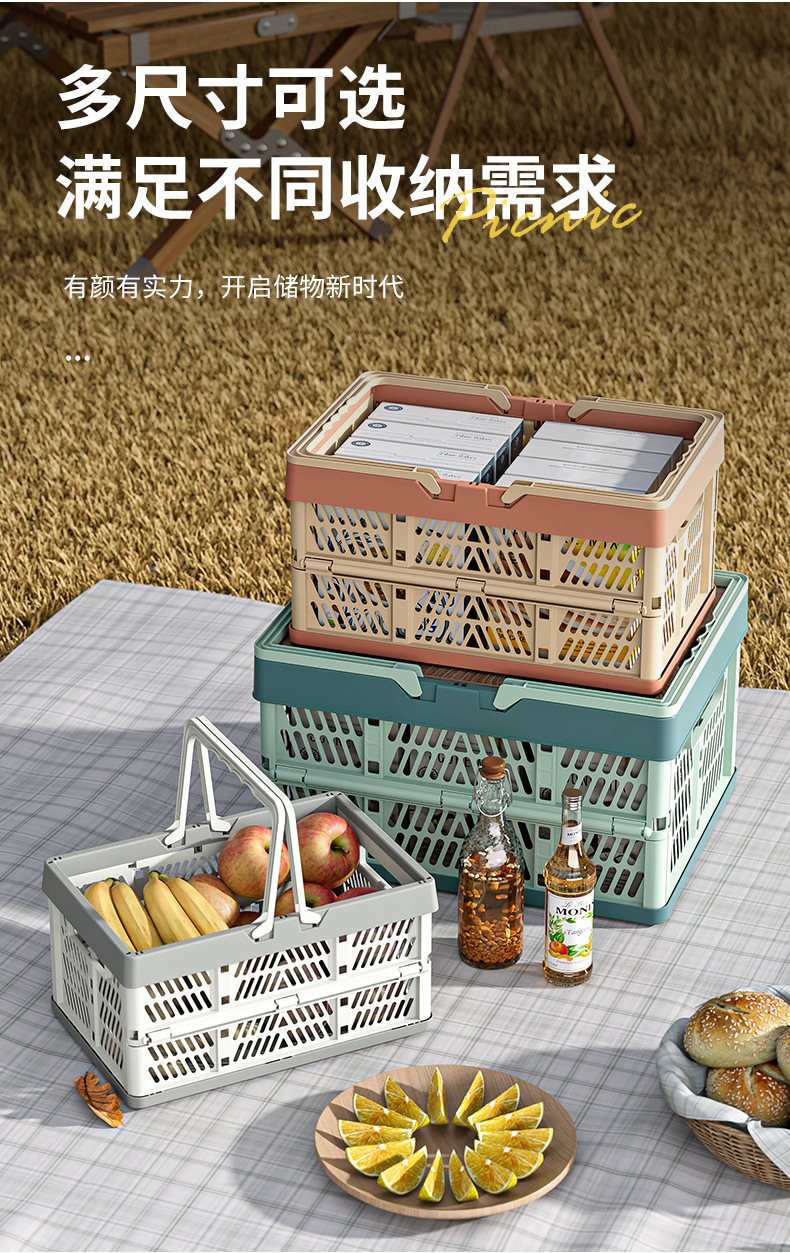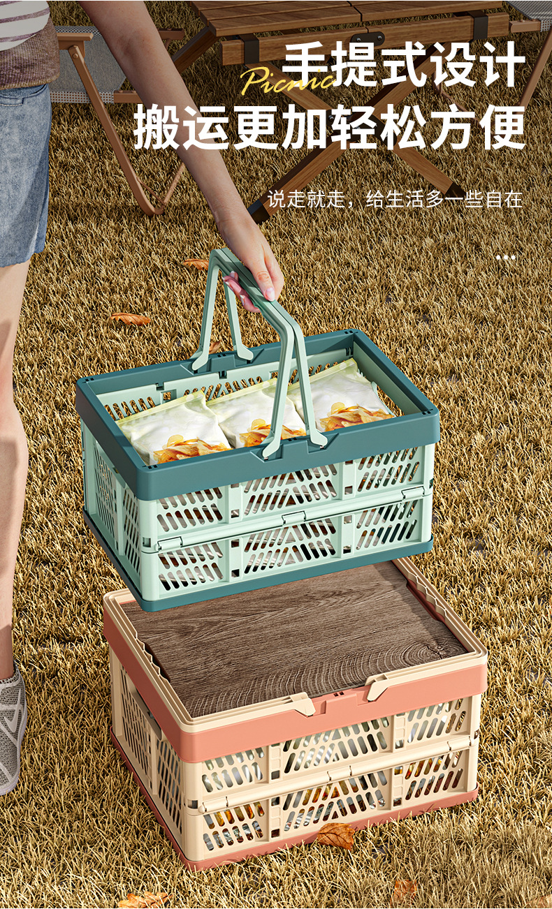 折叠塑料收纳篮户外野餐篮家用零食玩具收纳筐便携手提篮收纳框