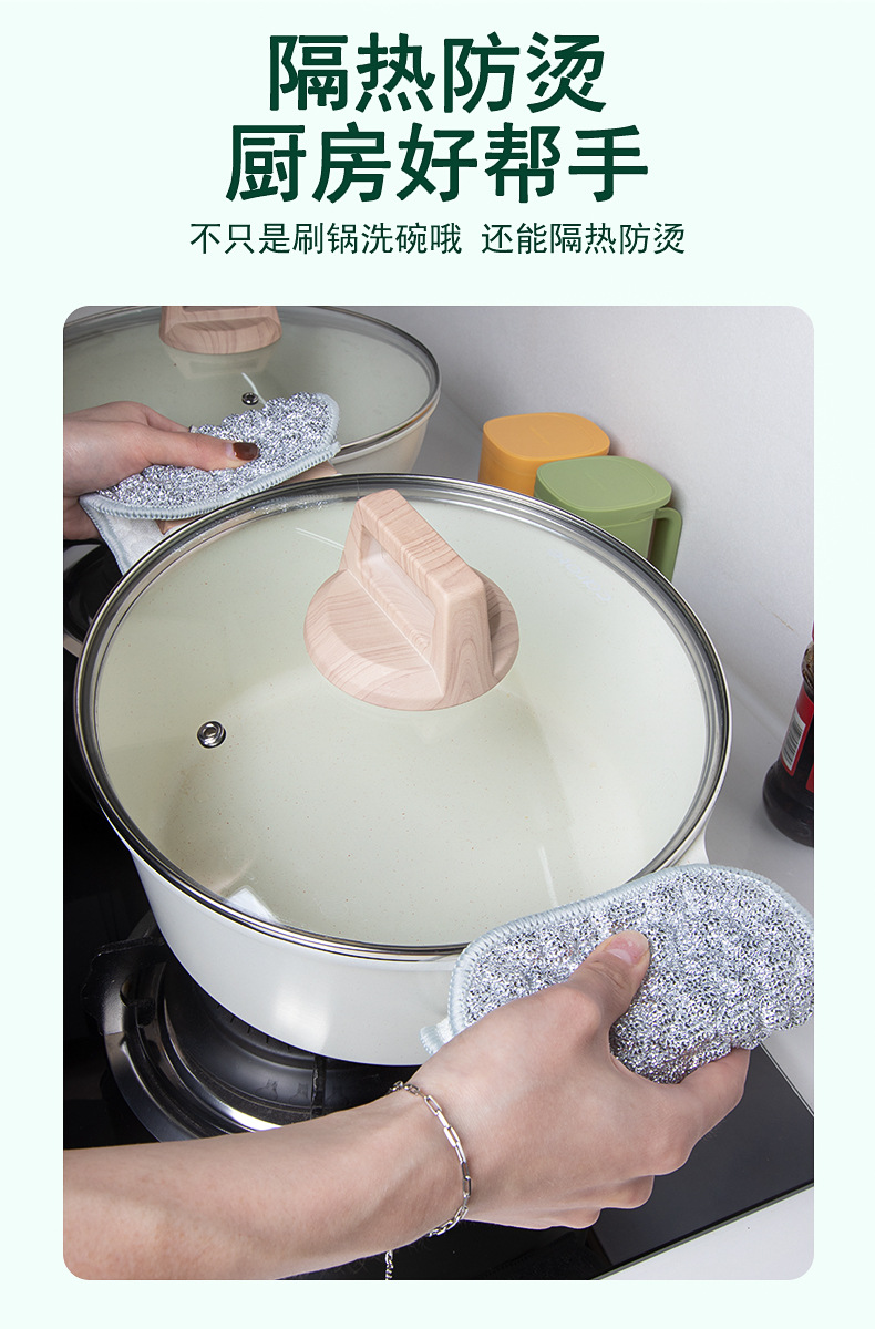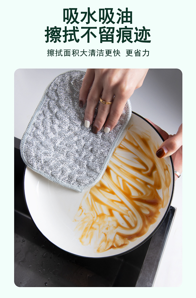 钢丝洗碗布不沾油钢丝球抹布厨房专用金属丝清洁布双面银丝泡泡巾