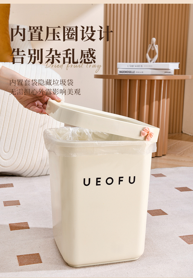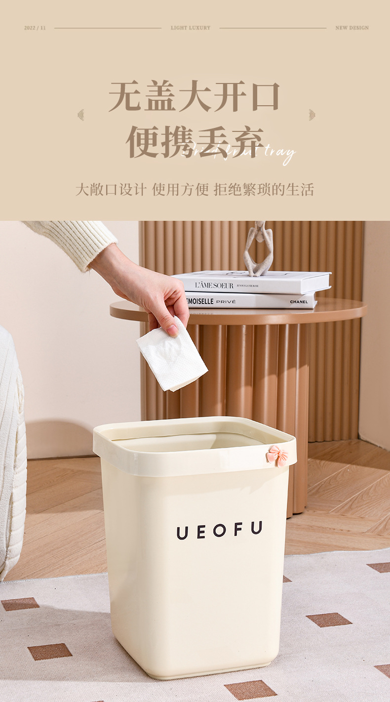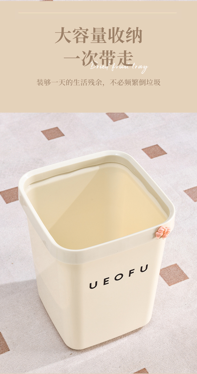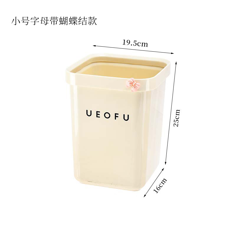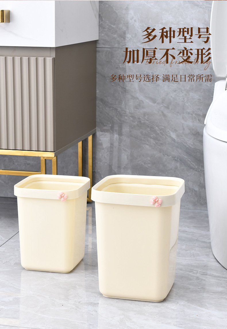 奶油风压圈垃圾桶方形大容量家用客厅卧室卫生间高颜值蝴蝶结纸篓