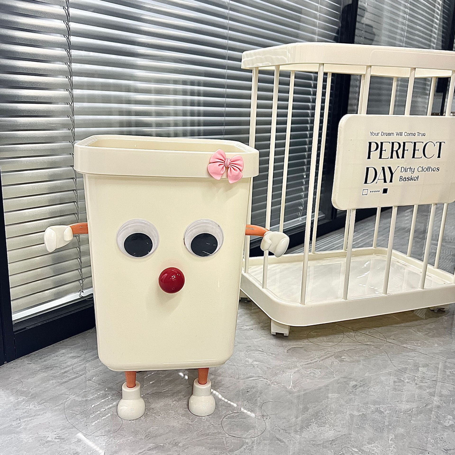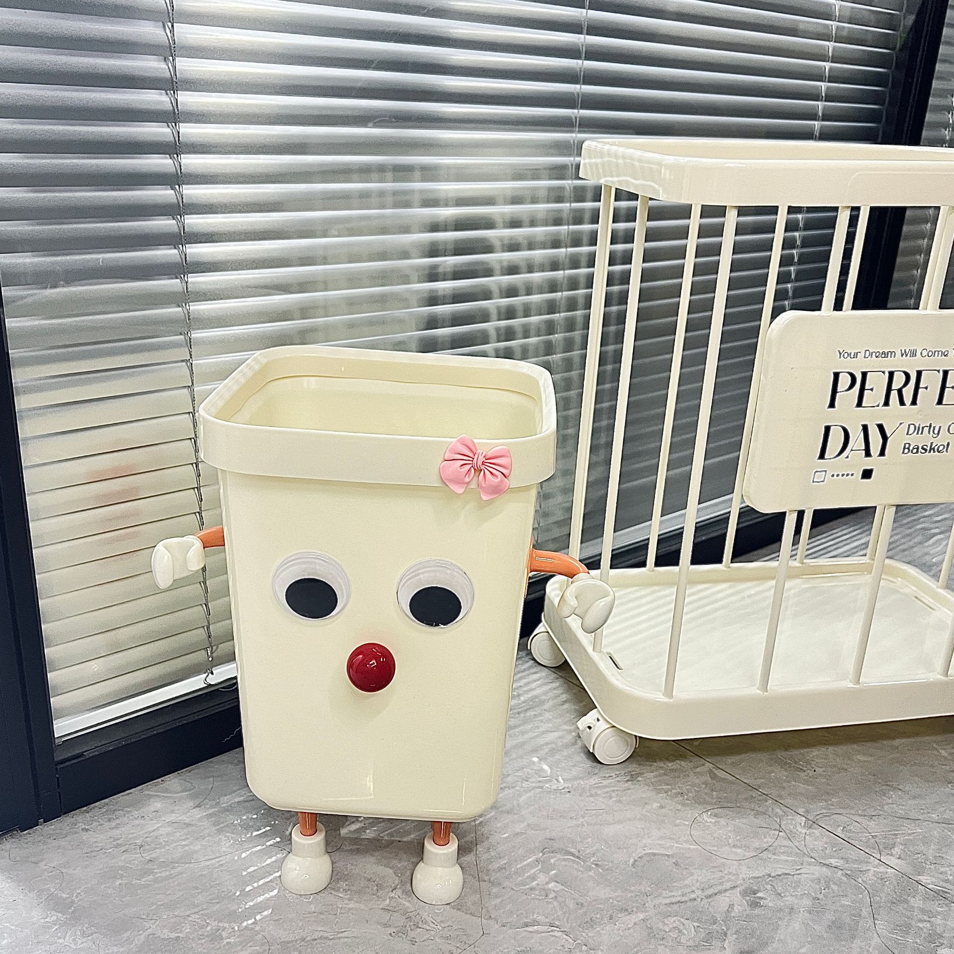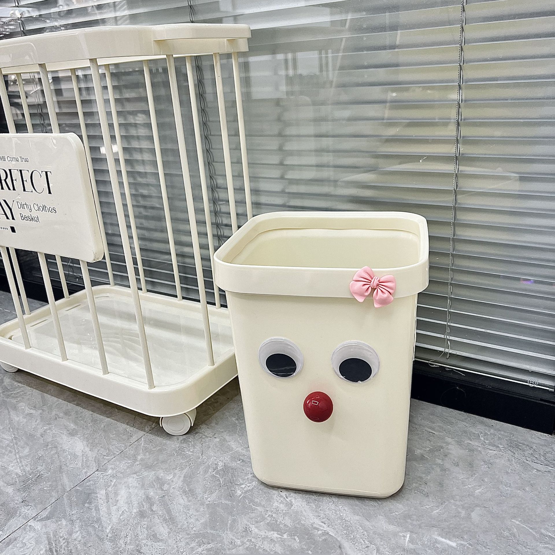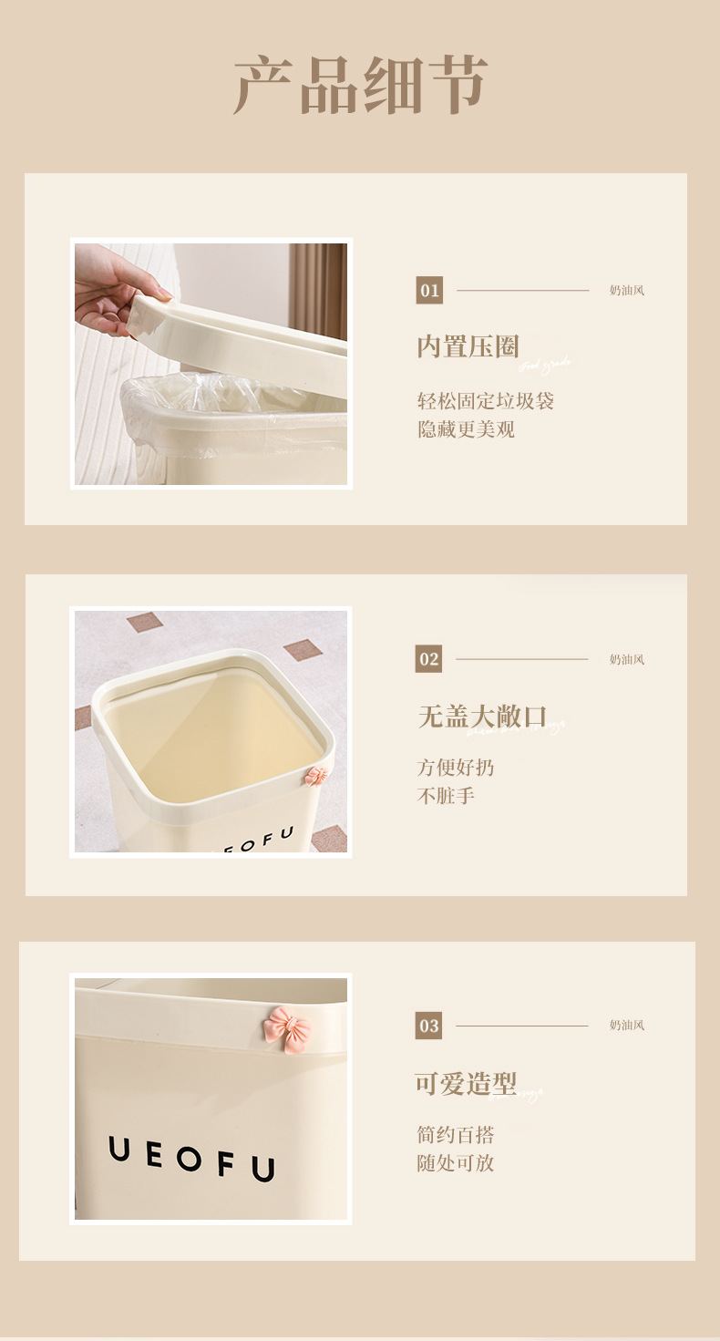 奶油风压圈垃圾桶方形大容量家用客厅卧室卫生间高颜值蝴蝶结纸篓