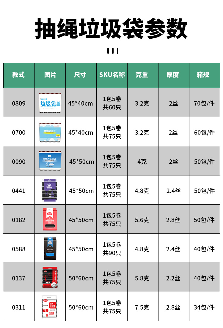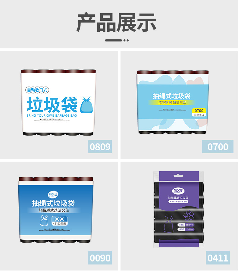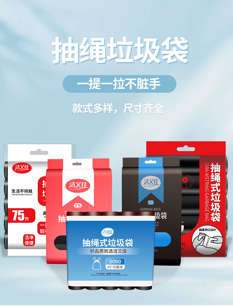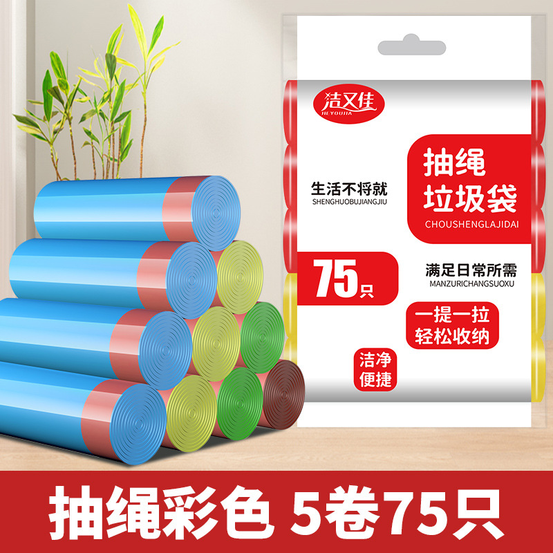抽绳垃圾袋加厚手提式自动束口大号点断式家用穿绳加大加厚塑料袋