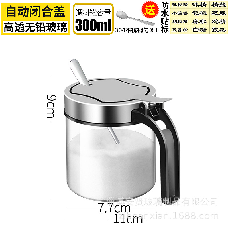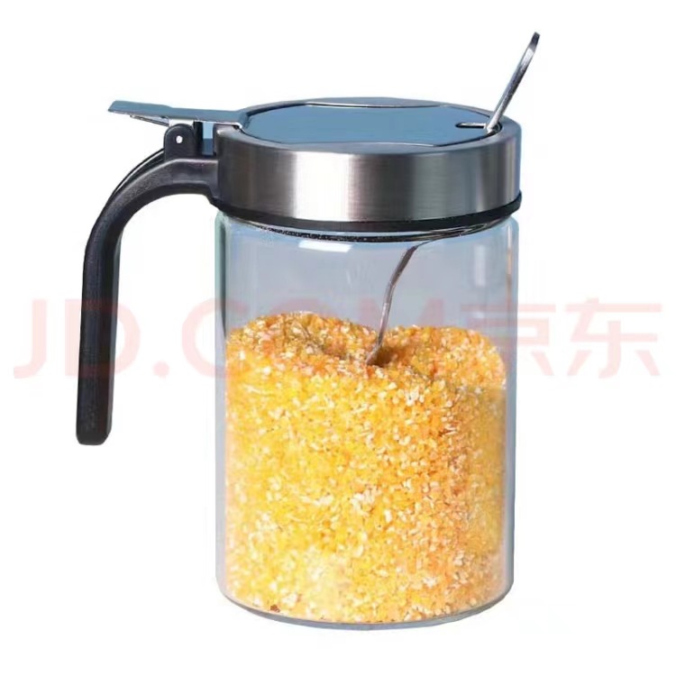 调料盒玻璃调味罐调味瓶罐胡椒罐盐罐不锈钢盖带勺子厨房大号家用
