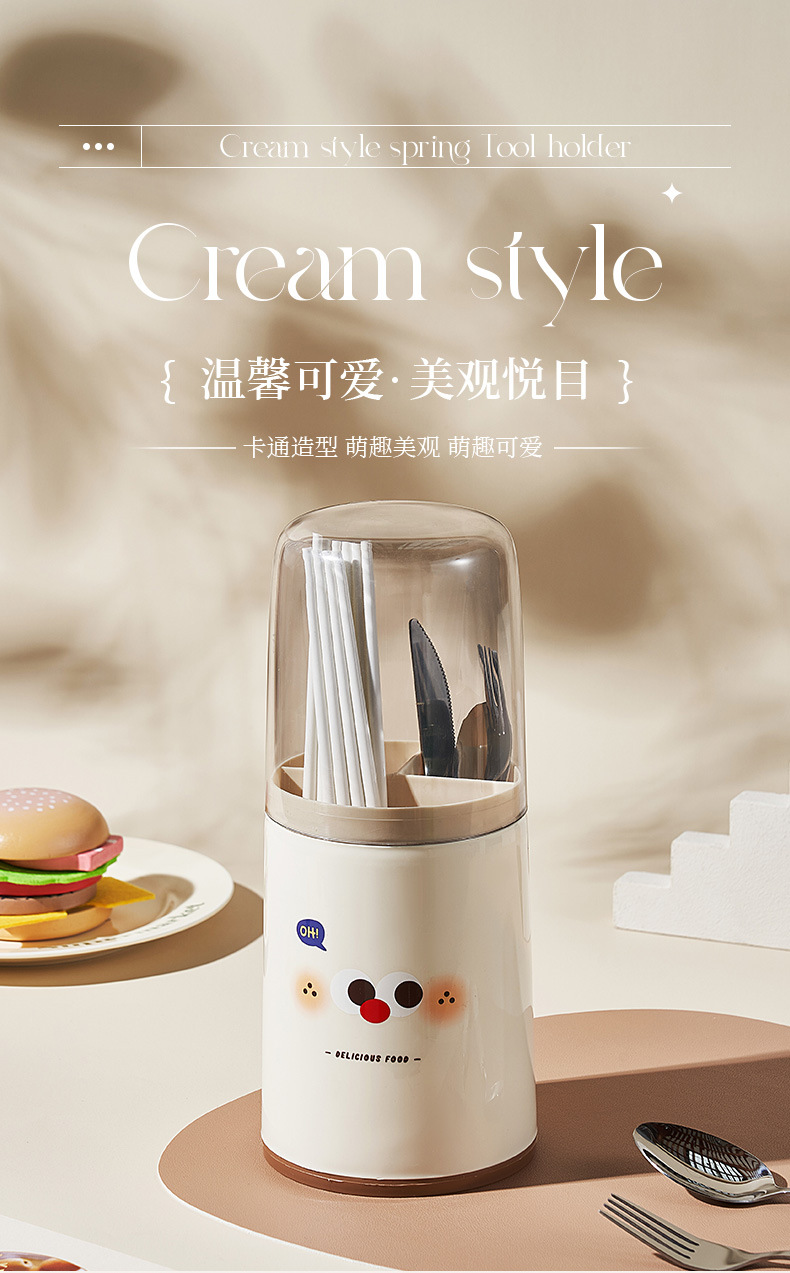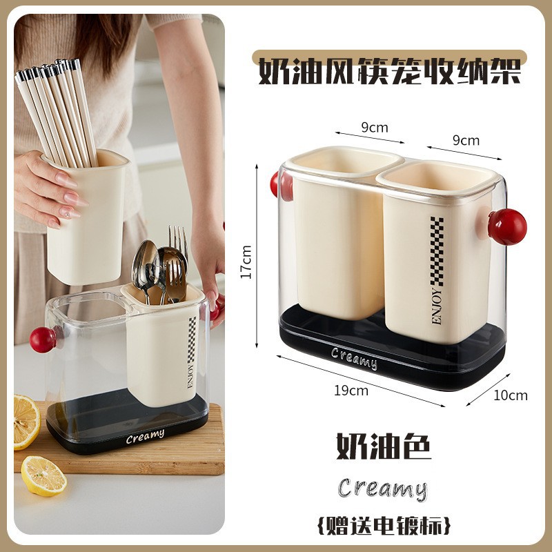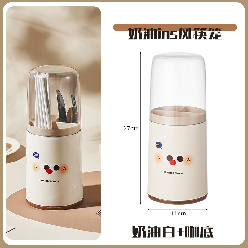 家用多功能筷子笼沥水筷子筒置物架厨房餐具收纳盒塑料带盖防尘