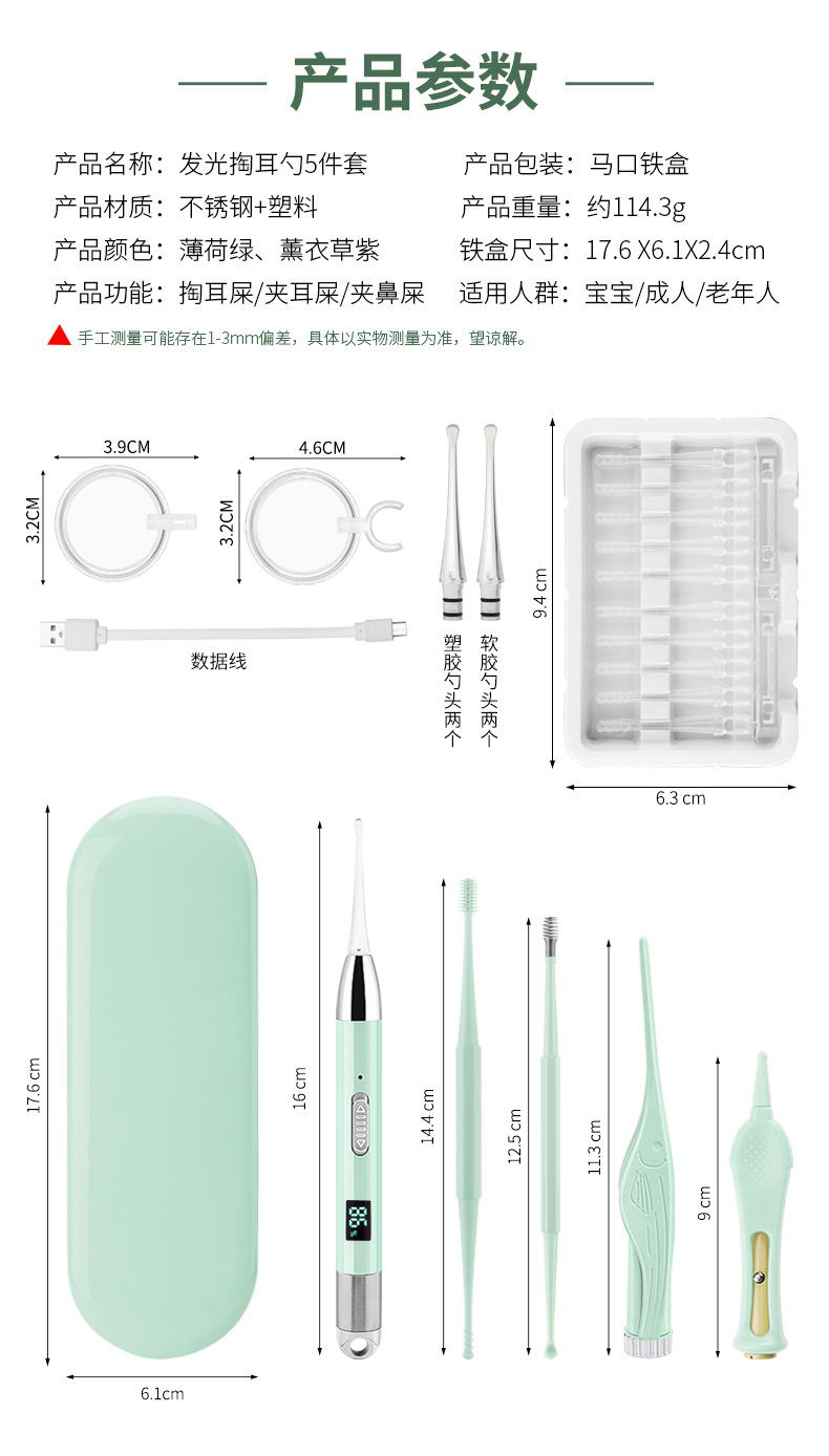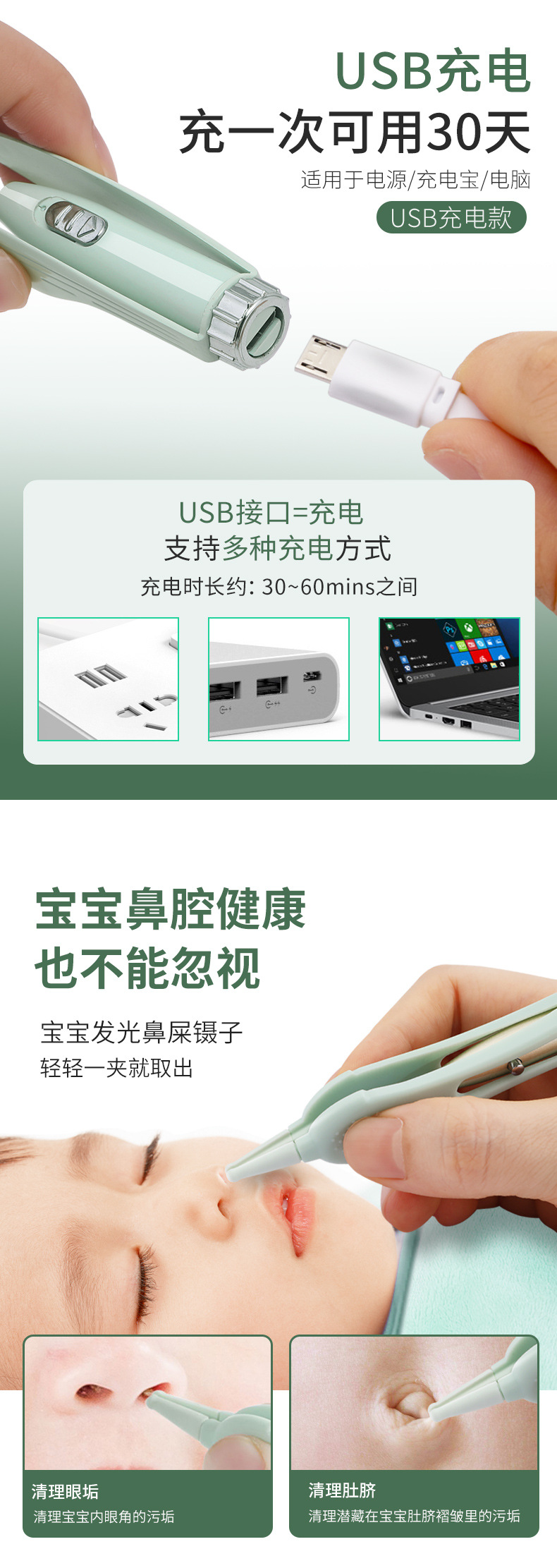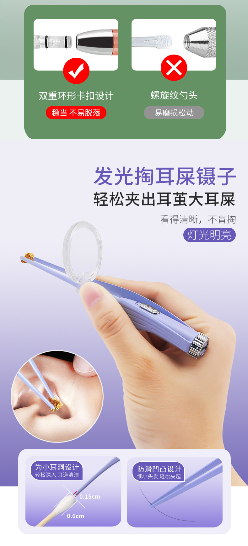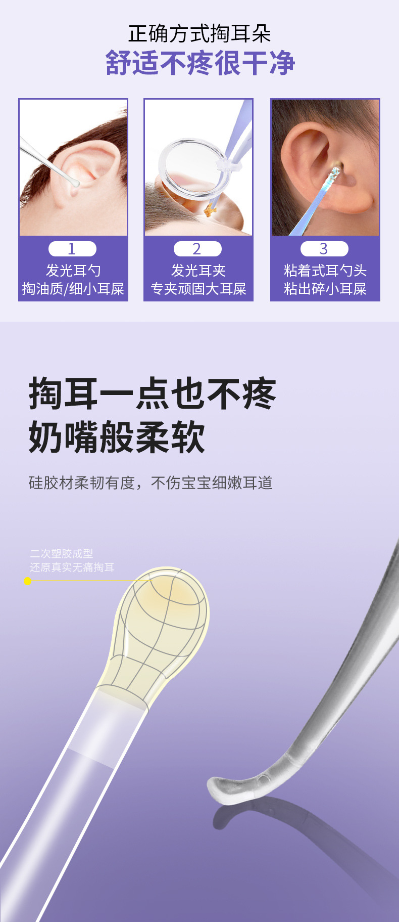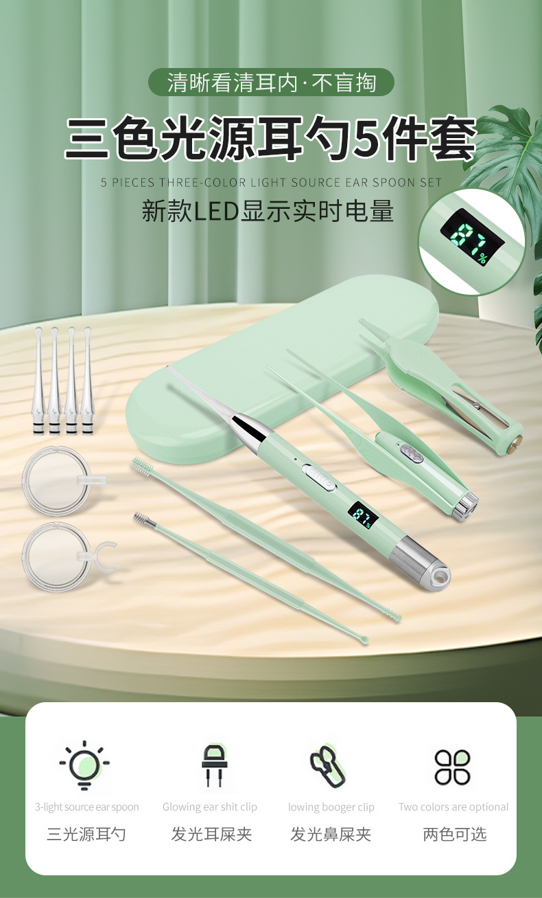 现货三光源挖耳勺宝宝掏耳朵采耳工具可视发光耳屎鼻屎镊子套装