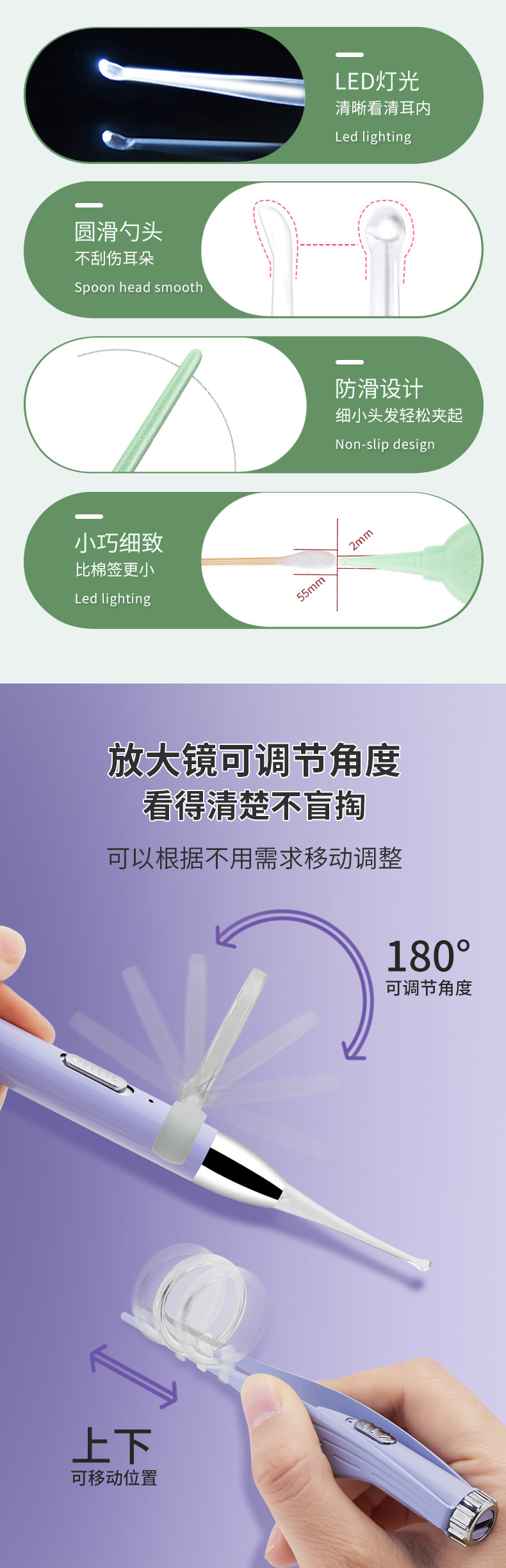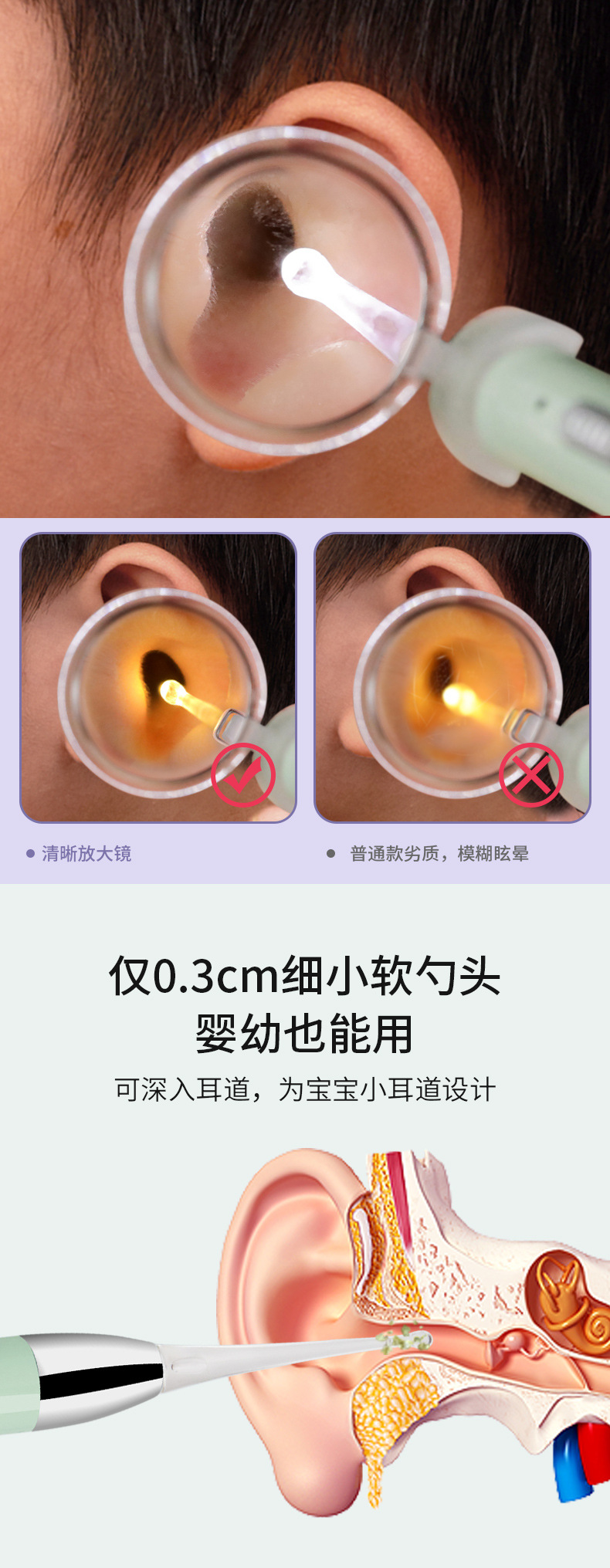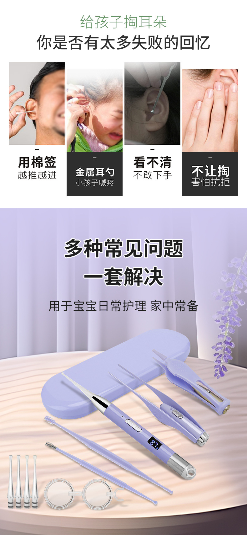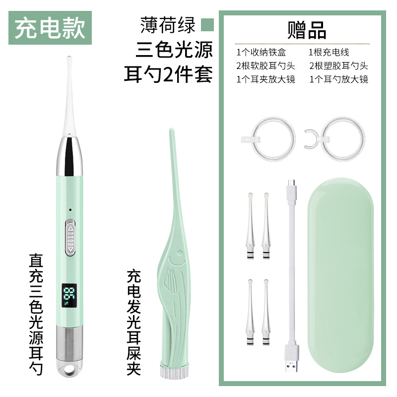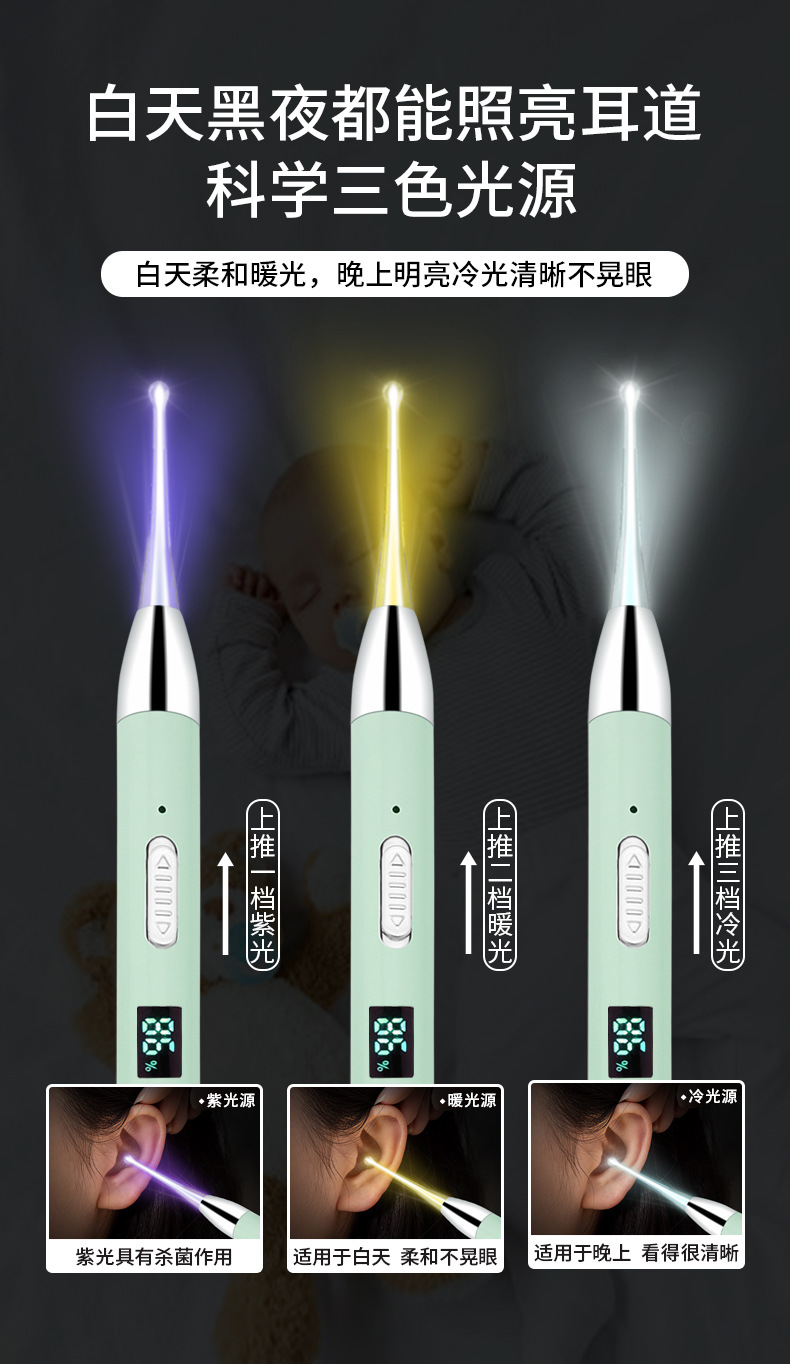 现货三光源挖耳勺宝宝掏耳朵采耳工具可视发光耳屎鼻屎镊子套装