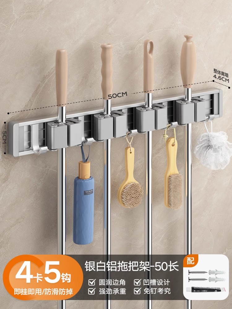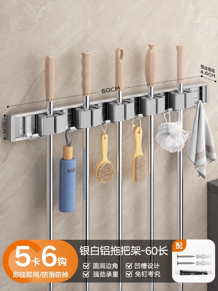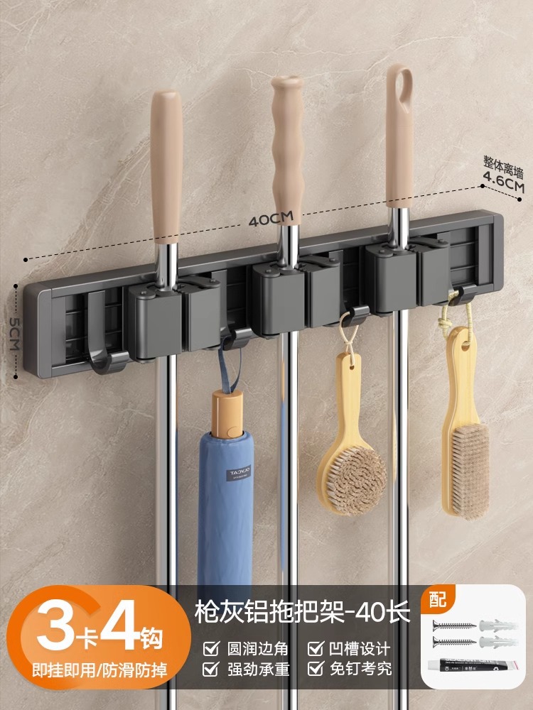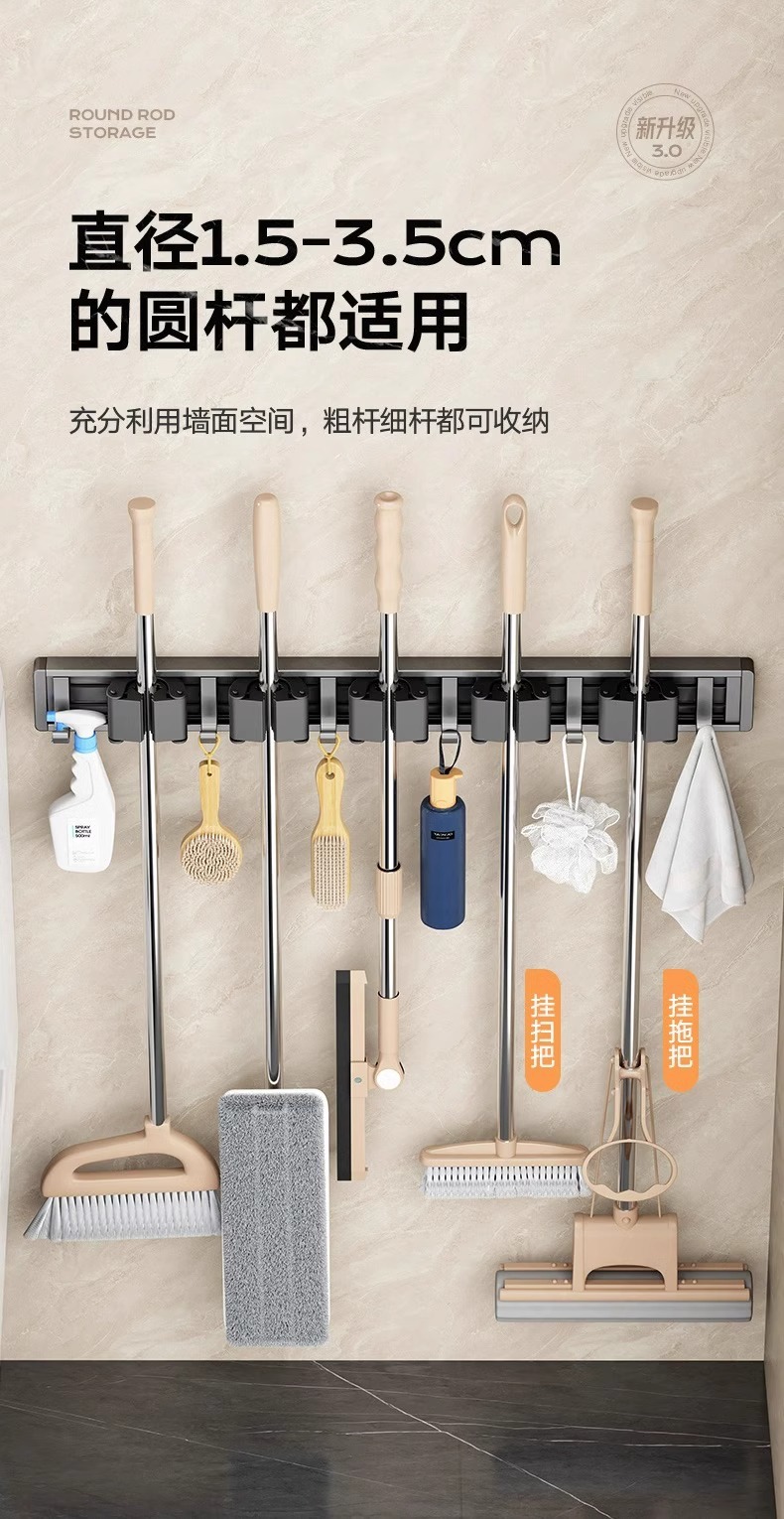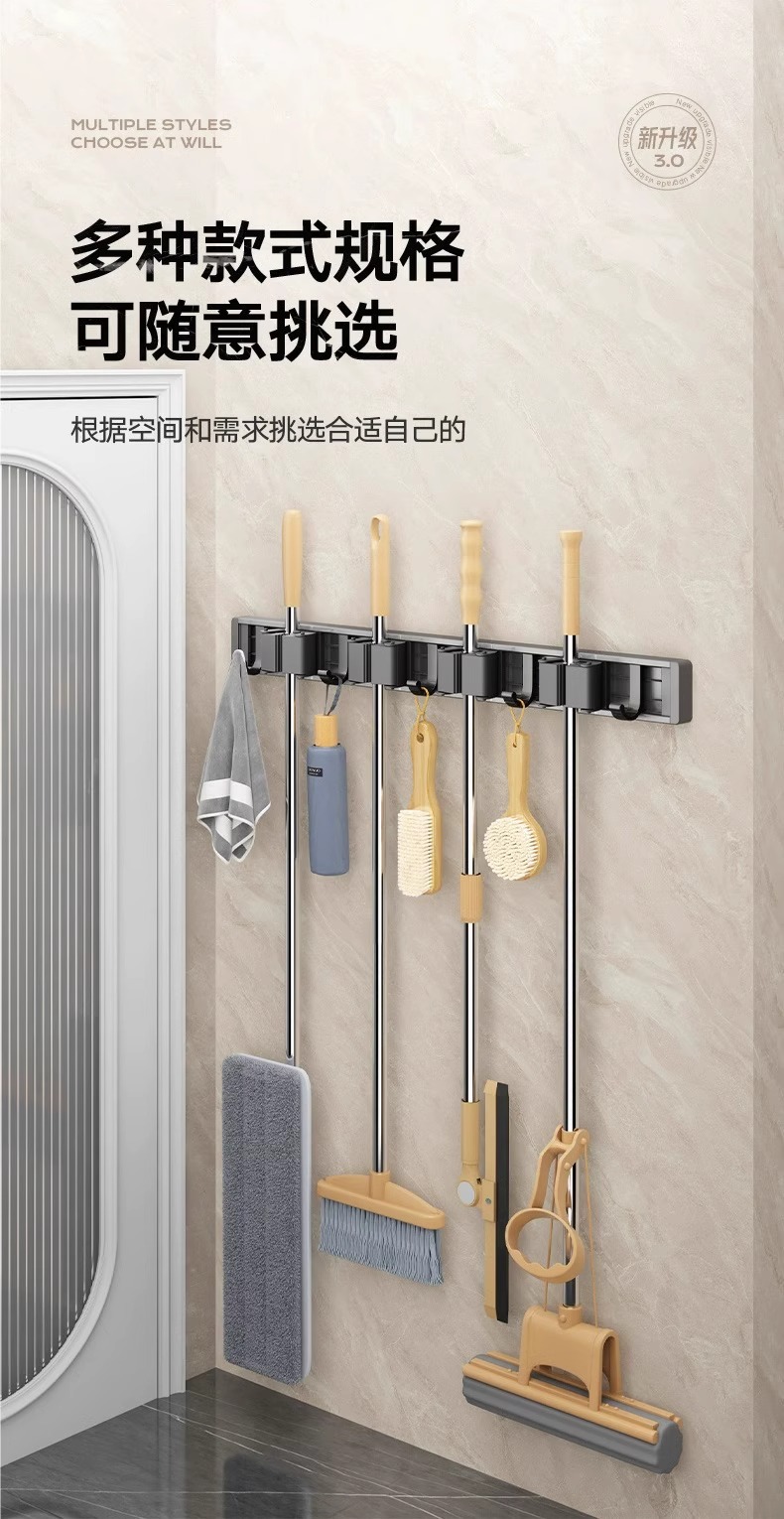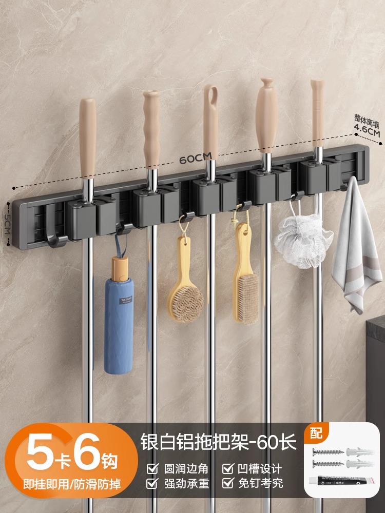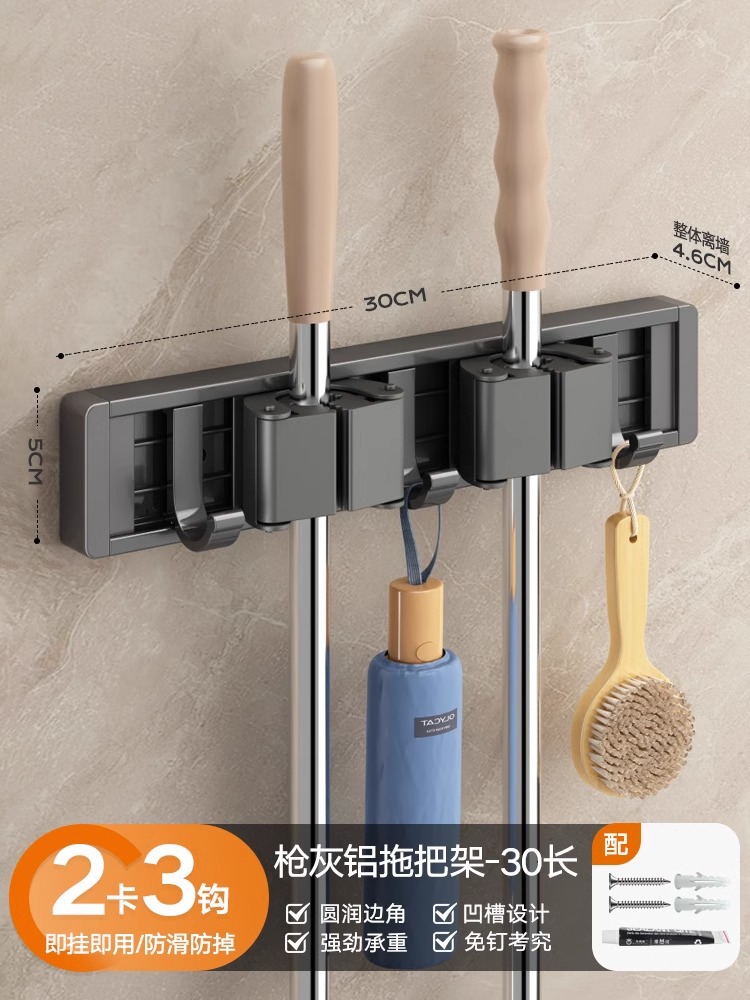 拖把架壁挂夹挂钩卫生间免打孔浴室拖布收纳架不锈钢扫把固定挂架