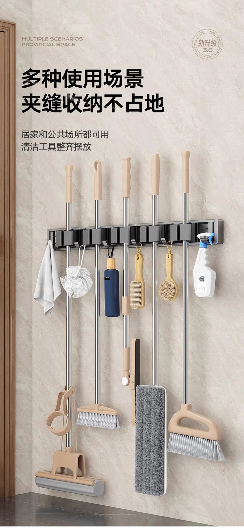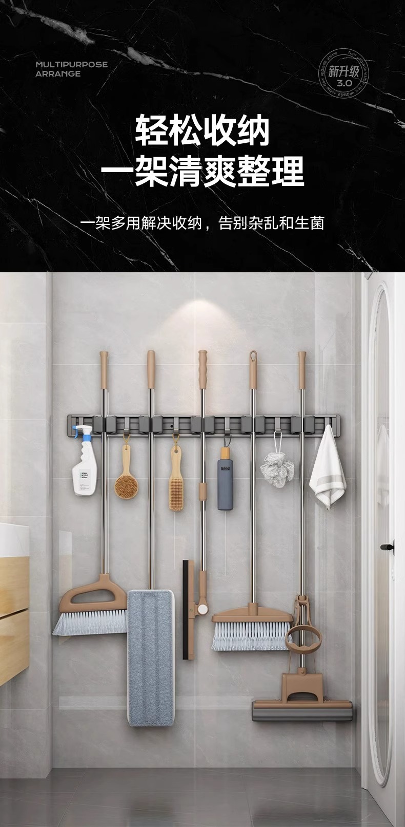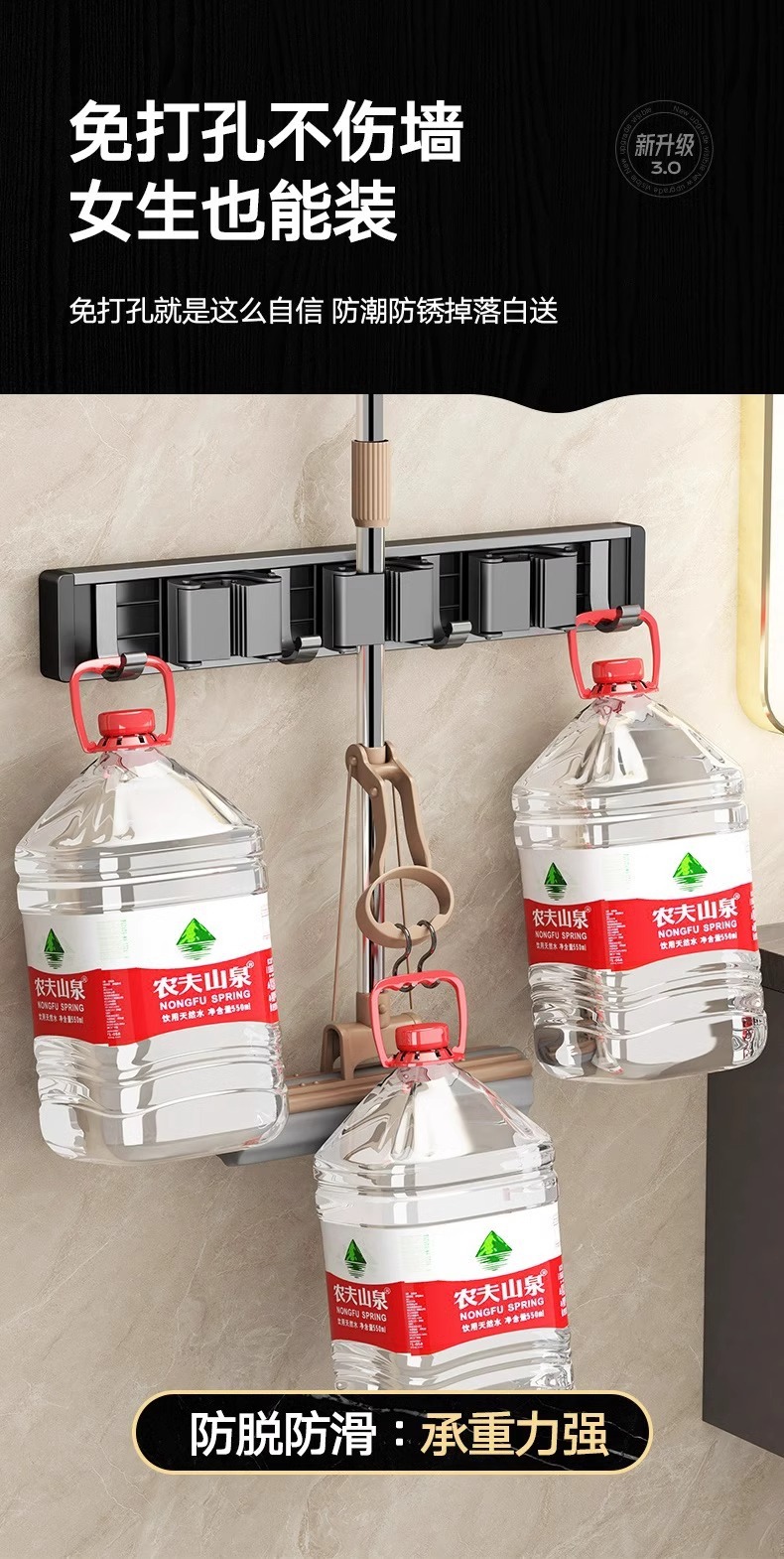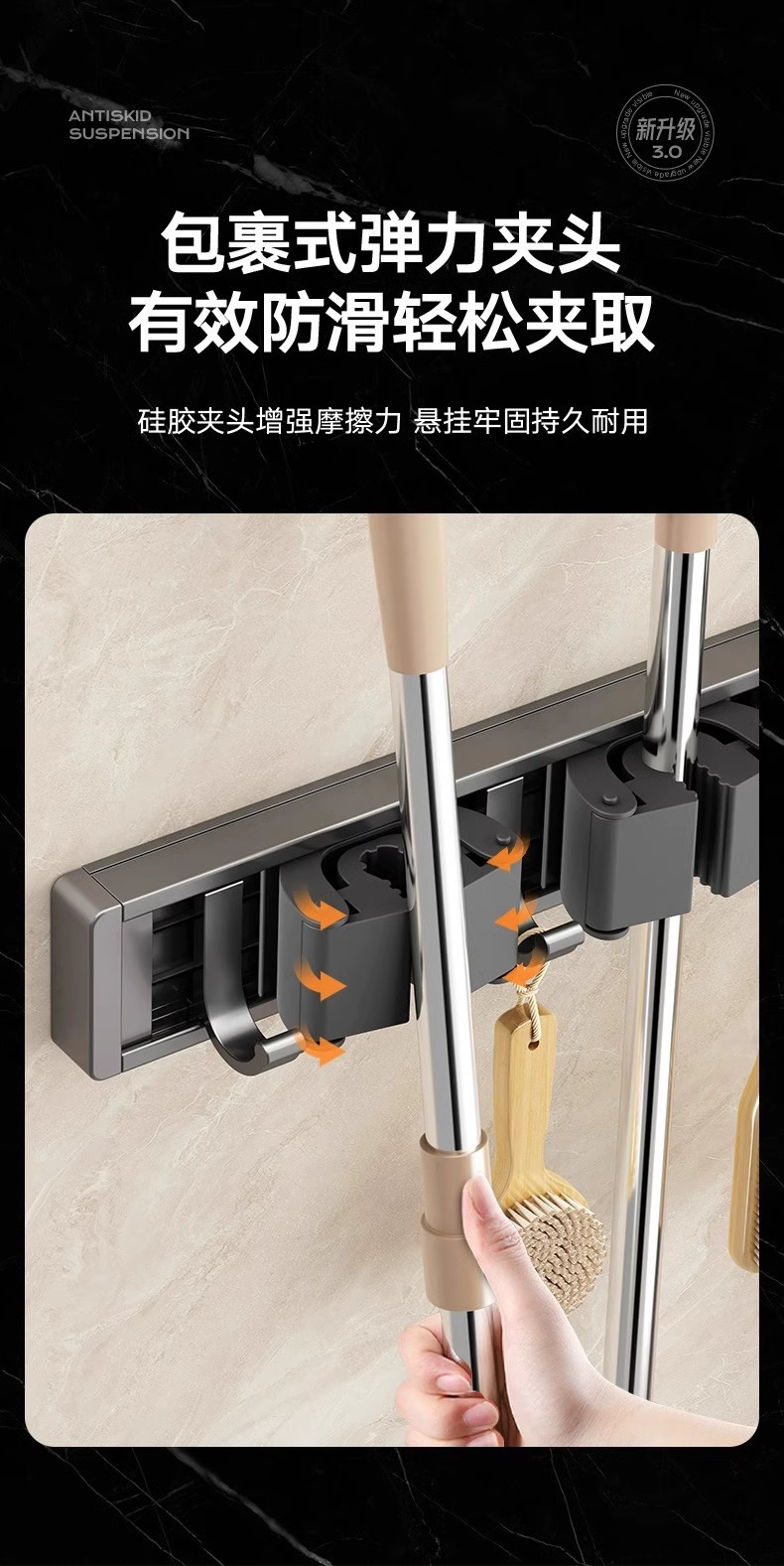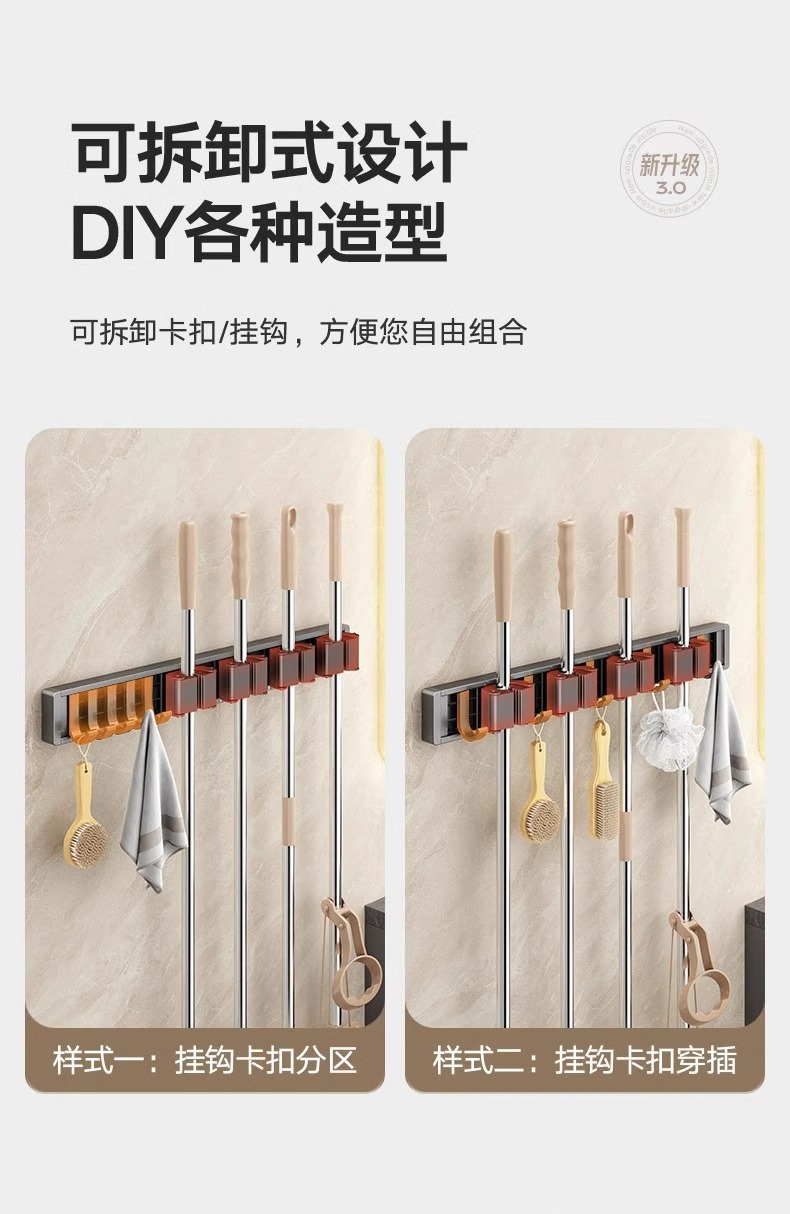 拖把架壁挂夹挂钩卫生间免打孔浴室拖布收纳架不锈钢扫把固定挂架