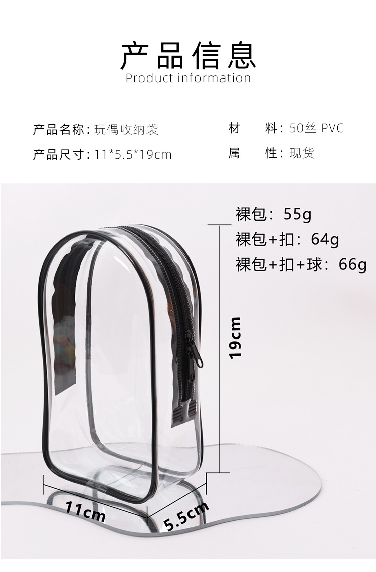 19cm外出遛娃包pvc加厚防尘收纳袋书包挂袋透明防水公仔袋玩偶包