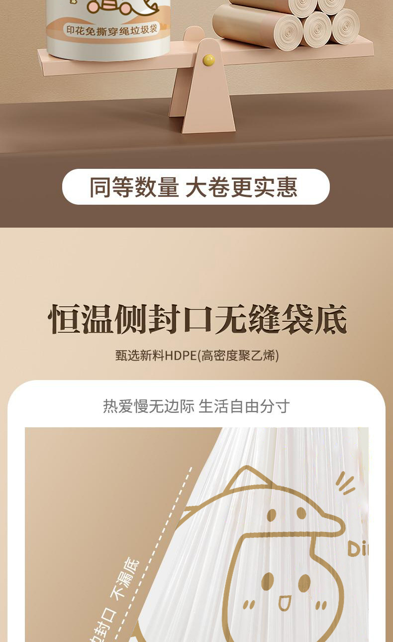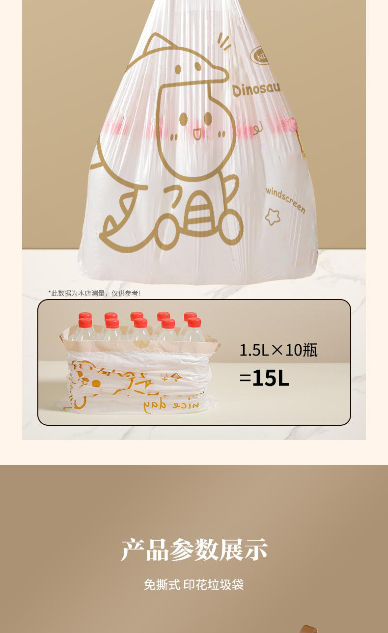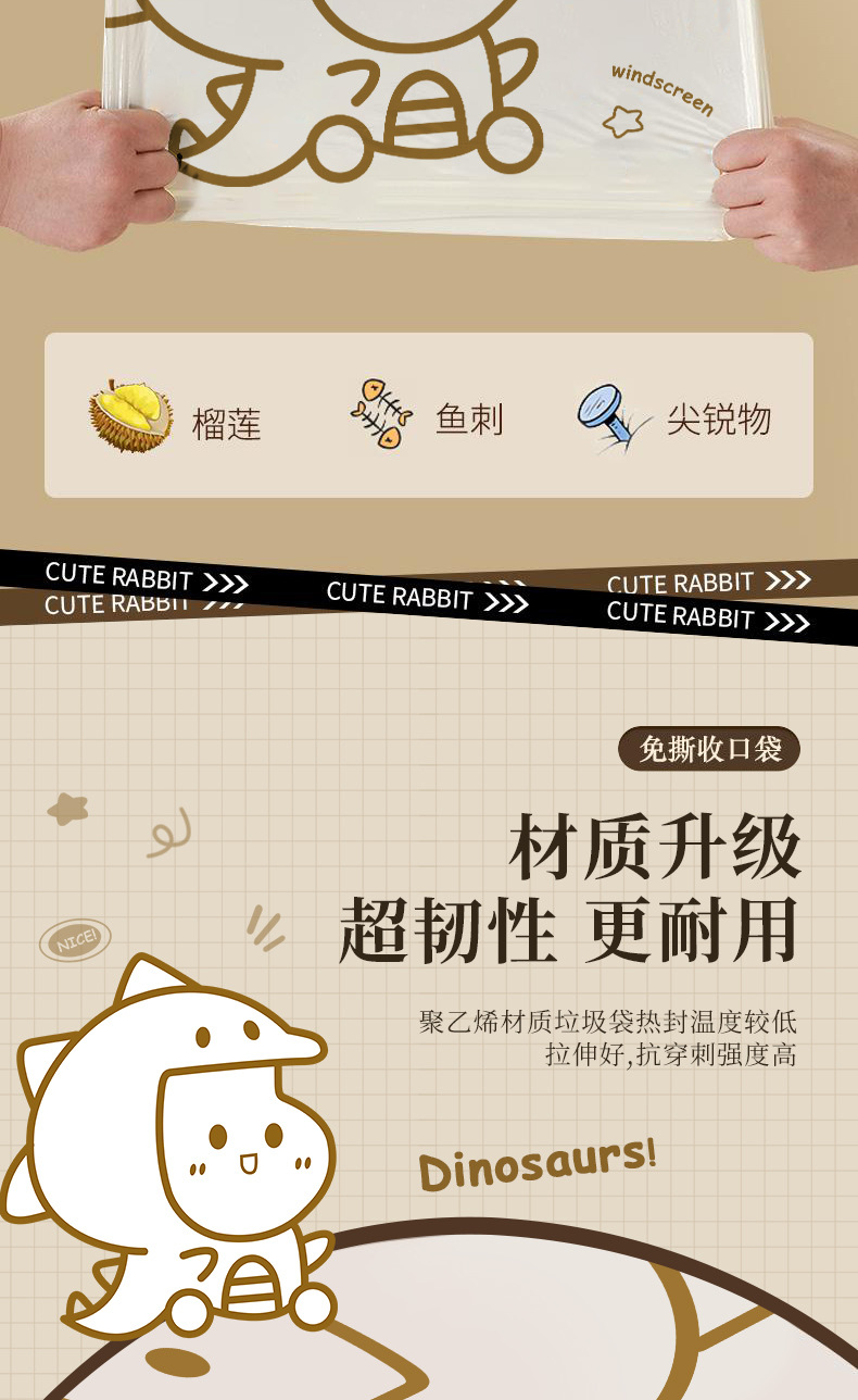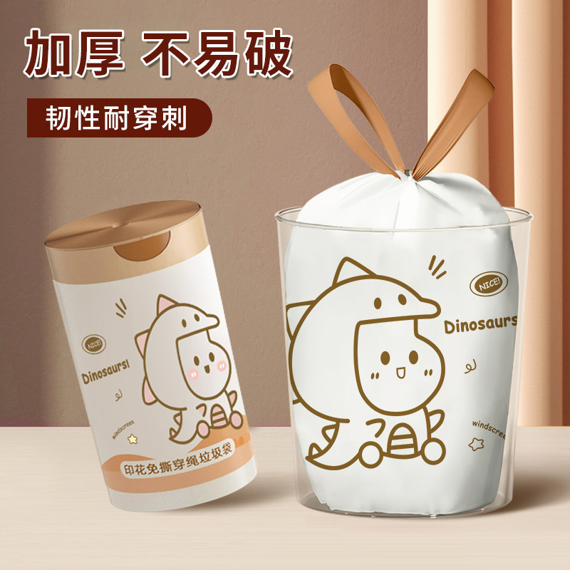 抽绳垃圾袋加厚手提式家用厨房宿舍用塑料袋小恐龙免撕清洁袋加大