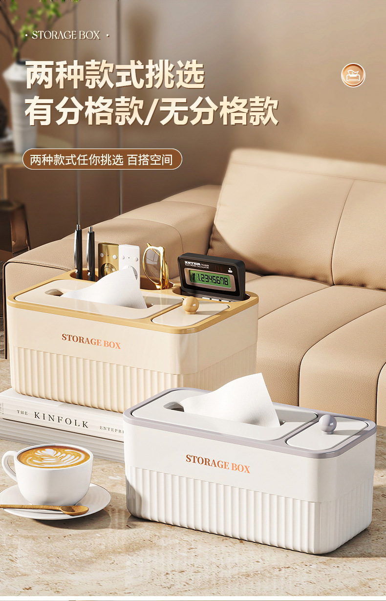 多功能简约抽纸盒茶几遥控分隔纸巾盒桌面收纳客厅餐桌餐巾纸盒子