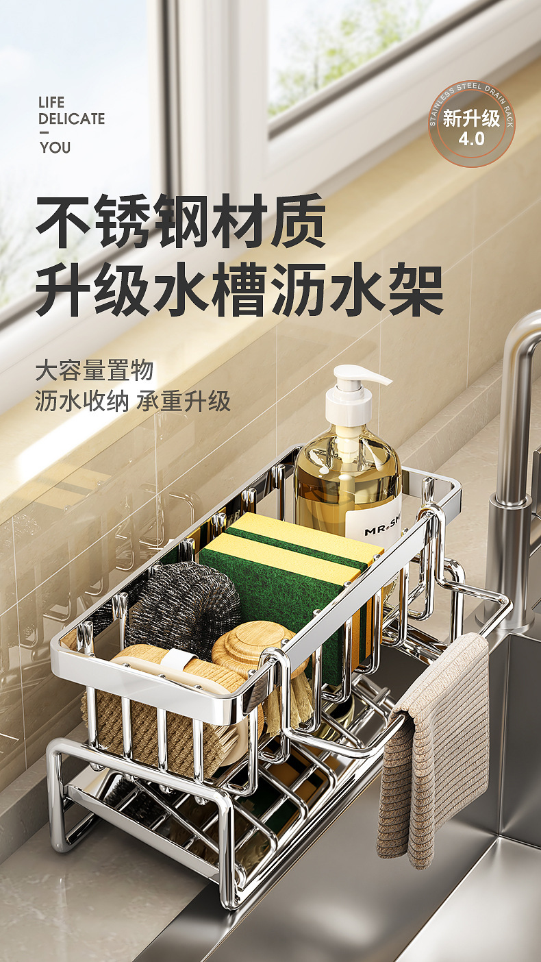 厨房置物架海绵沥水架水龙头洗菜池水槽洗碗用品抹布收纳沥水架子
