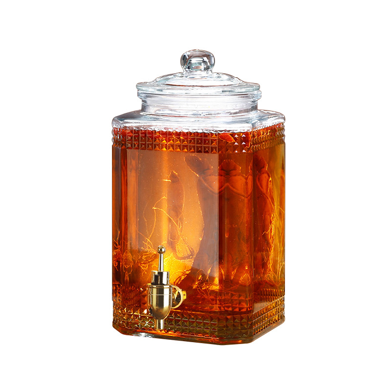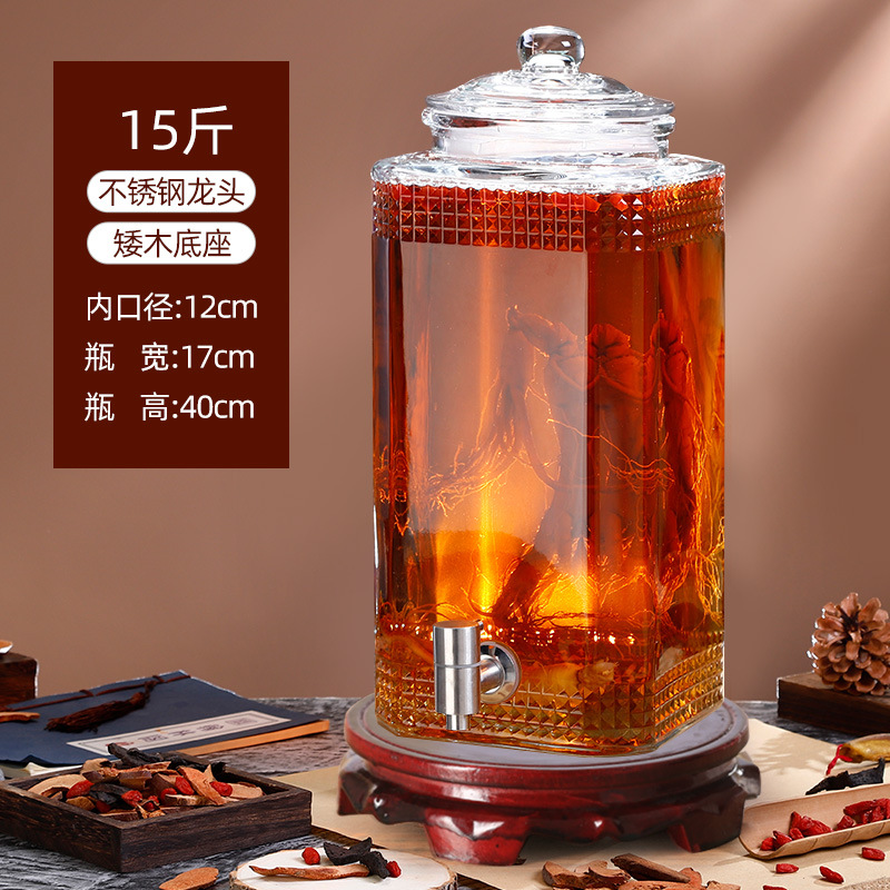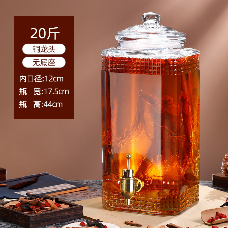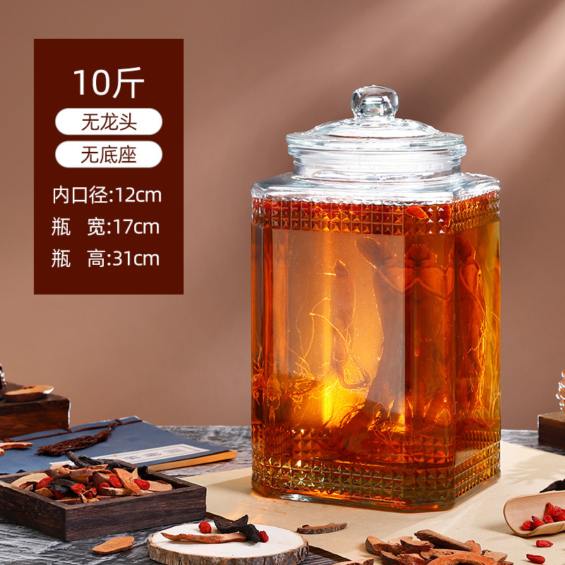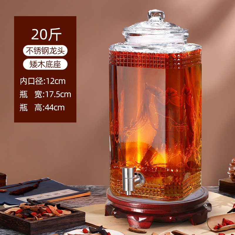 批发密封玻璃八角泡酒瓶泡酒专用瓶人参药酒酒坛带龙头玻璃泡酒瓶