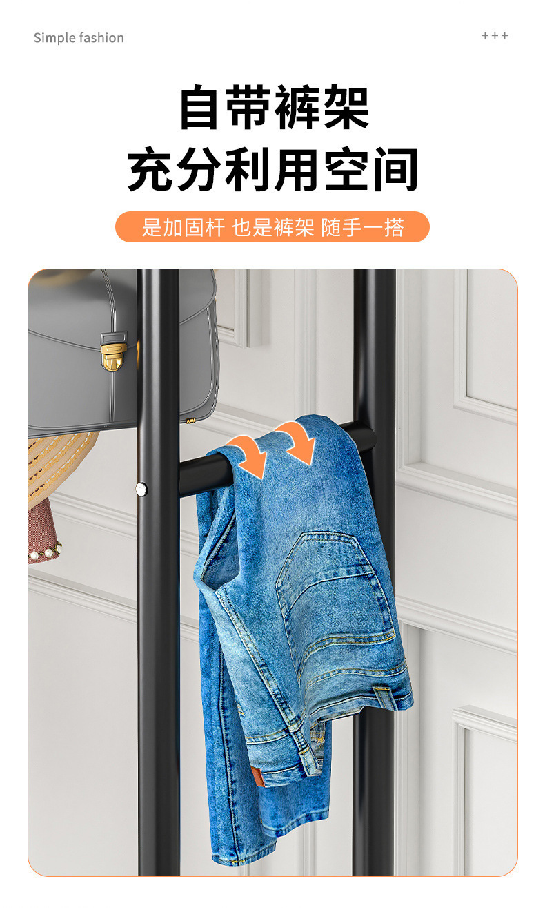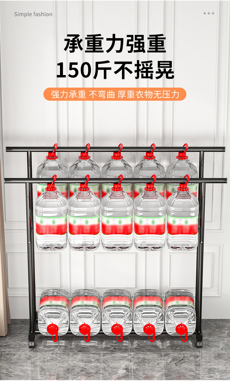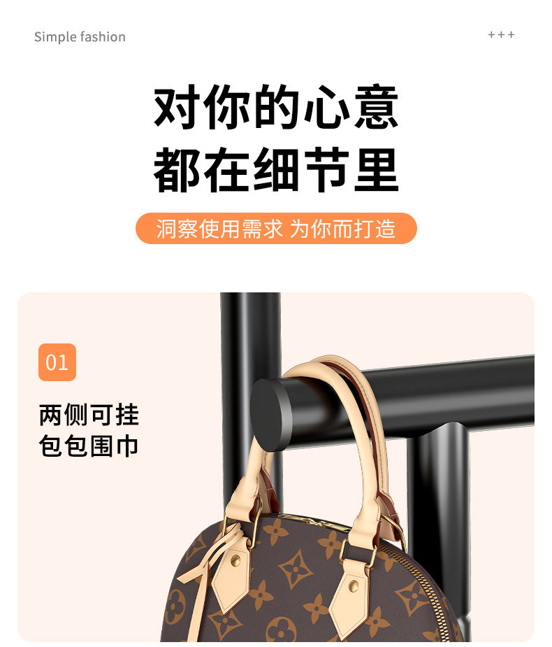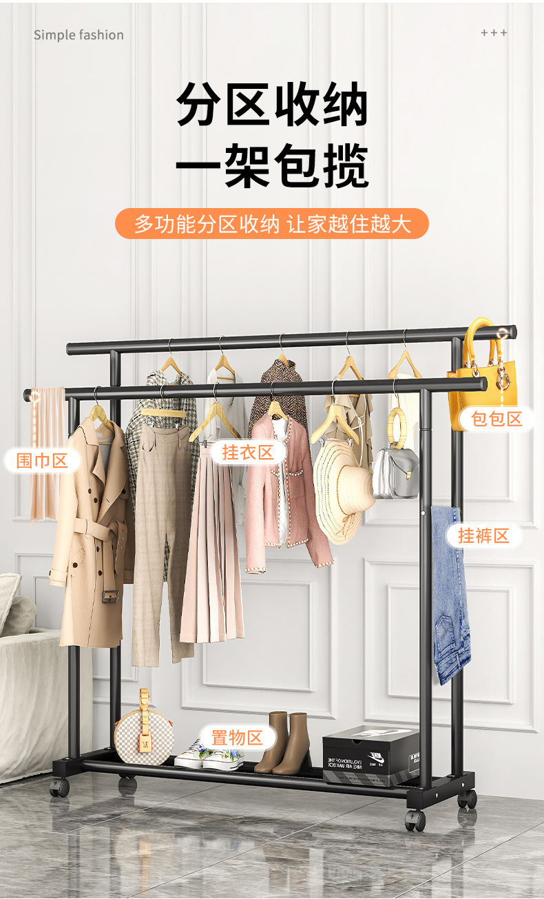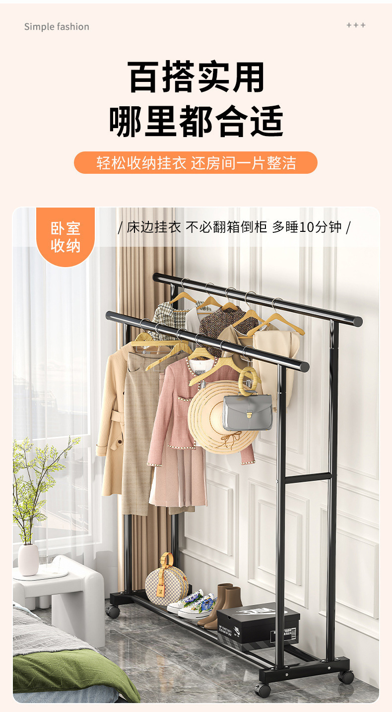 衣帽架落地家用卧室移动奶油衣服简易宿舍挂衣架阳台晾衣架立式