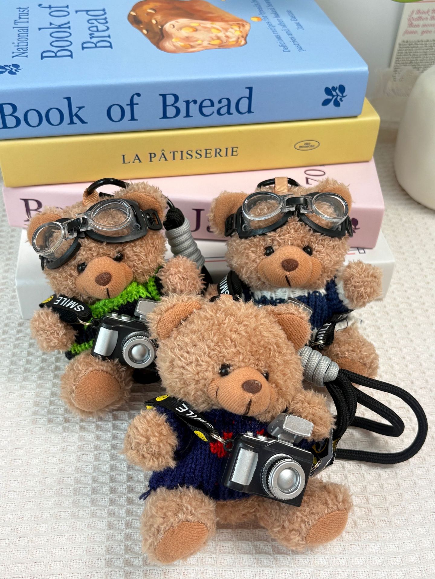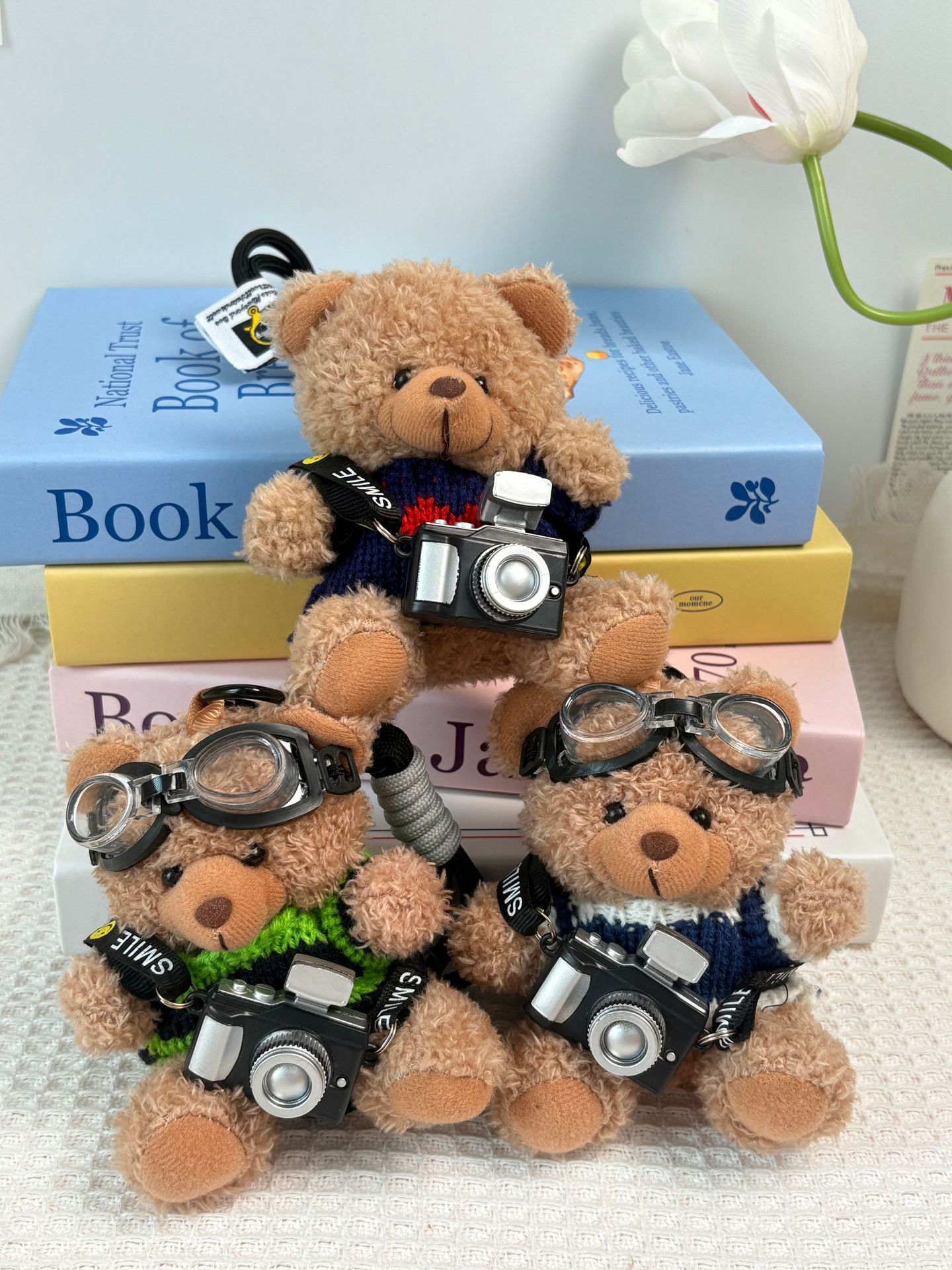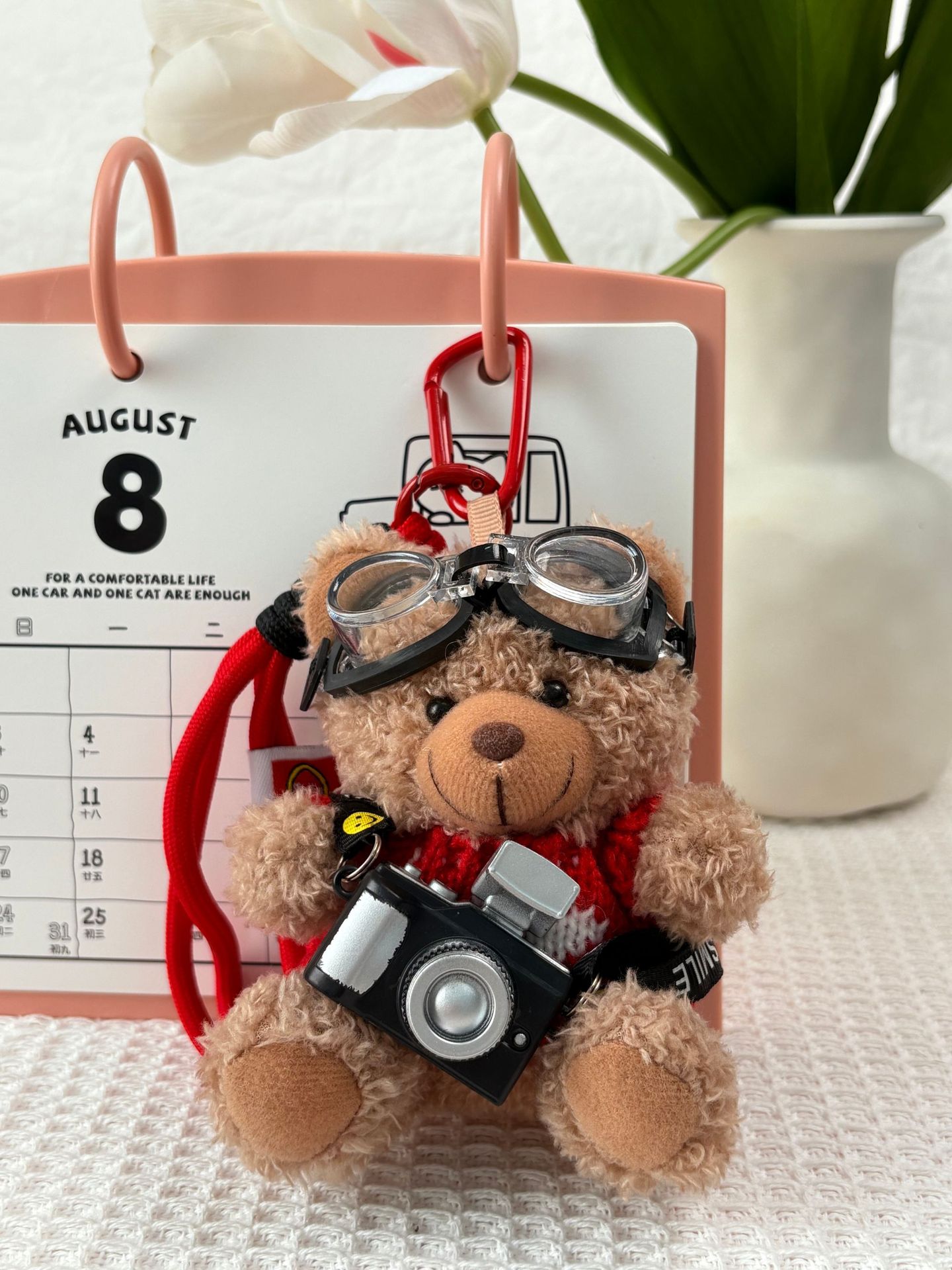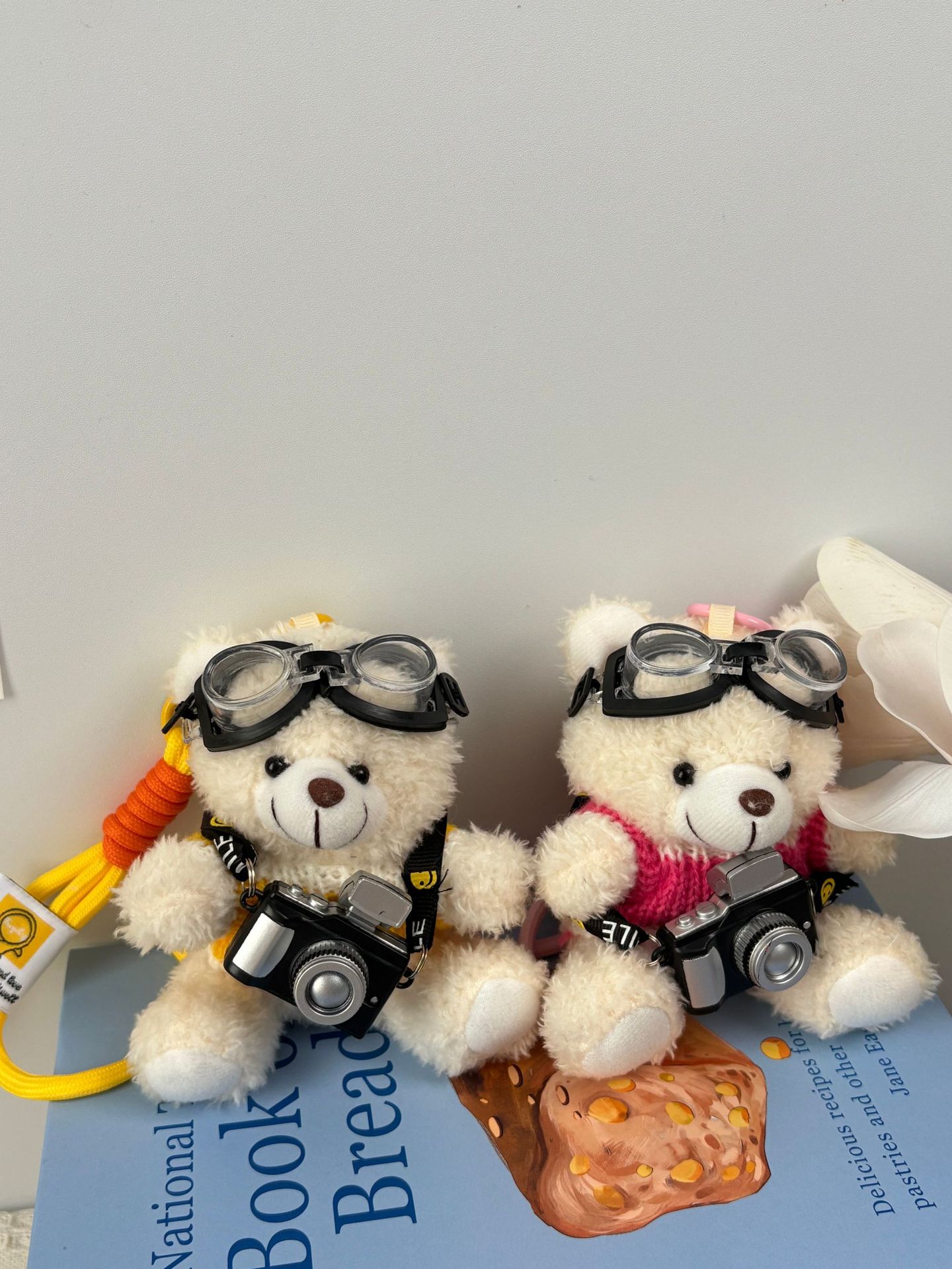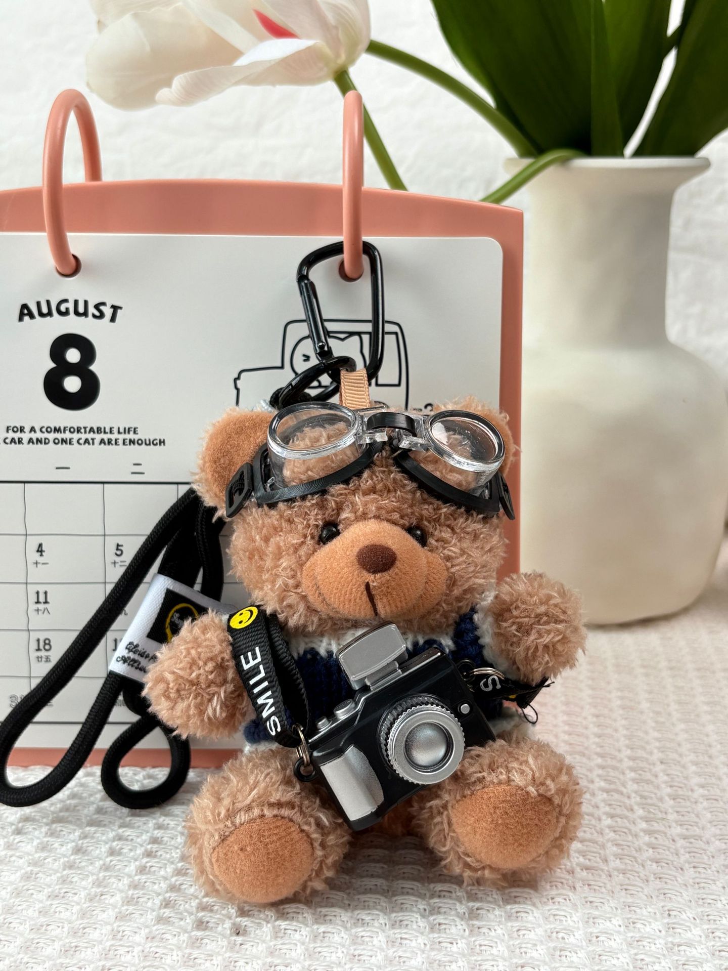 创意相机小熊挂件毛绒卡通玩偶飞行员公仔情侣礼物钥匙扣包包挂饰