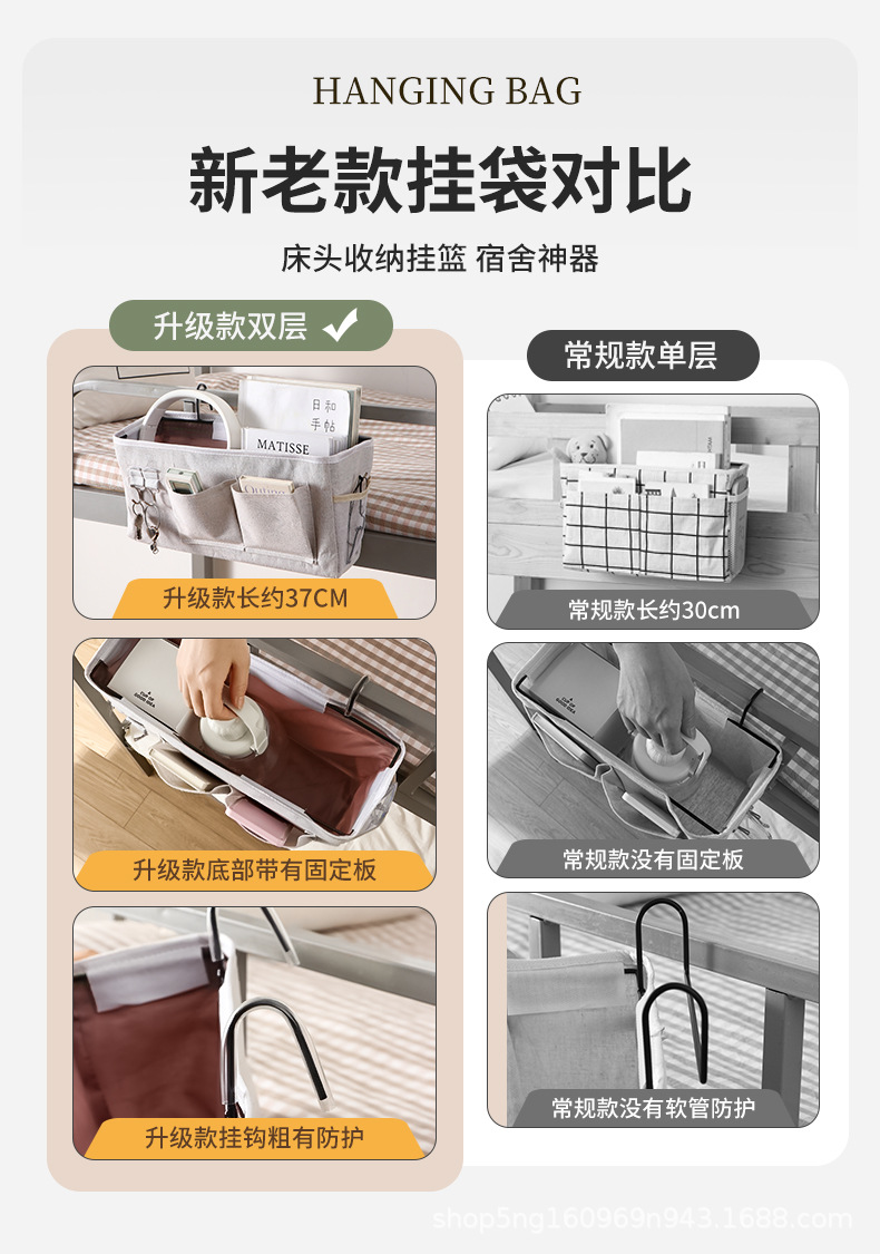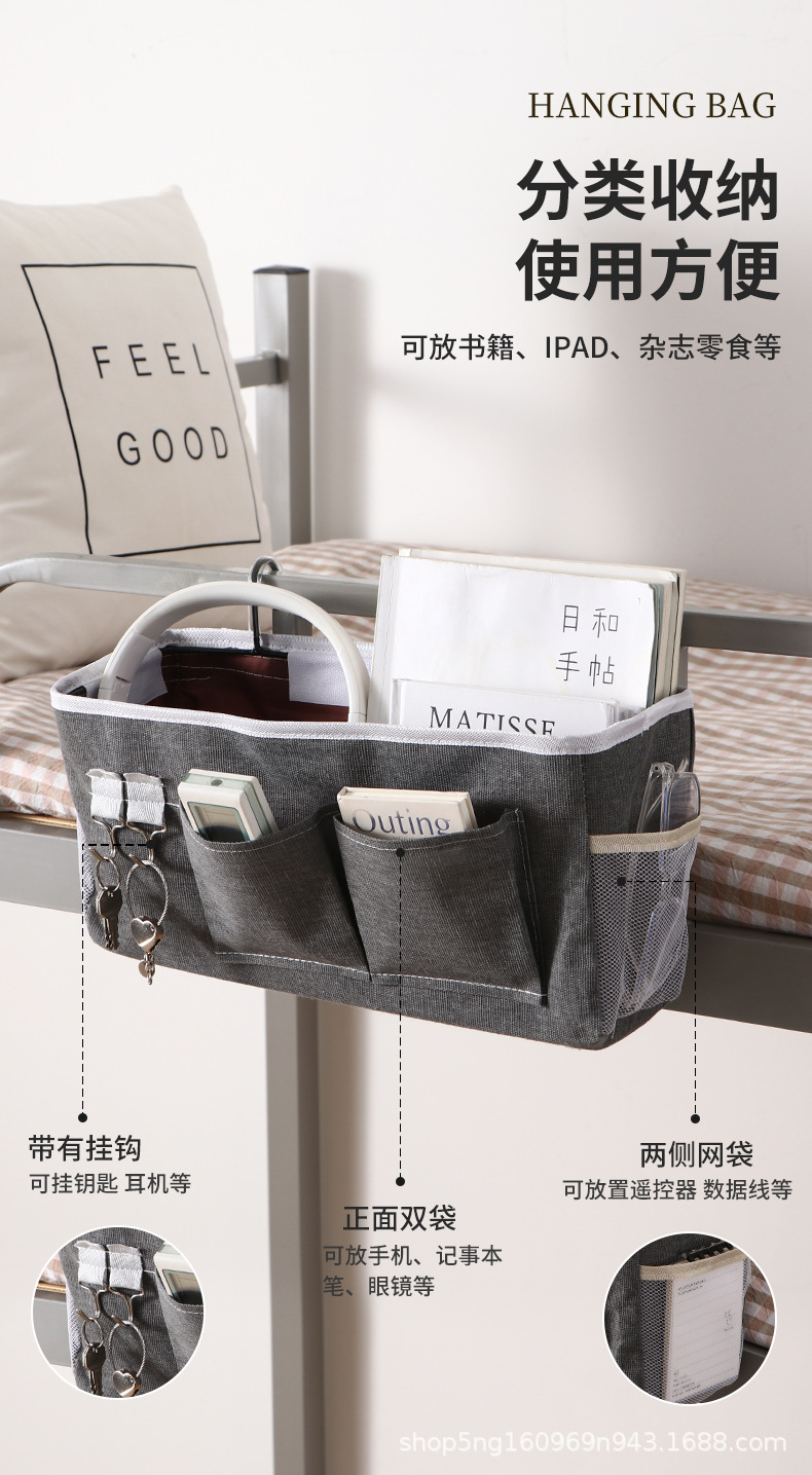 厂家批发床头置物架宿舍上铺收纳床上手机挂袋寝室床边布艺挂篮