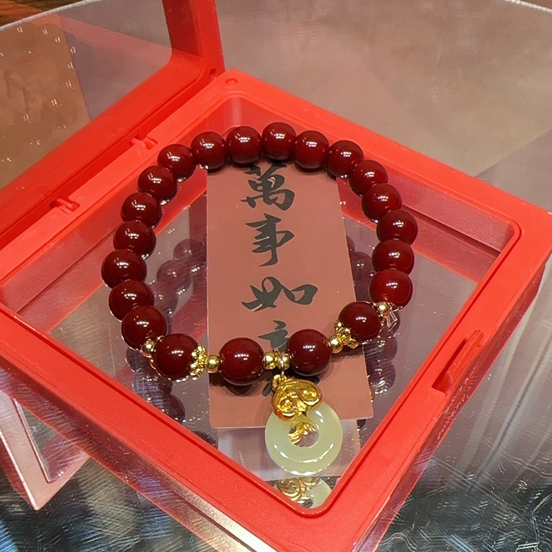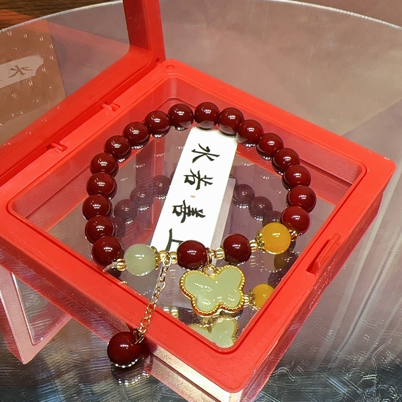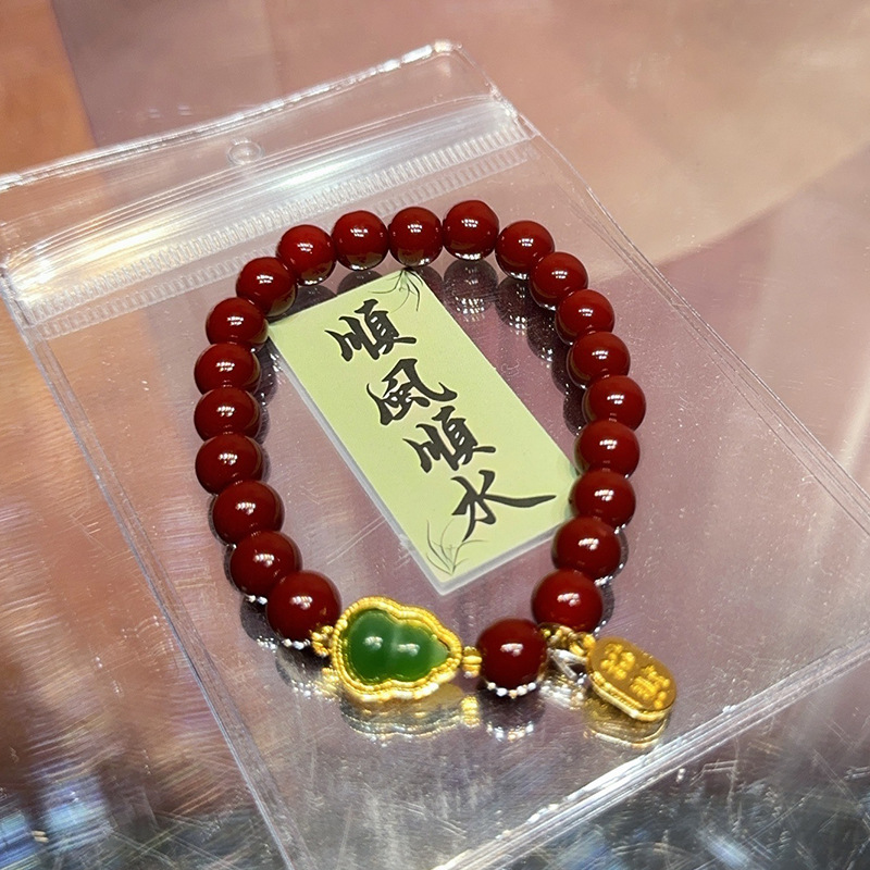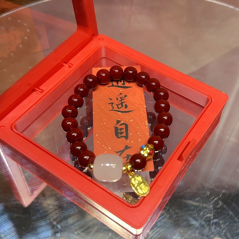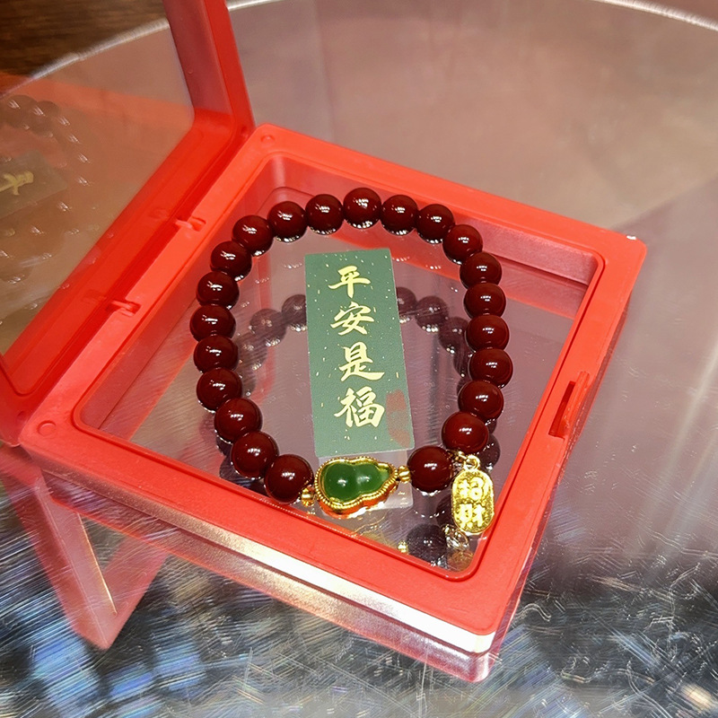 仿原矿紫金砂朱砂纳福珠手串女款本命年礼品盒装和田玉手链