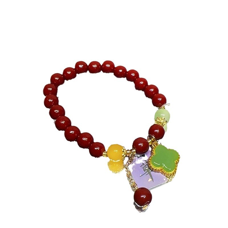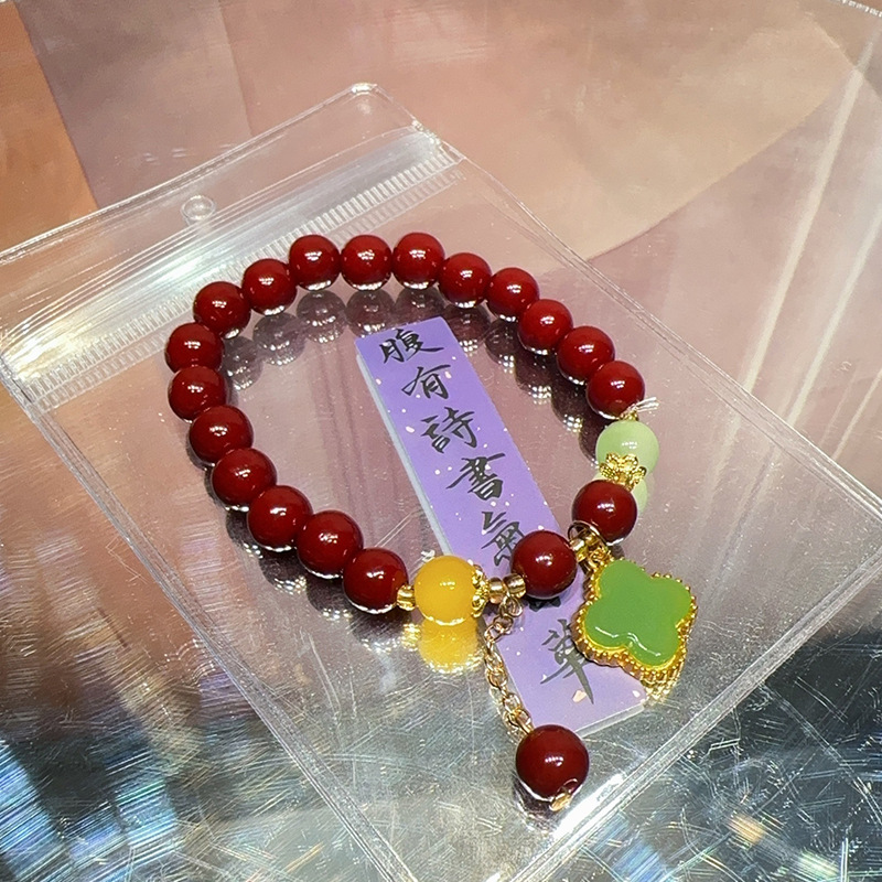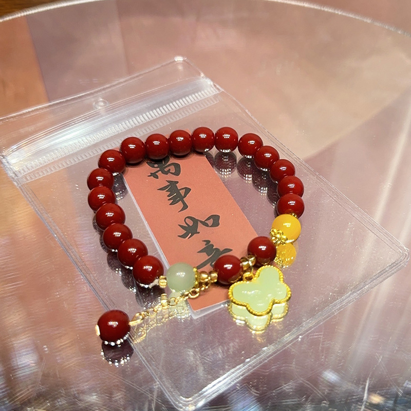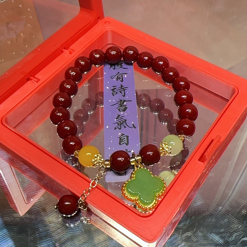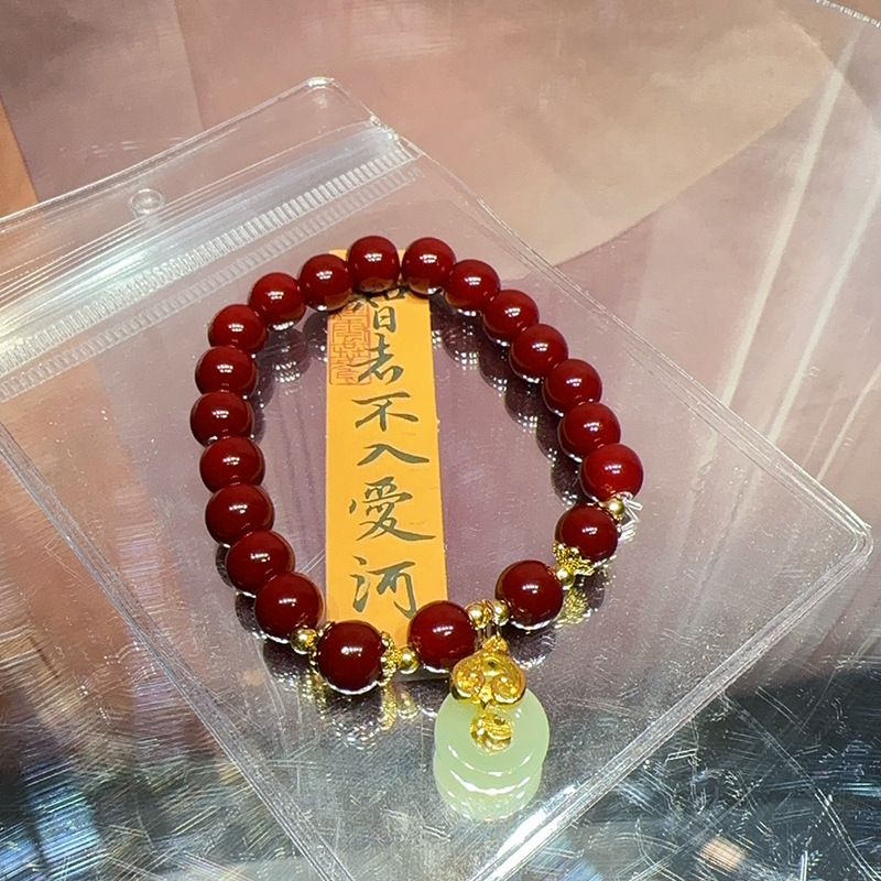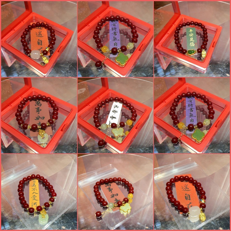 仿原矿紫金砂朱砂纳福珠手串女款本命年礼品盒装和田玉手链