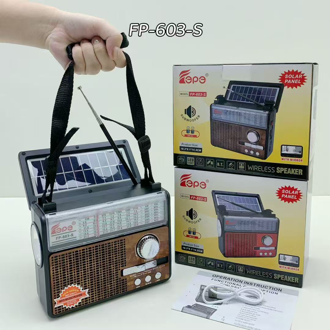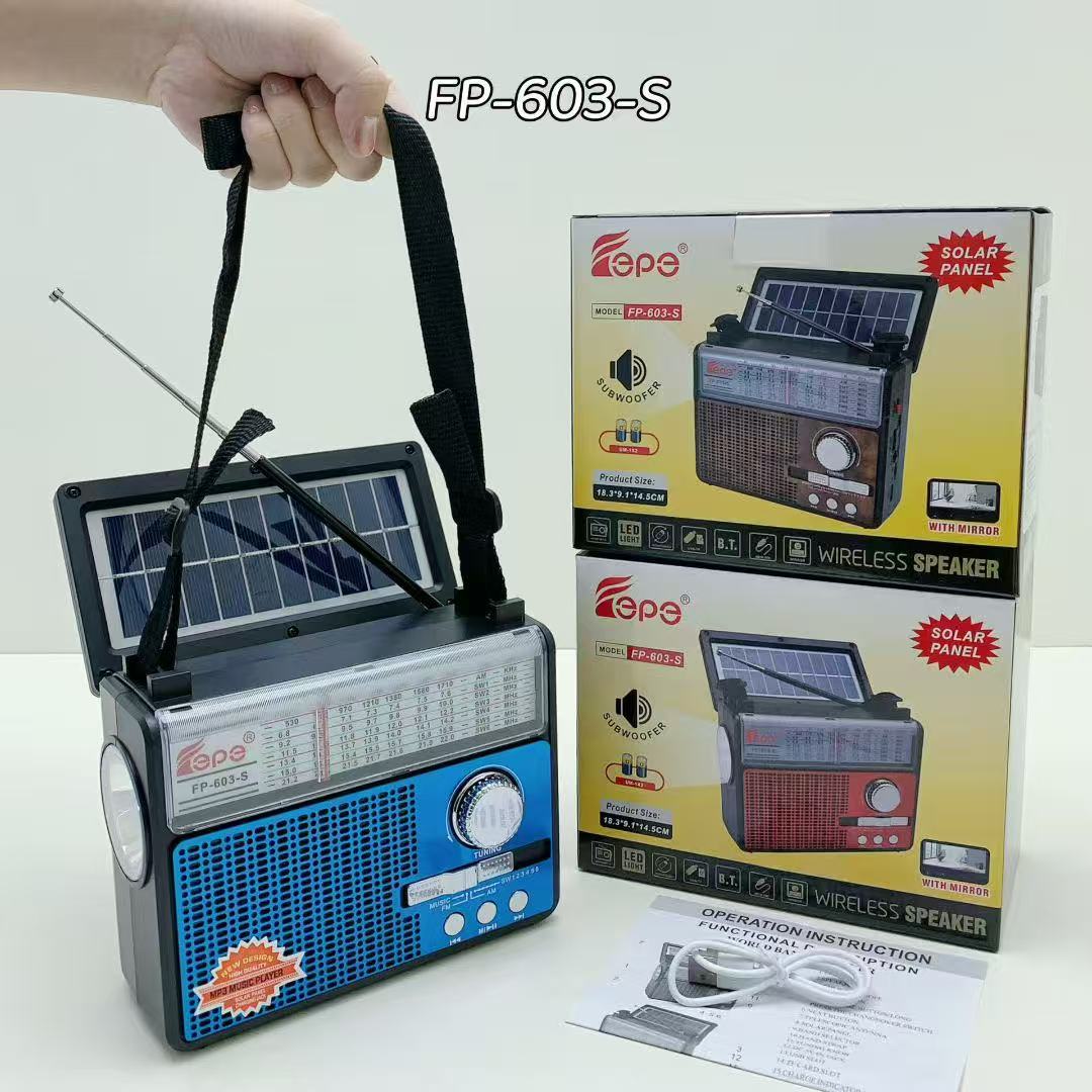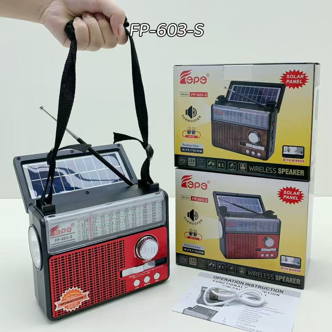 FP-603-S跨境新款太阳能蓝牙音箱便携Solar FM bands Radio收音机