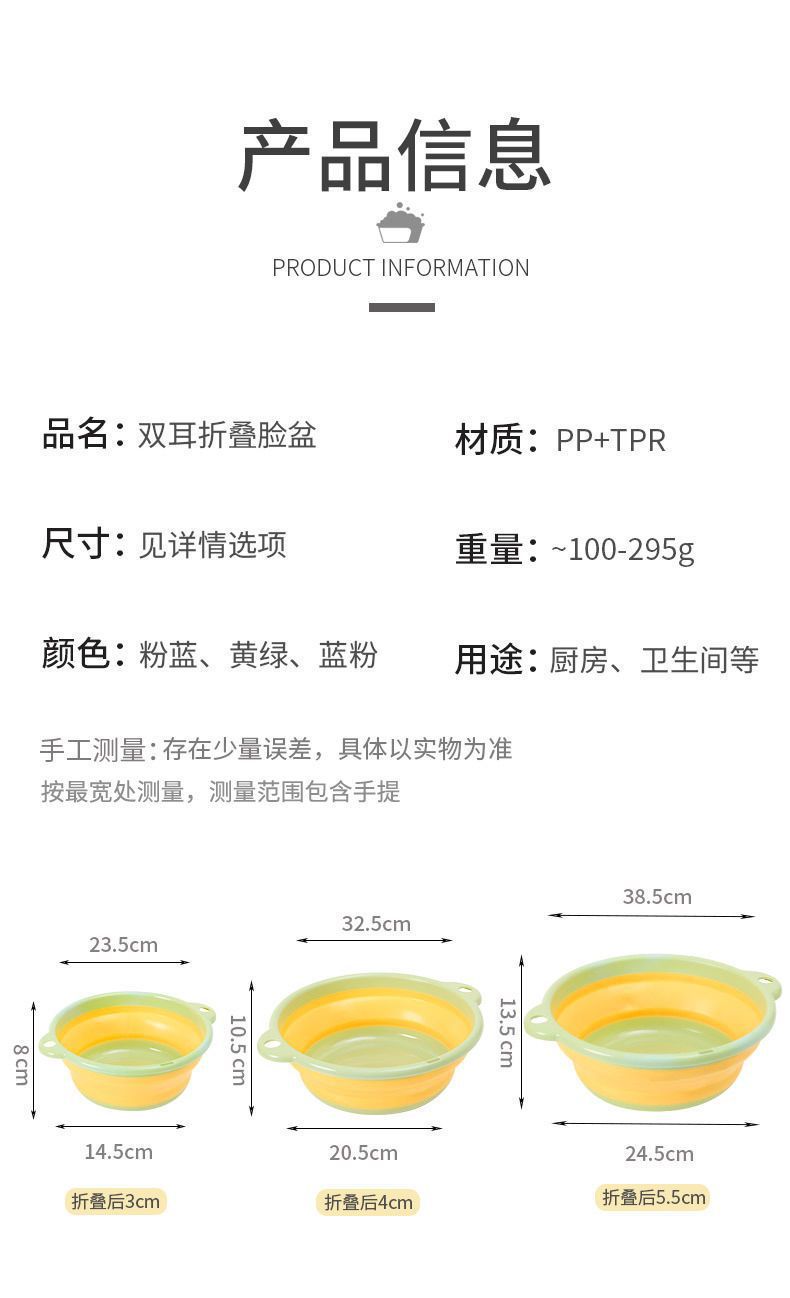可折叠洗脸盆家用洗衣盆宿舍用婴儿小盆子便携式折叠旅行洗脸盆1W