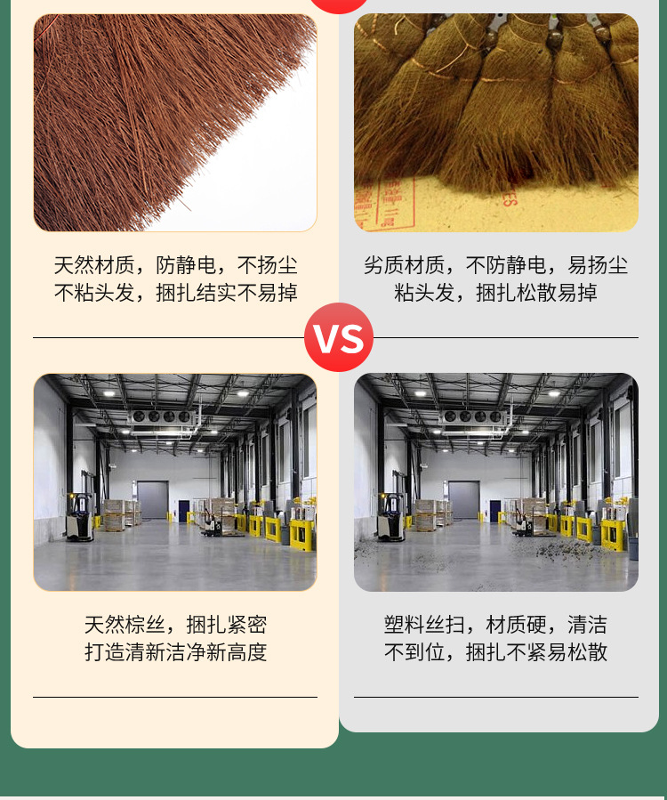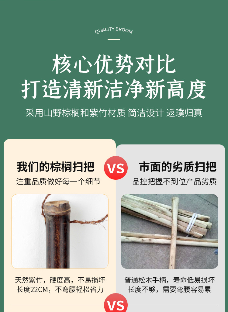 棕毛扫把鬃毛笤帚扫帚棕扫把老式木柄扫地鬃院子家用结实仓库耐用