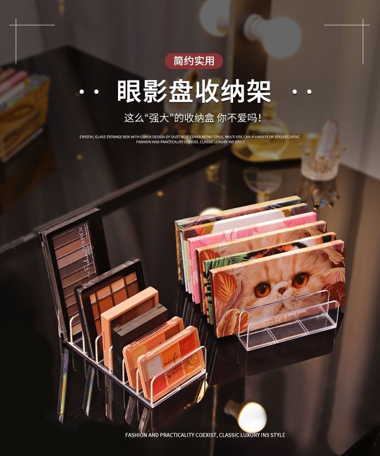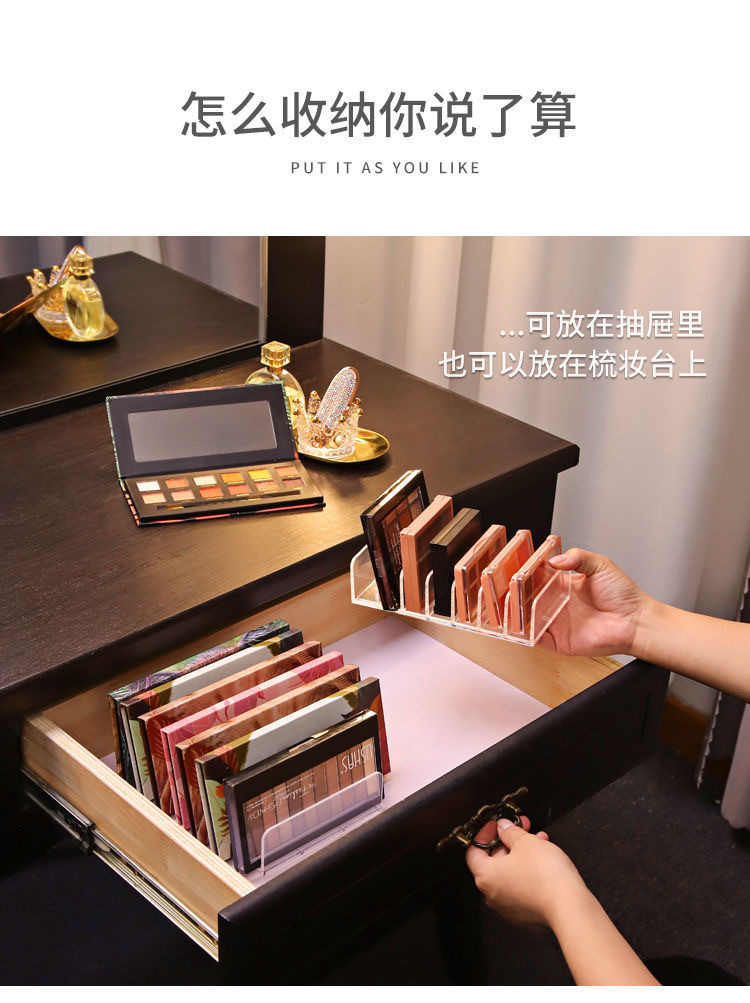 梳妆台化妆品收纳整理置物架桌面抽屉分隔透明彩妆眼影收纳盒