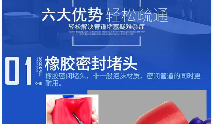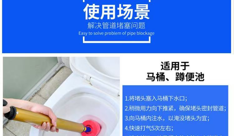 马桶疏通器通下水道神器厕所堵塞专用工具厨房管道地漏高压一炮通