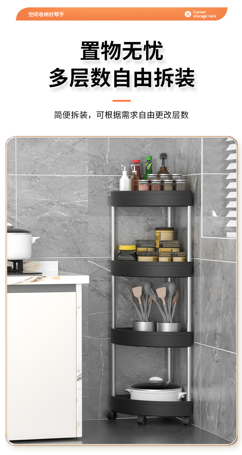 多功能置物架落地多层可移动小推车果蔬零食收纳架批发浴室角架