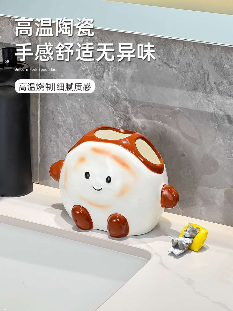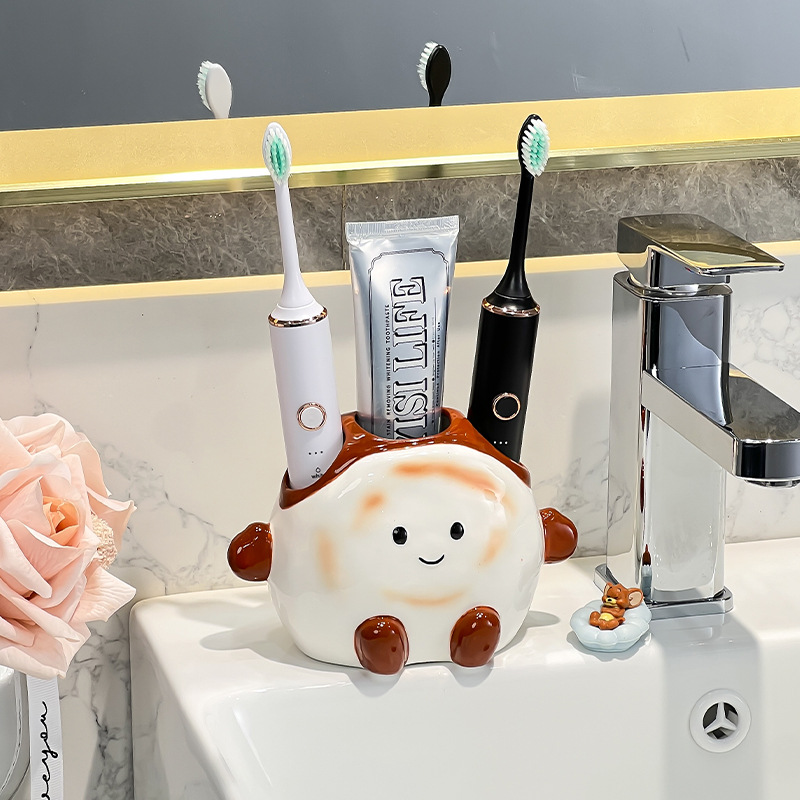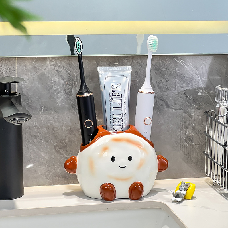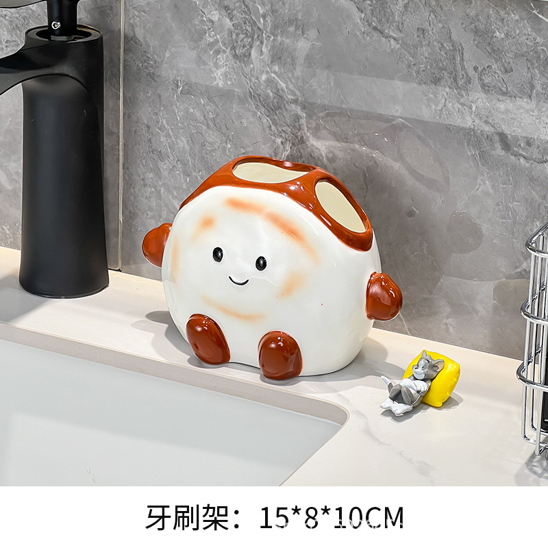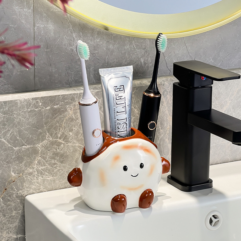 肉夹馍牙刷架卫生间洗手台家用牙具收纳电动牙刷牙膏陶瓷底座支架