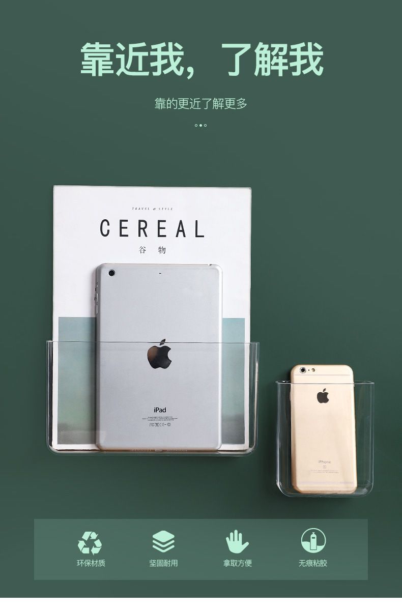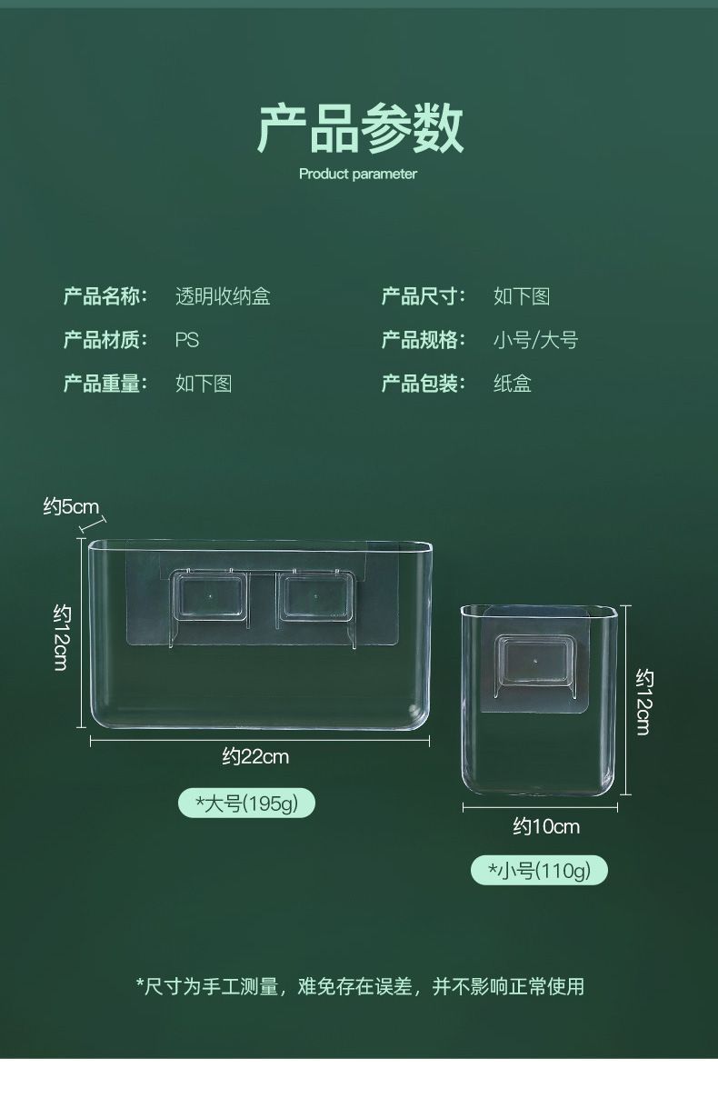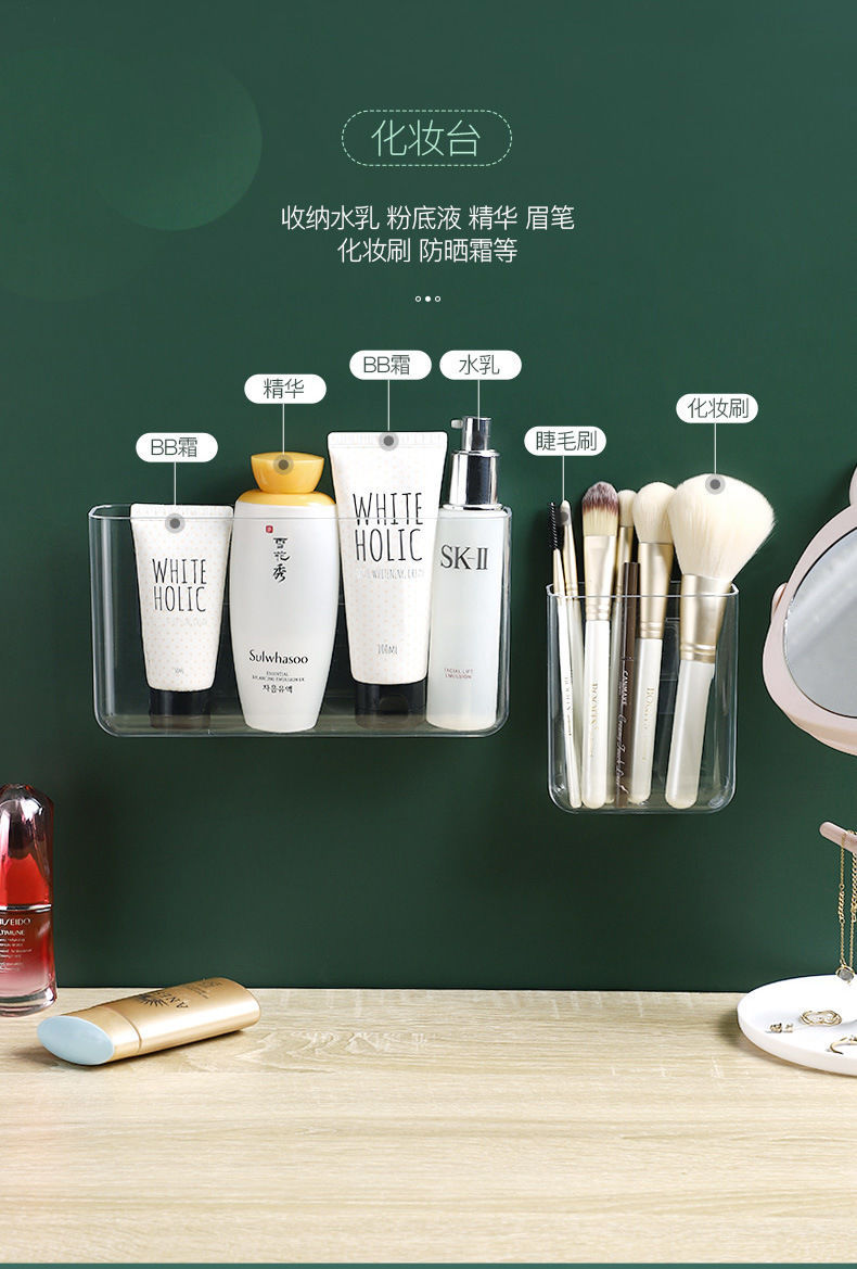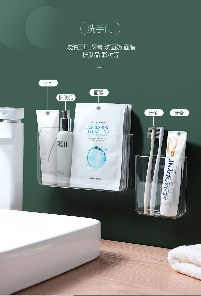 透明挂壁式收纳盒免打孔卫生间置物架客厅房间墙壁杂物整理盒