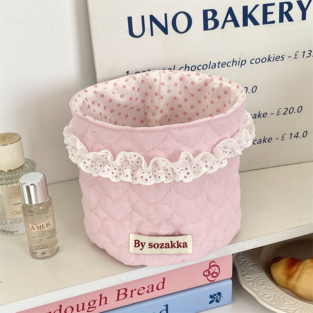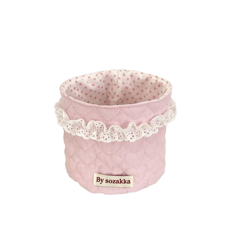 5181 韩系绗缝少女布艺收纳篮桌面收纳整理筐圆筒杂物零食置物篮