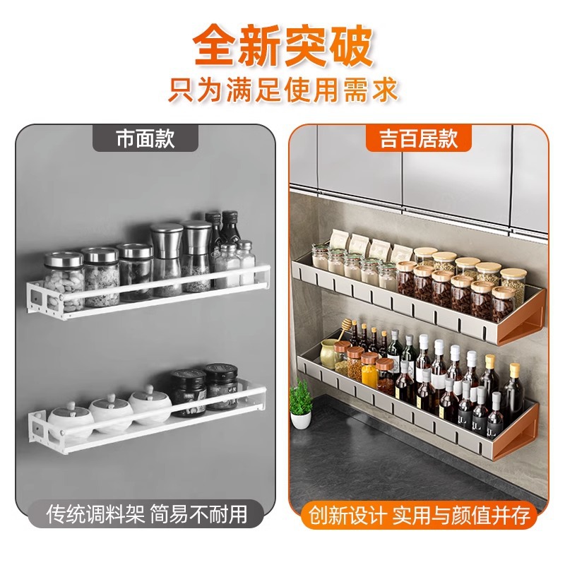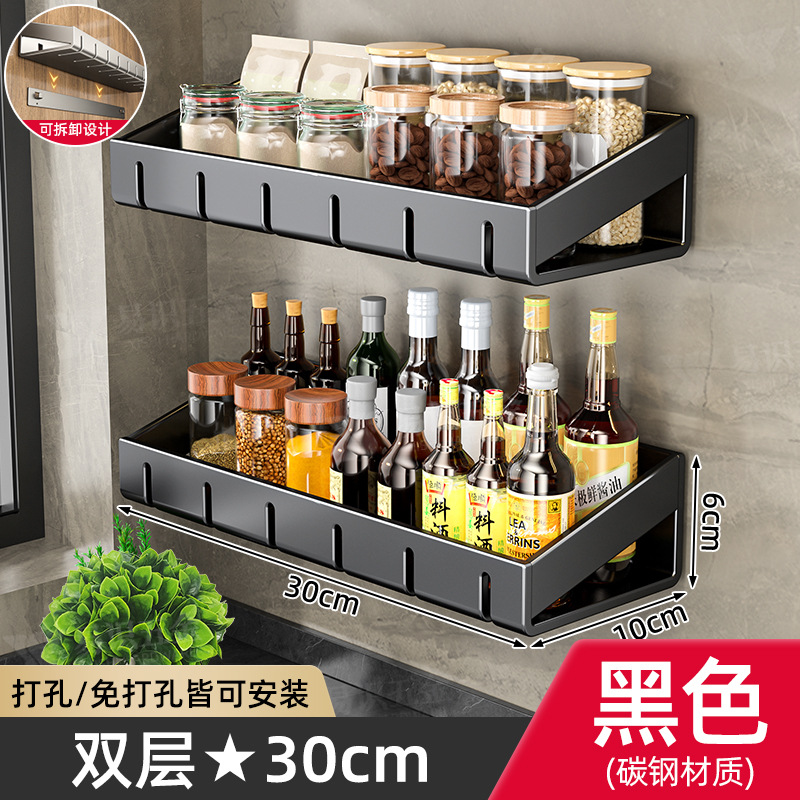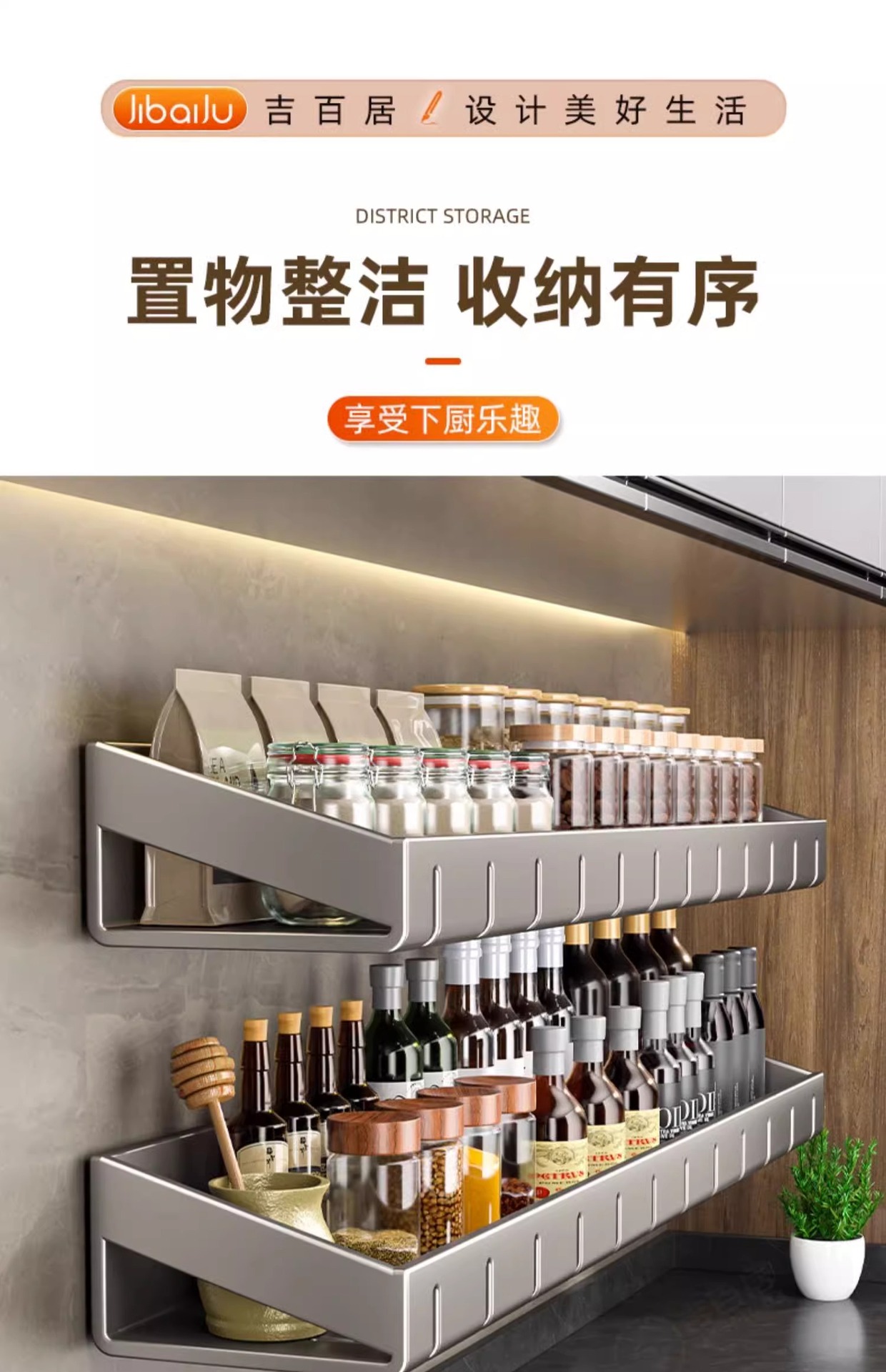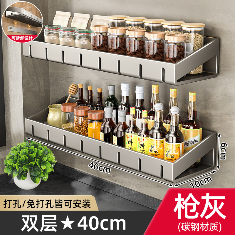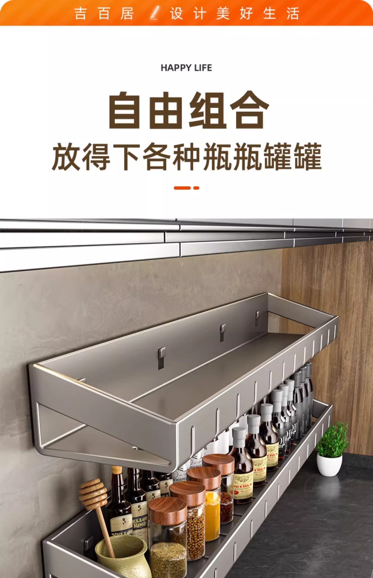 厂家供应厨房免打孔壁挂式置物架 调料架 枪灰家用用品墙上收纳架