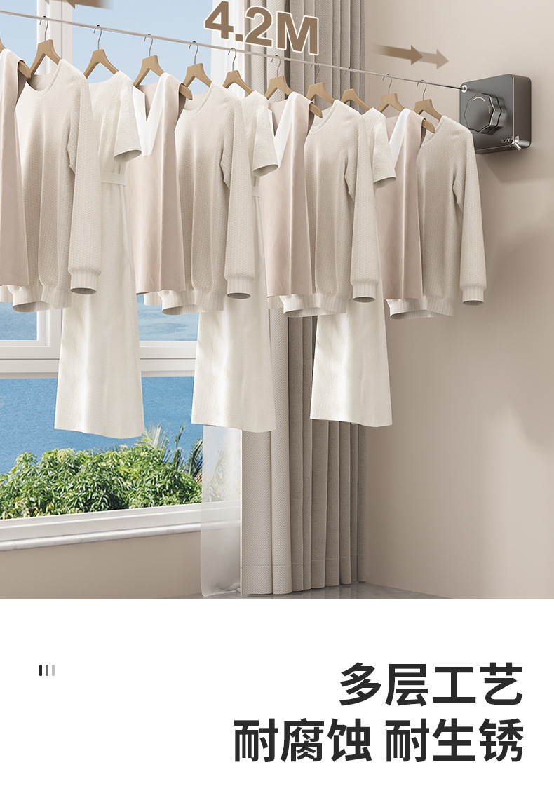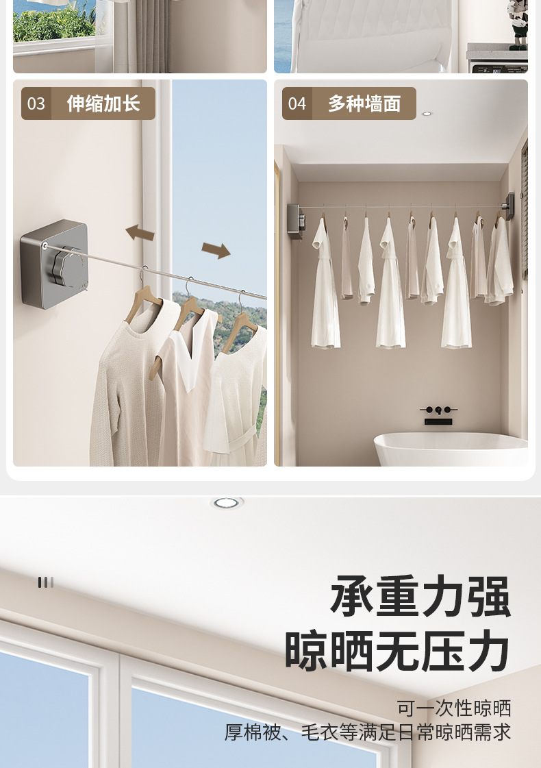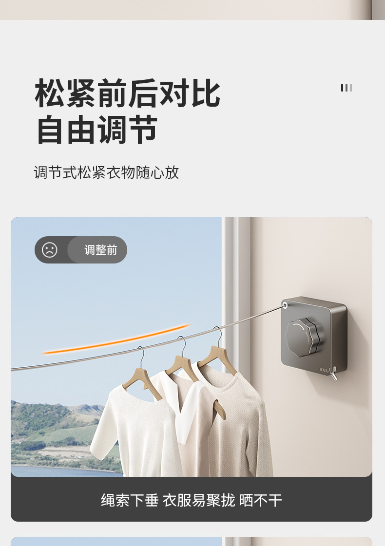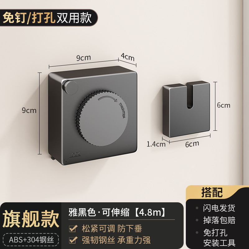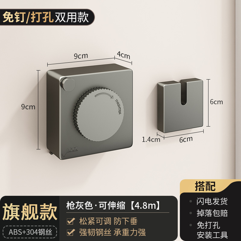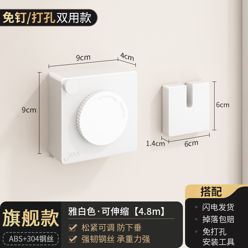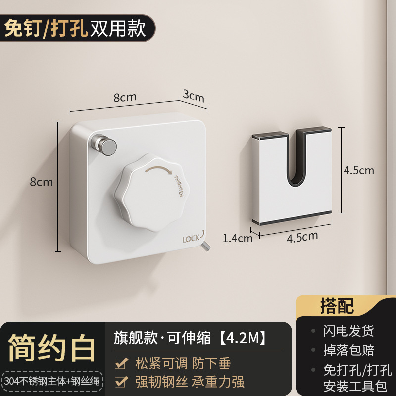 晾衣绳阳台卫生间晾衣服绳子免打孔伸缩钢丝绳晾衣架不锈钢晾衣绳