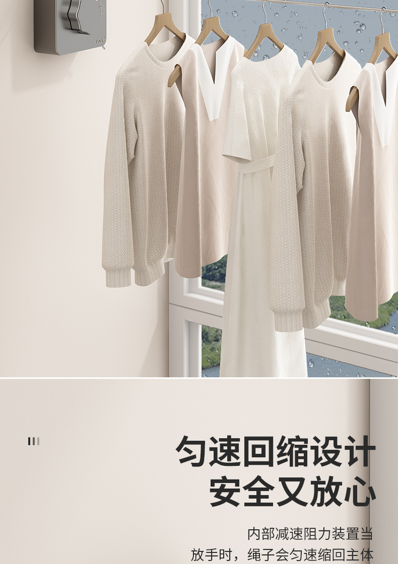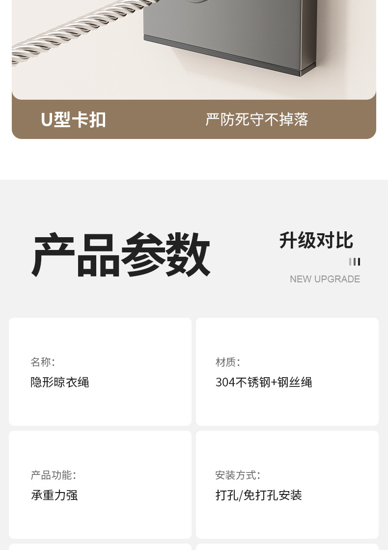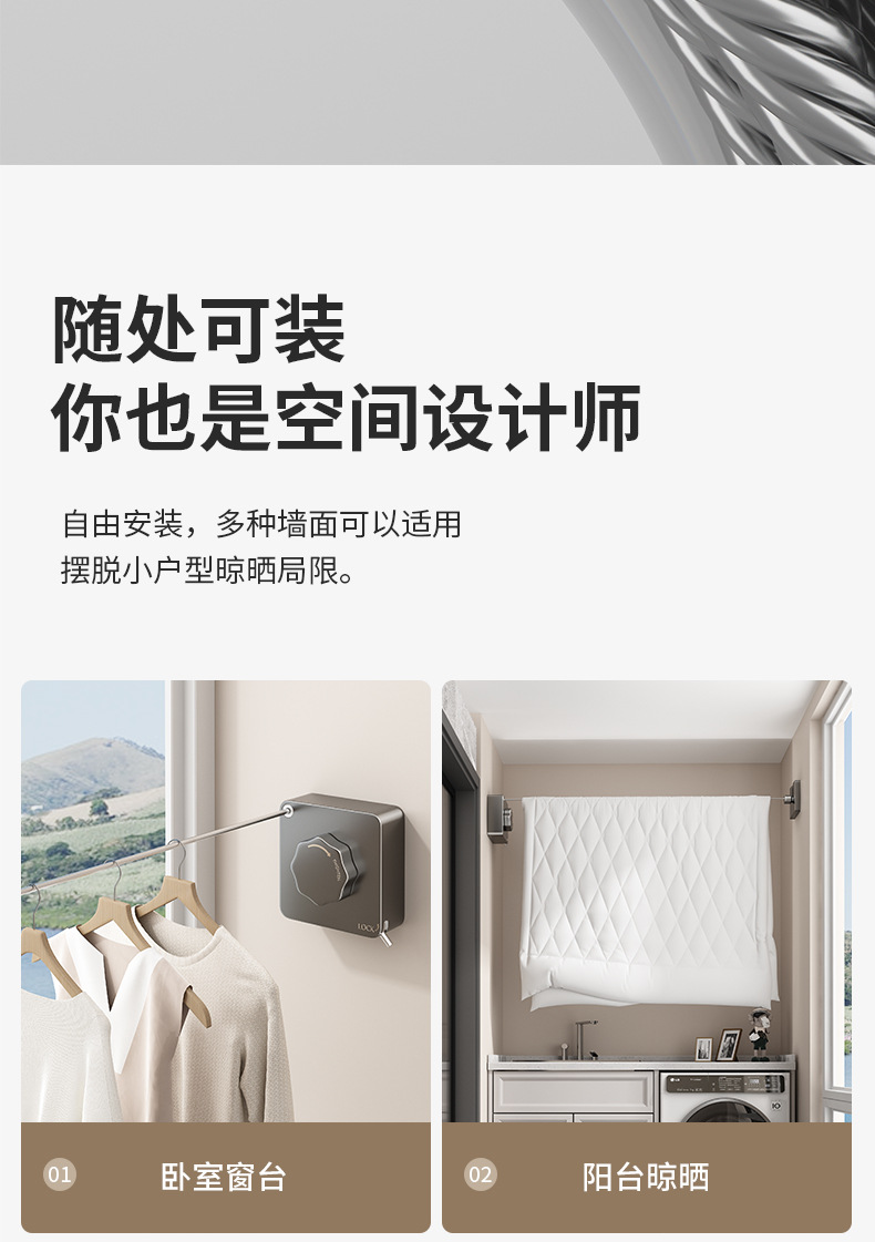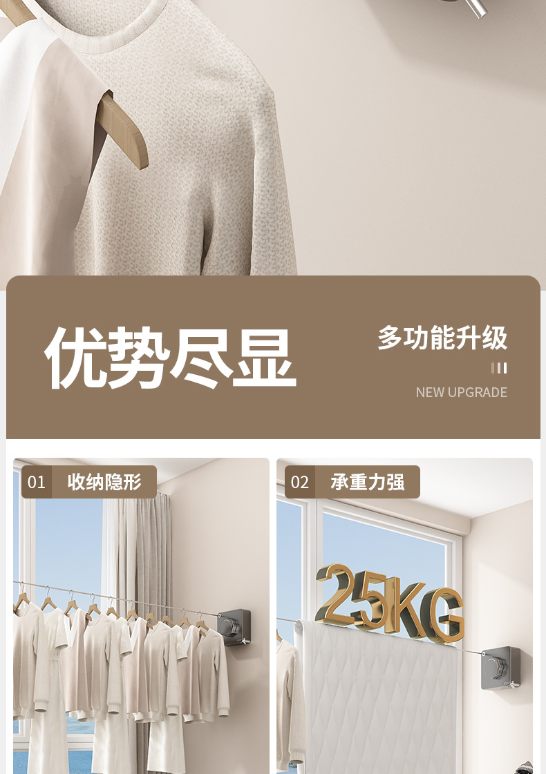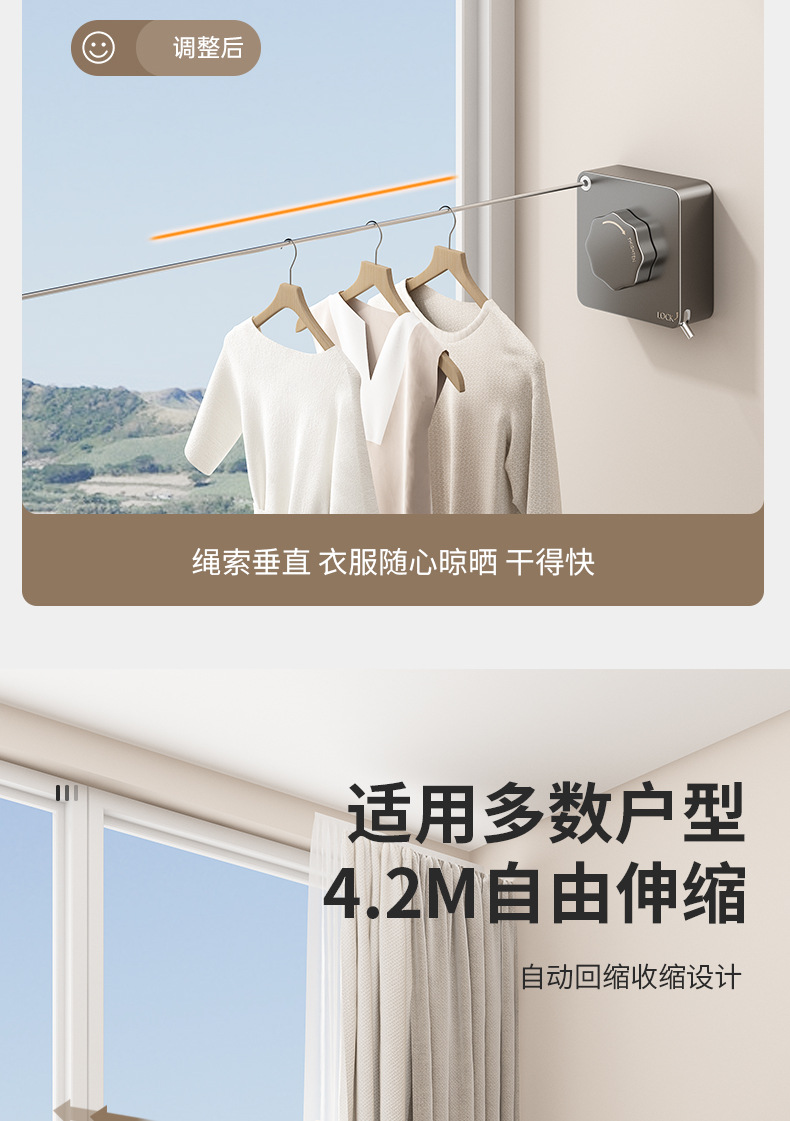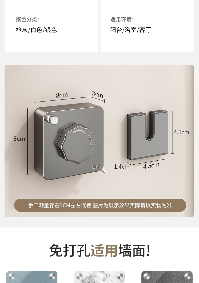 晾衣绳阳台卫生间晾衣服绳子免打孔伸缩钢丝绳晾衣架不锈钢晾衣绳