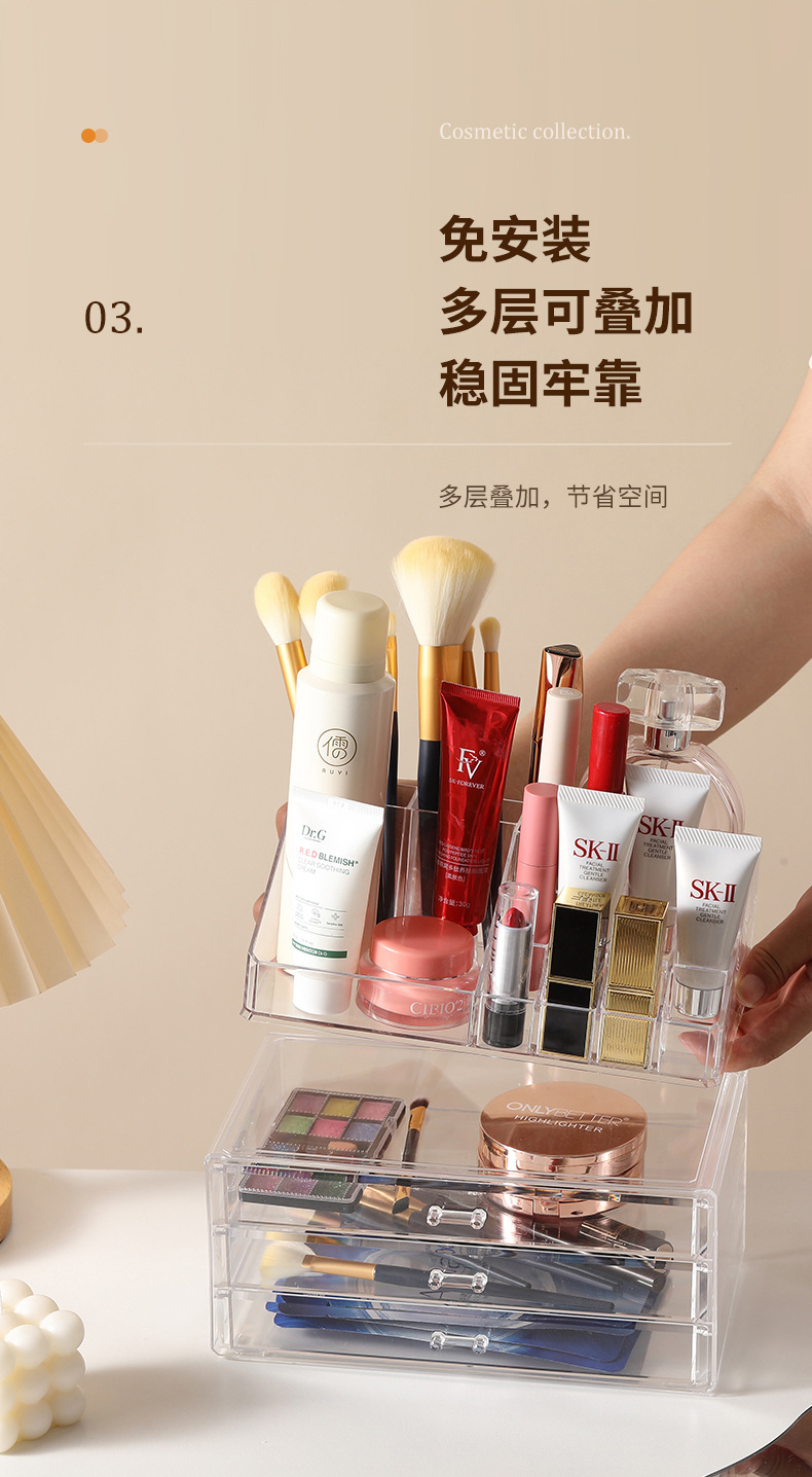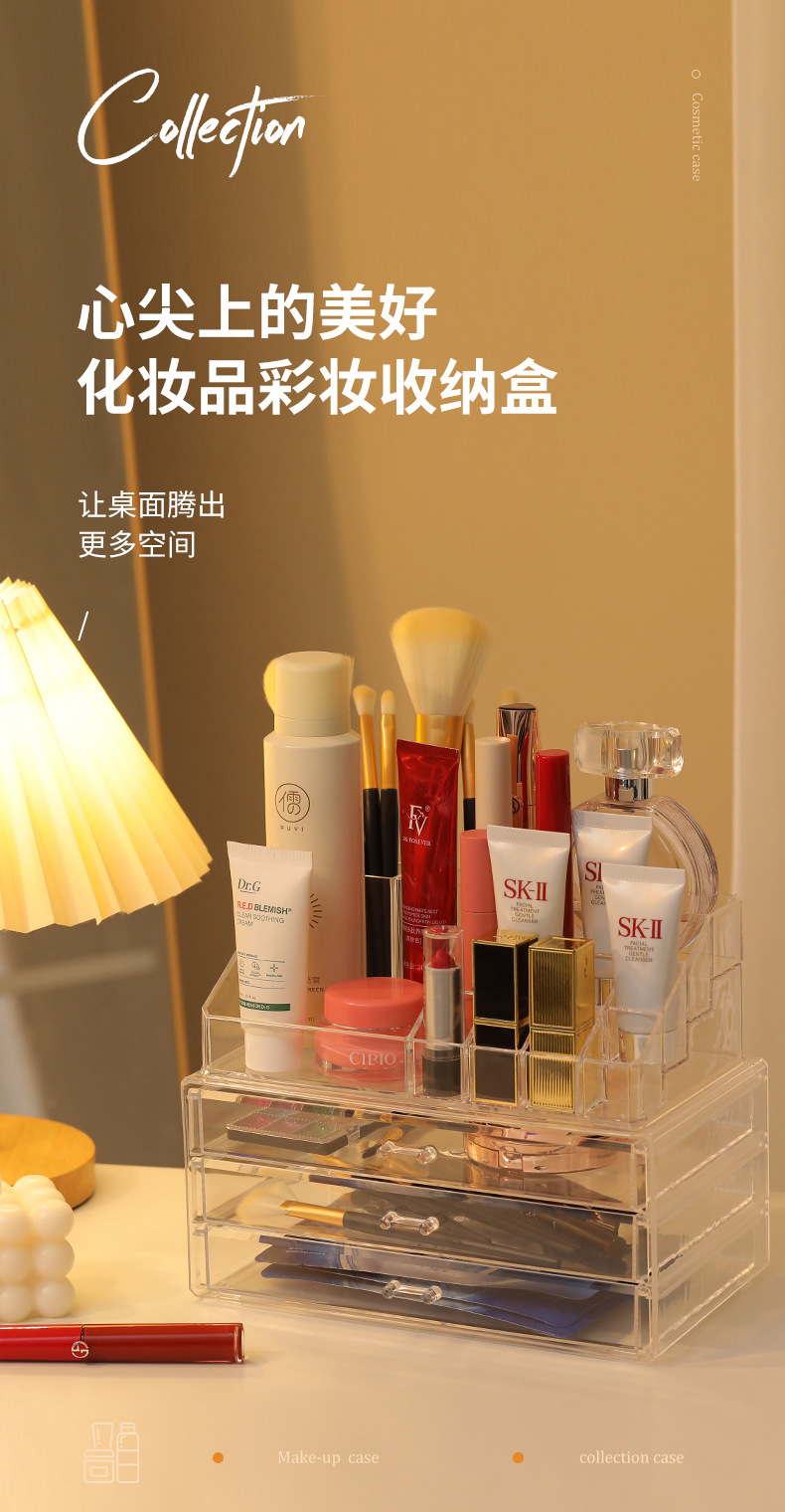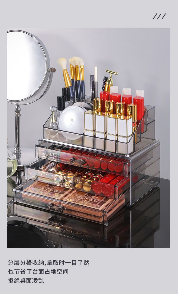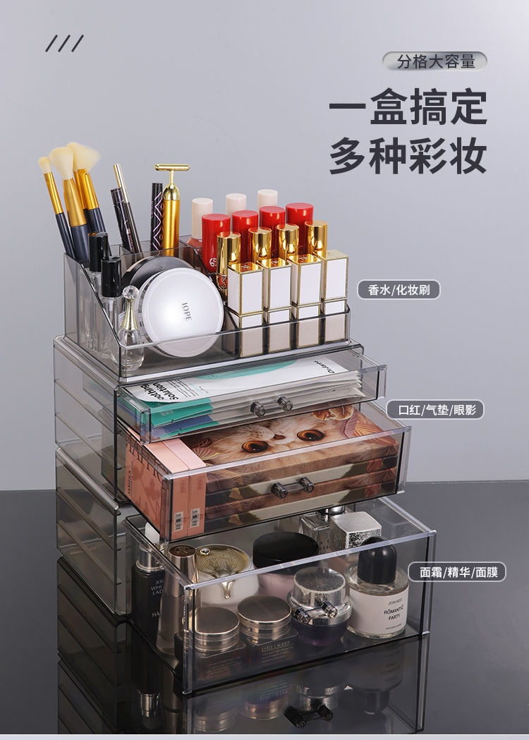 桌面护肤品收纳盒大容量透明抽屉式化妆品置物架梳妆台多层整理盒