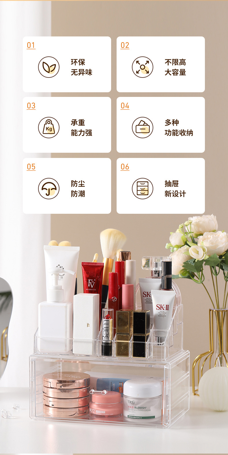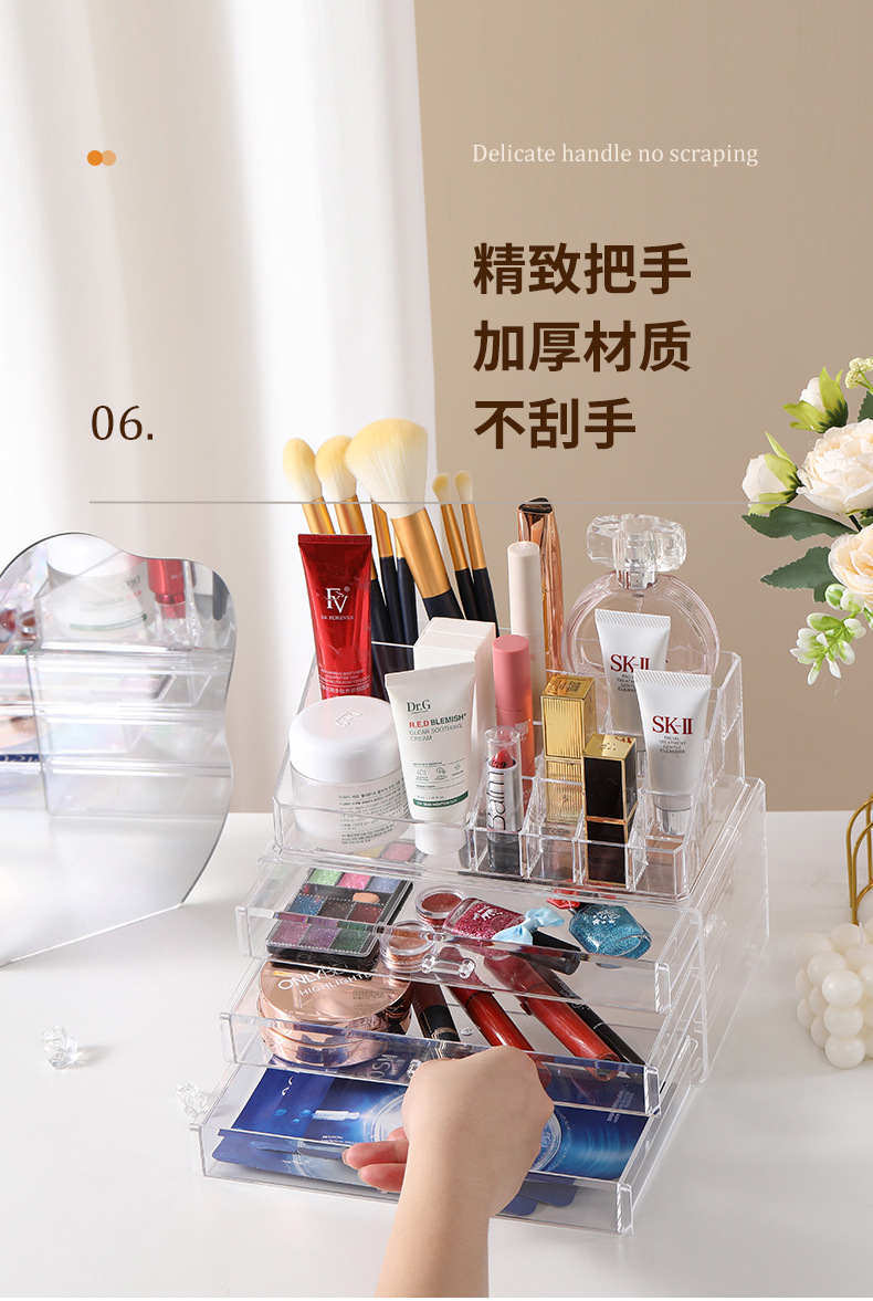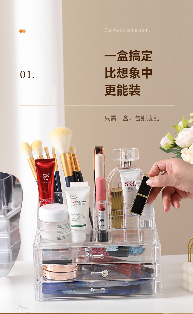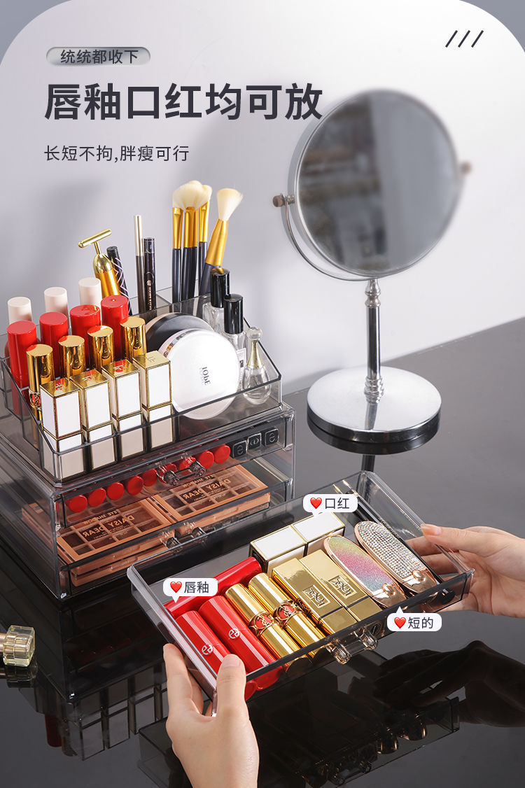 桌面护肤品收纳盒大容量透明抽屉式化妆品置物架梳妆台多层整理盒