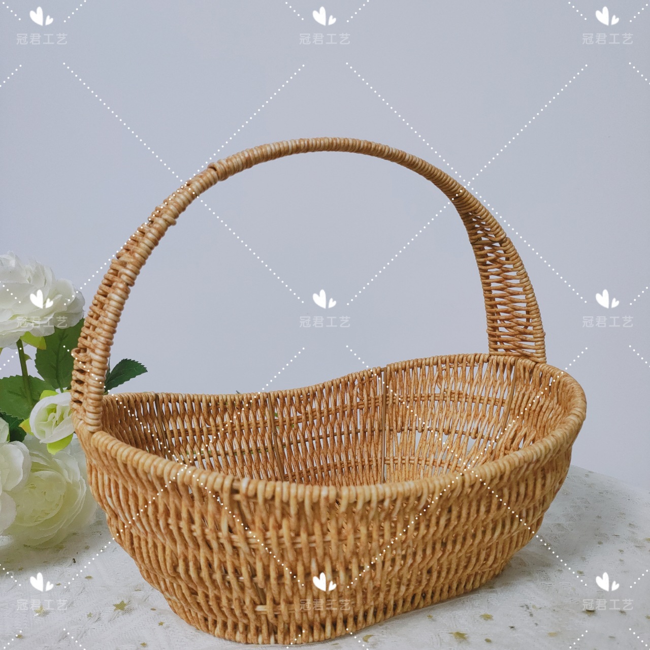 仿藤编手提花篮铁艺造型鲜花绿植篮子手工编织小花篮客厅装饰摆件