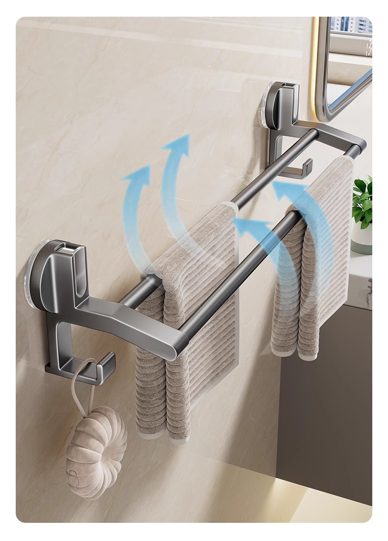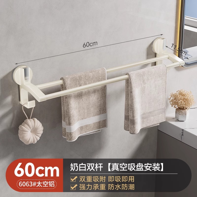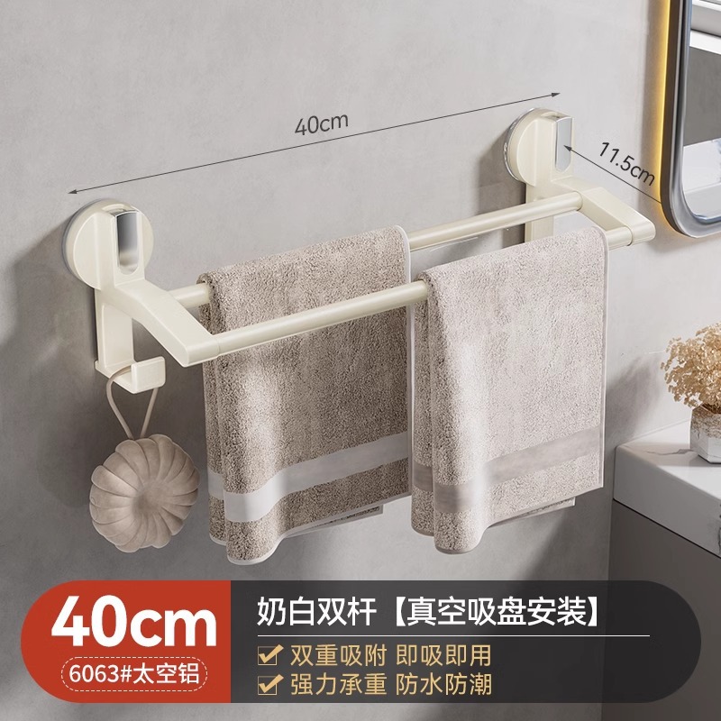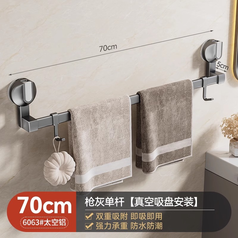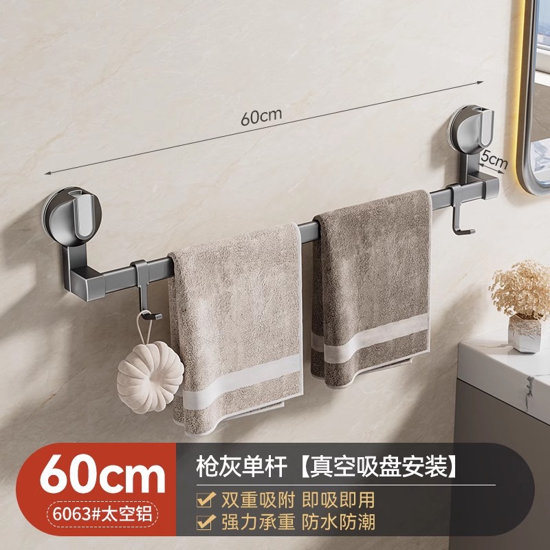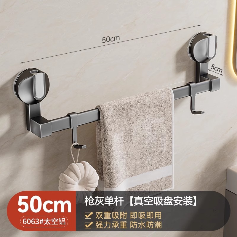 强力吸盘毛巾架卫生间免打孔浴室毛巾杆置物架子厕所单杆双杆挂杆