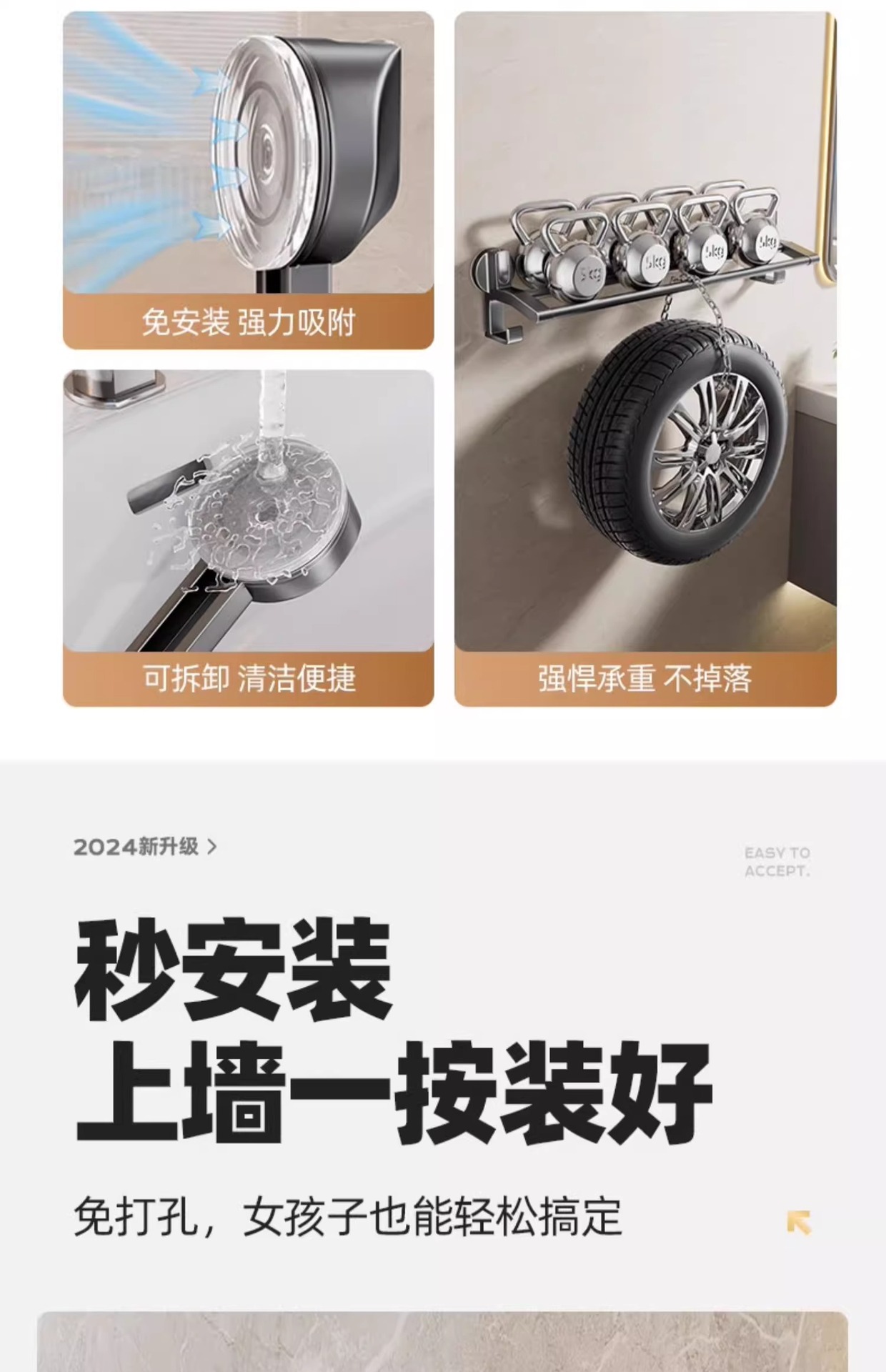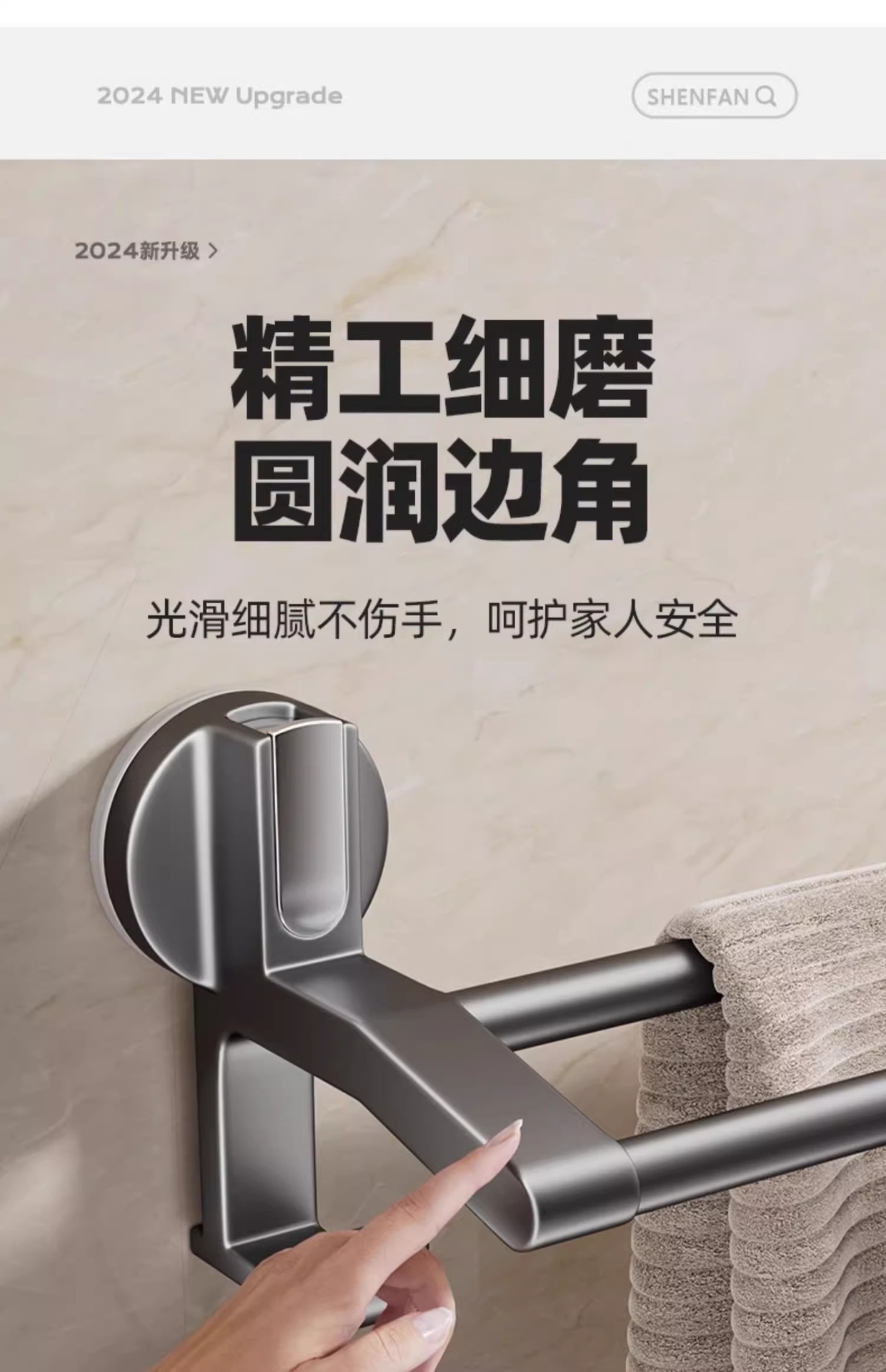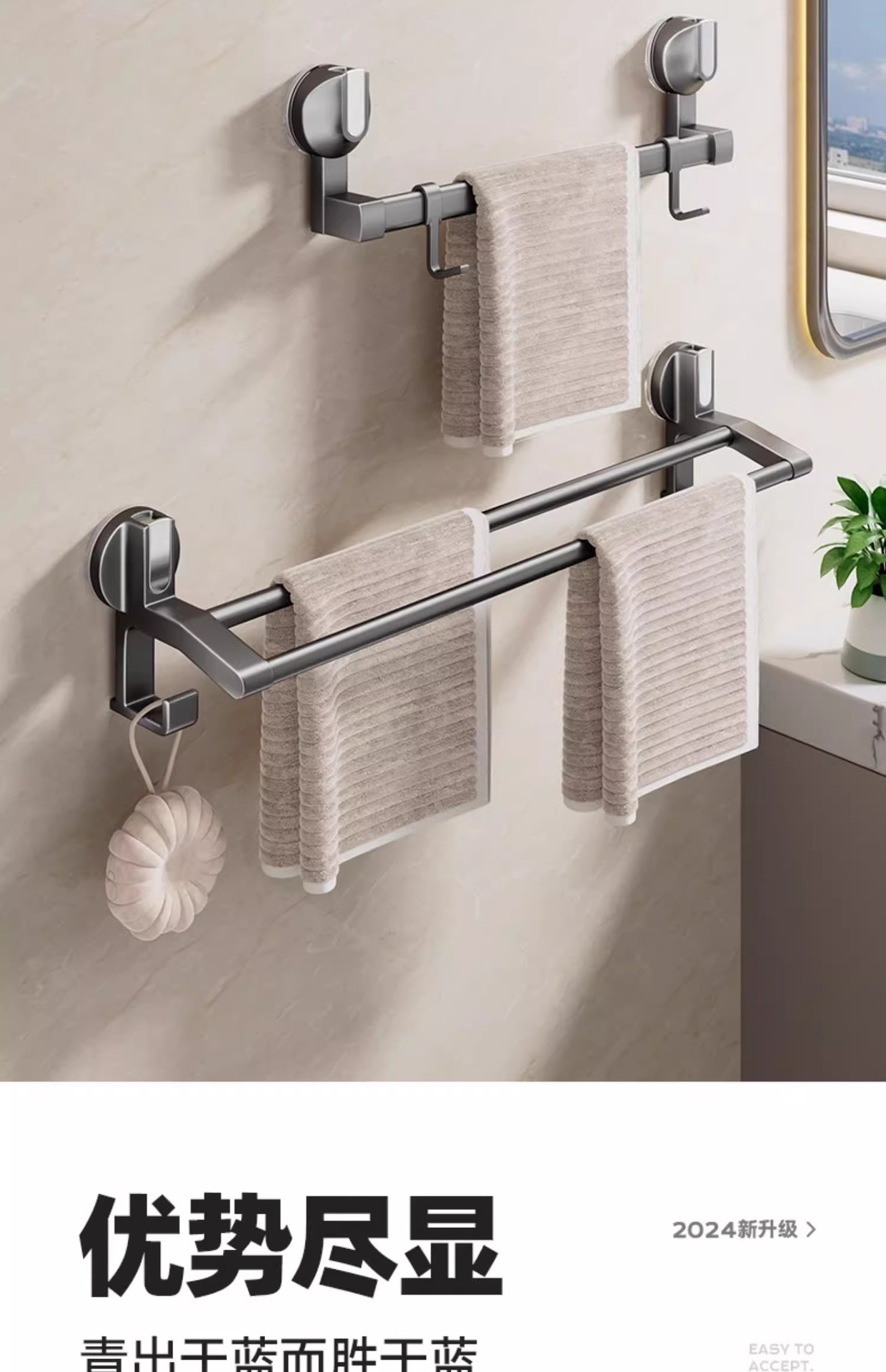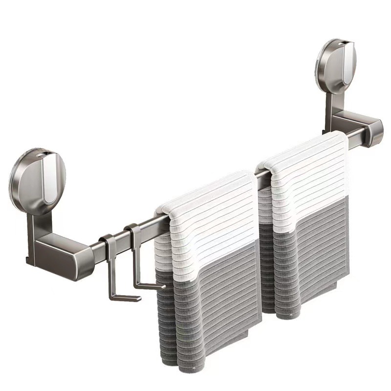 强力吸盘毛巾架卫生间免打孔浴室毛巾杆置物架子厕所单杆双杆挂杆