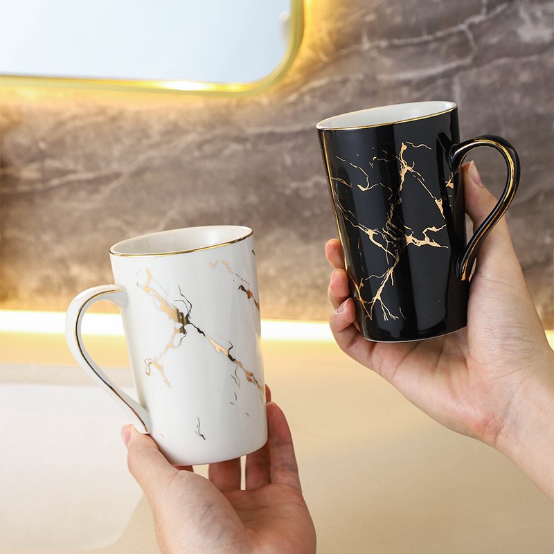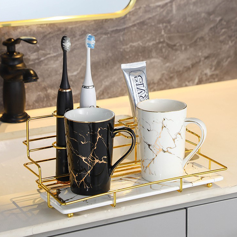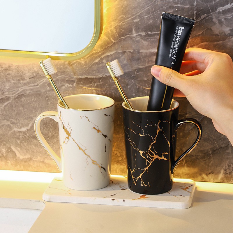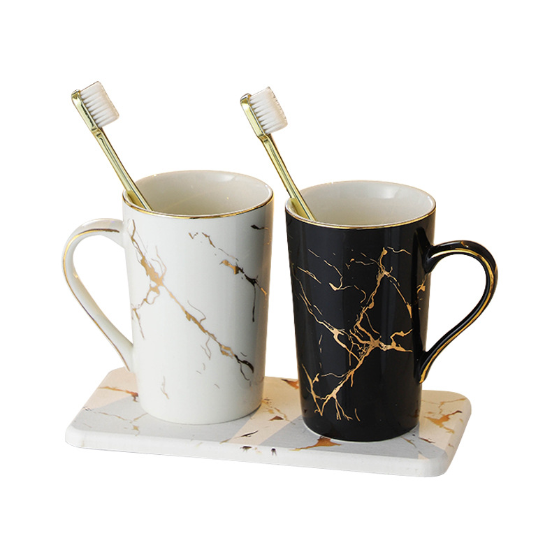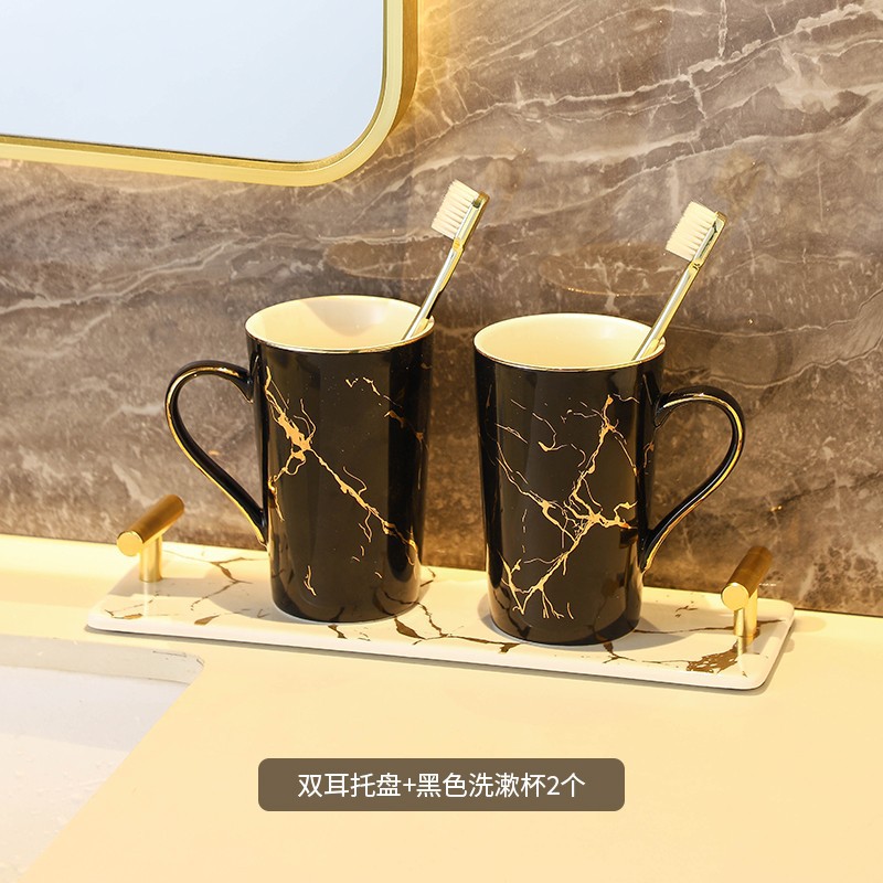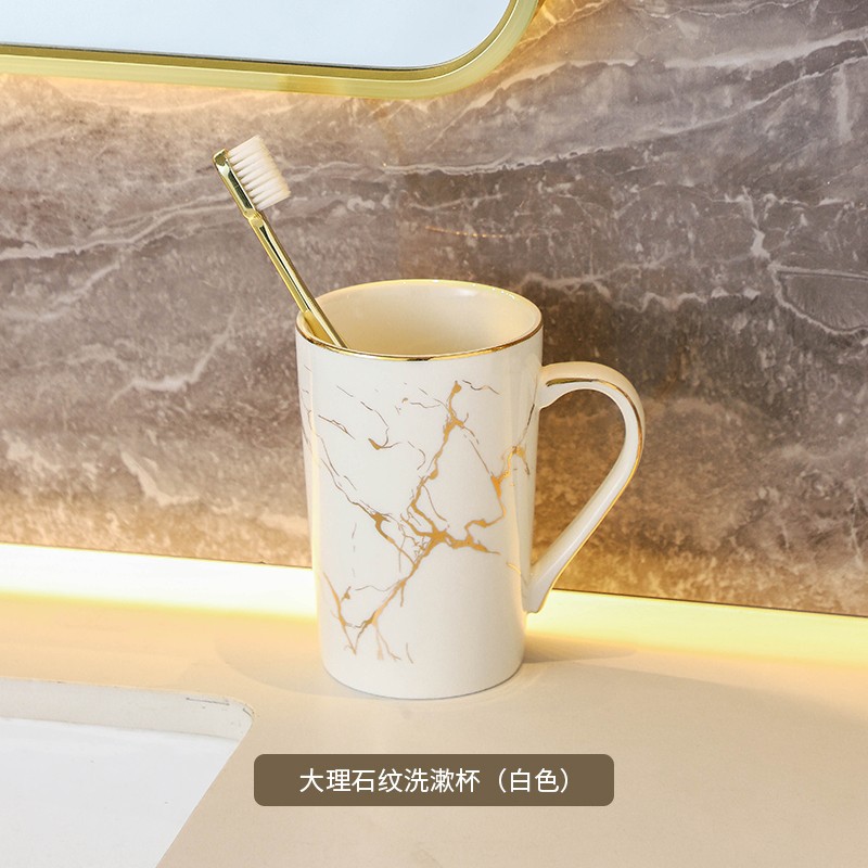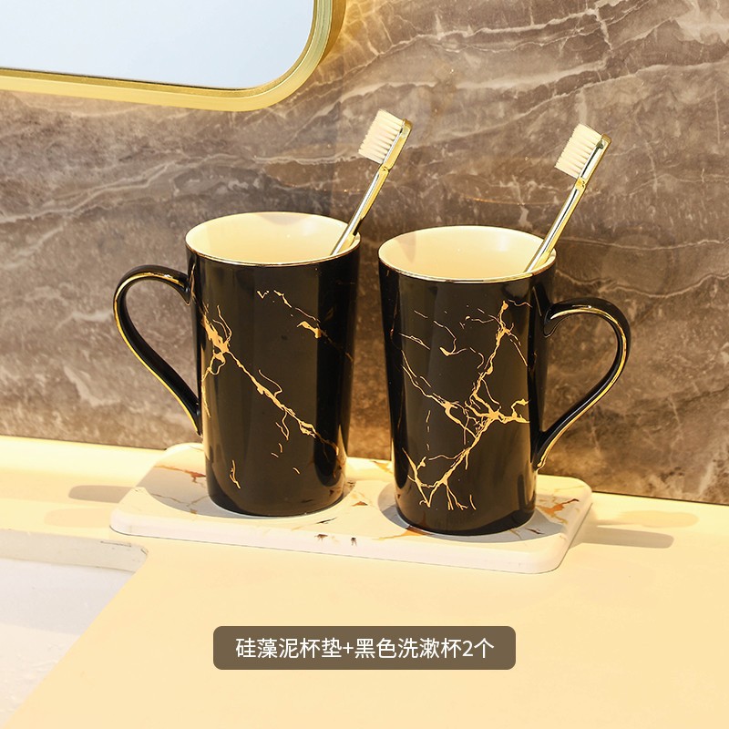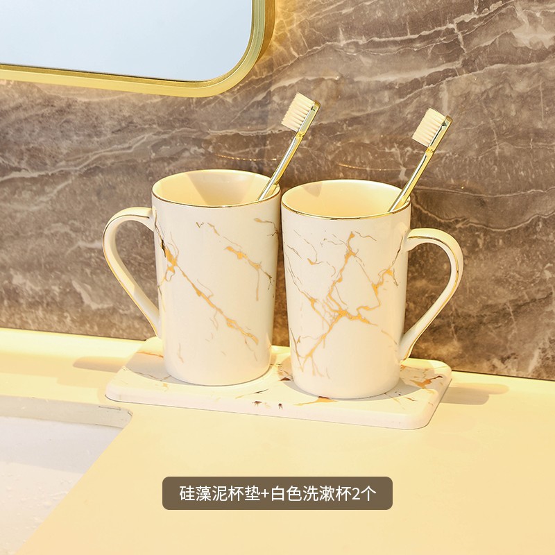 创意大理石金纹洗漱杯 民宿家用浴室情侣陶瓷漱口杯硅藻泥套装