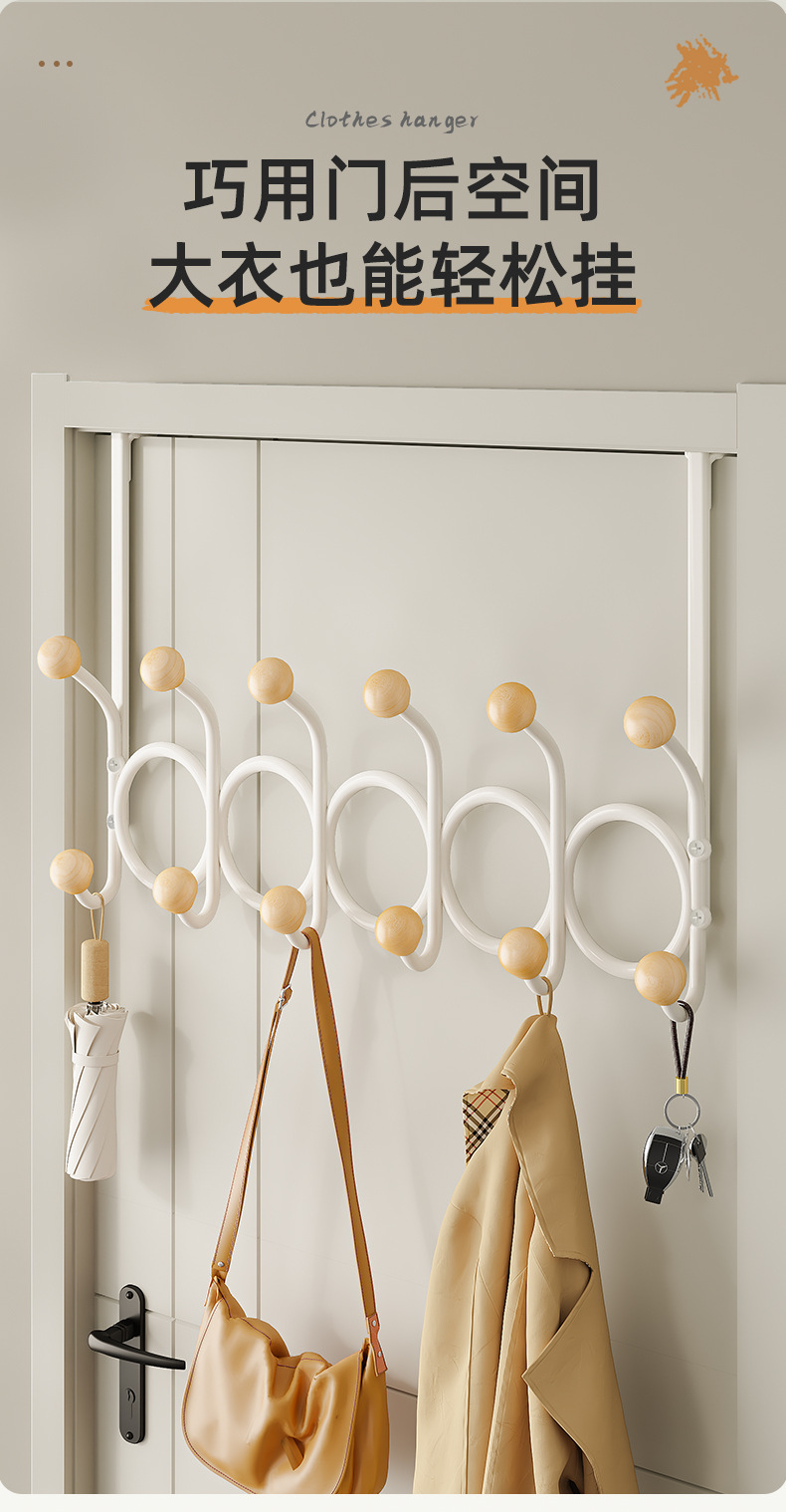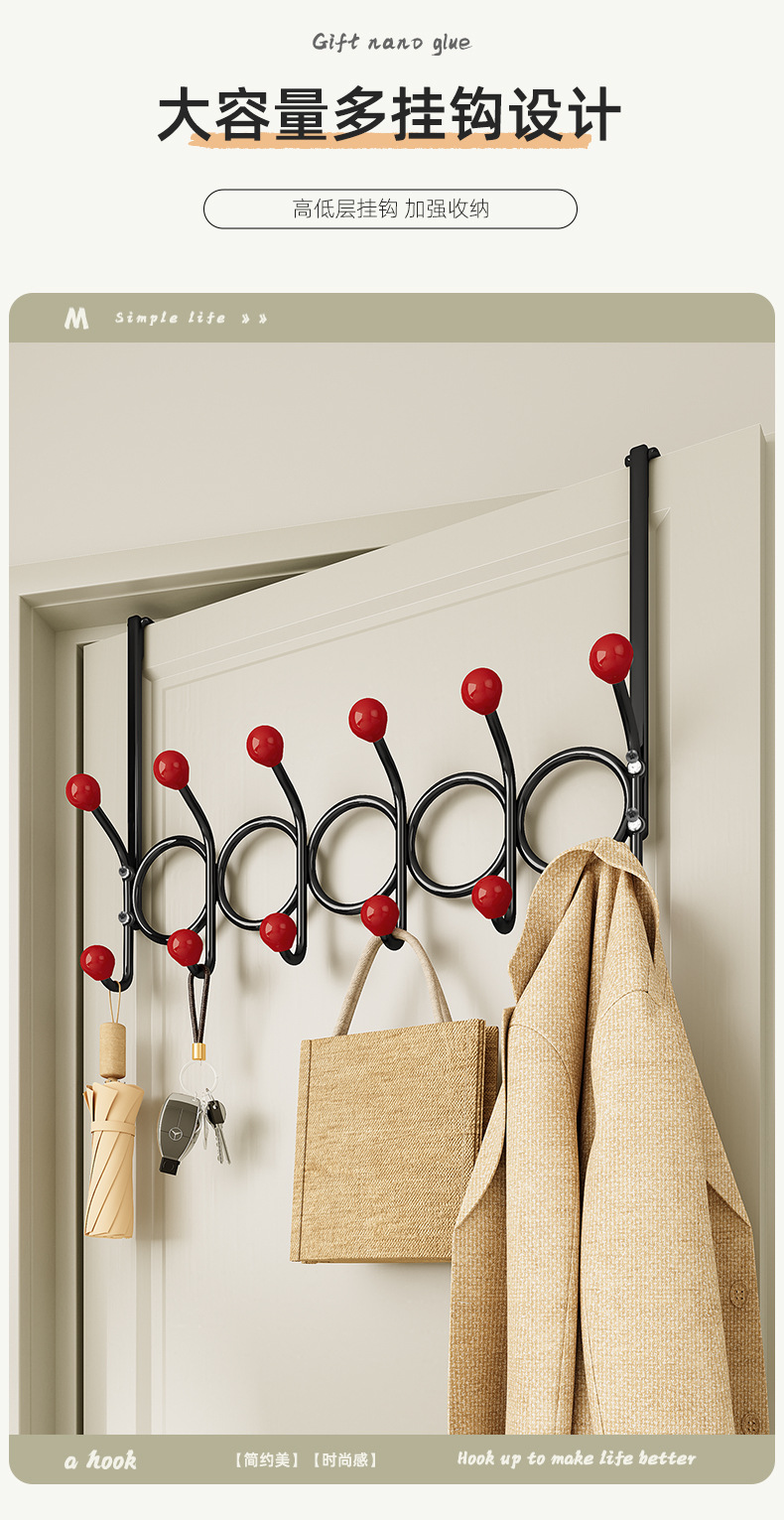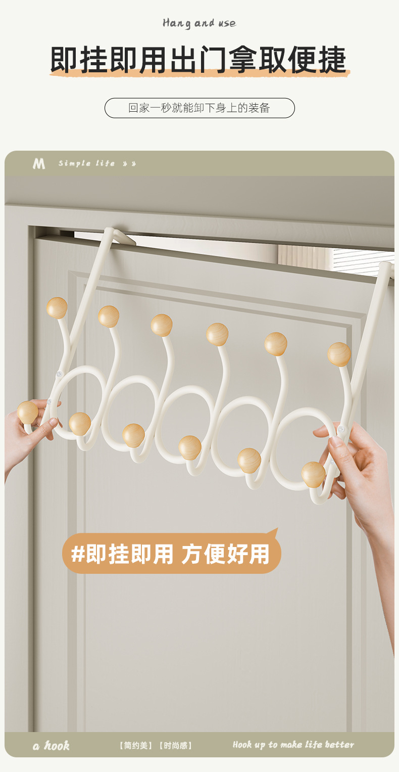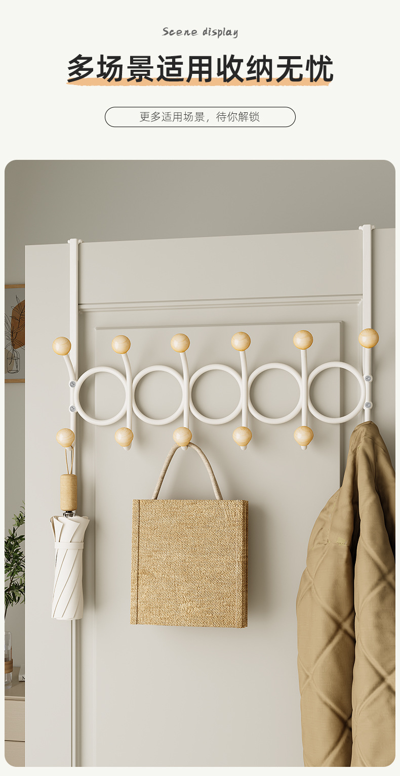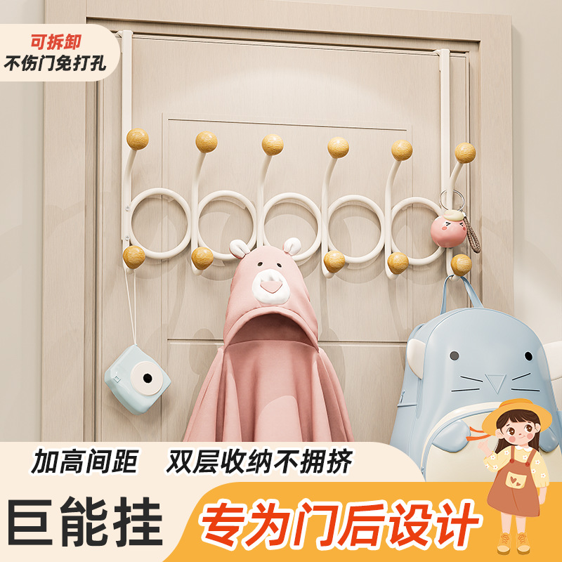 创意门后挂钩免打孔卧室入户门双排挂衣架家用铁艺原木门上挂衣钩