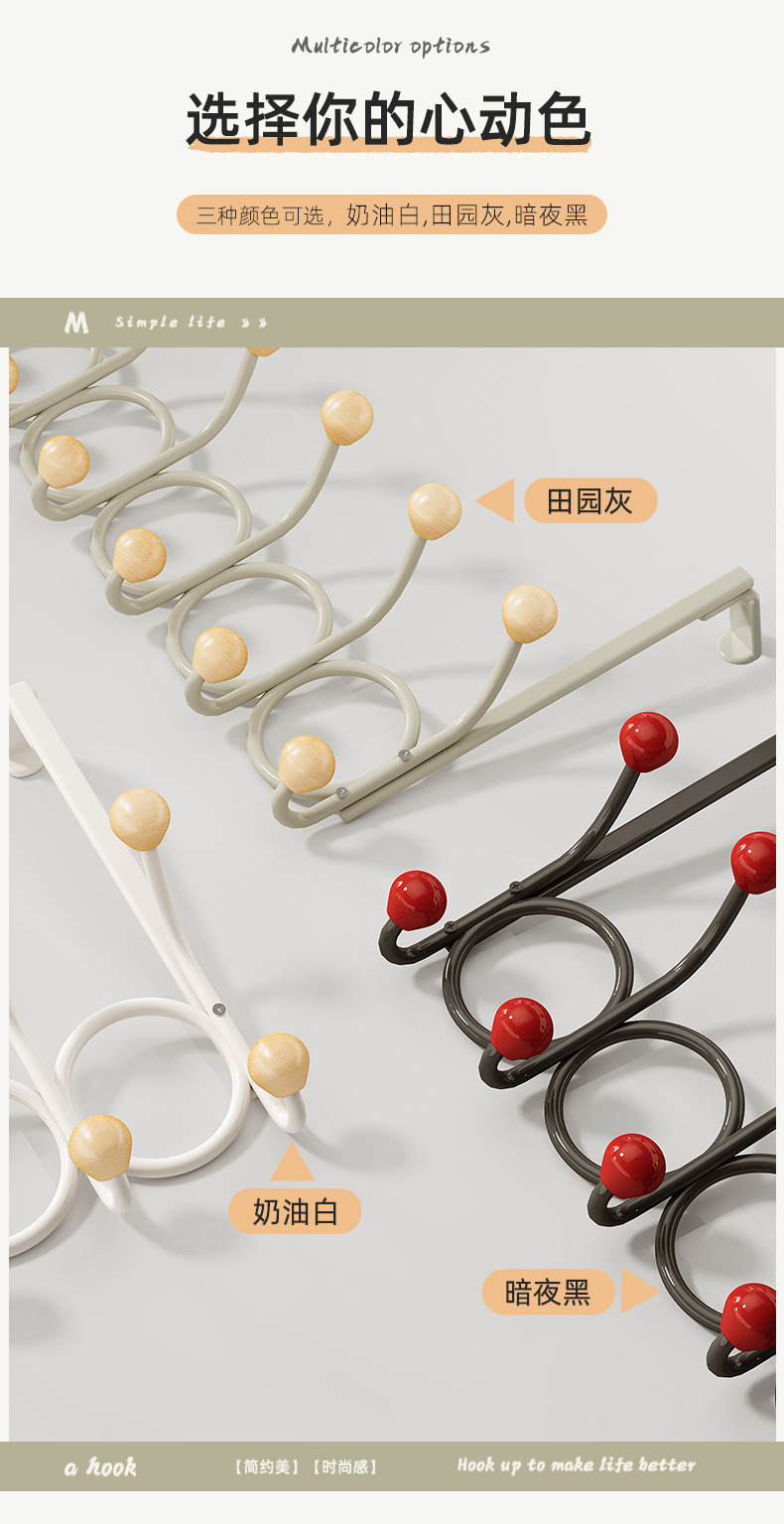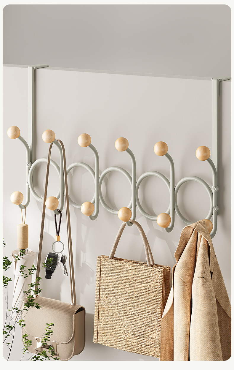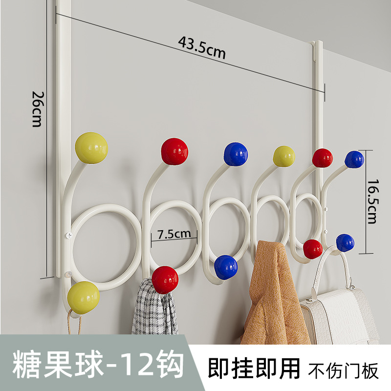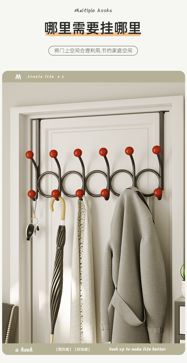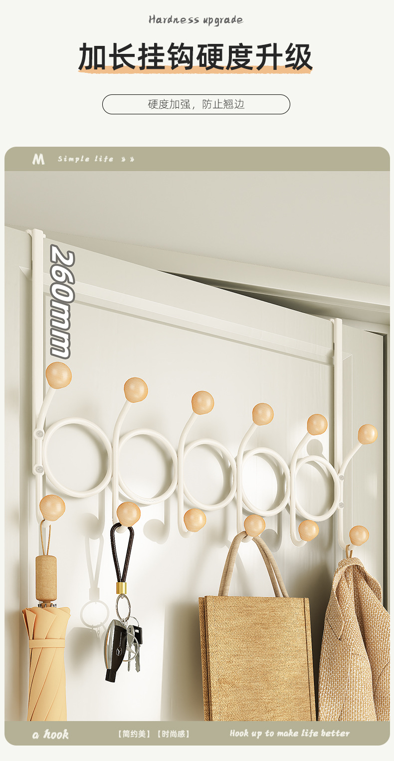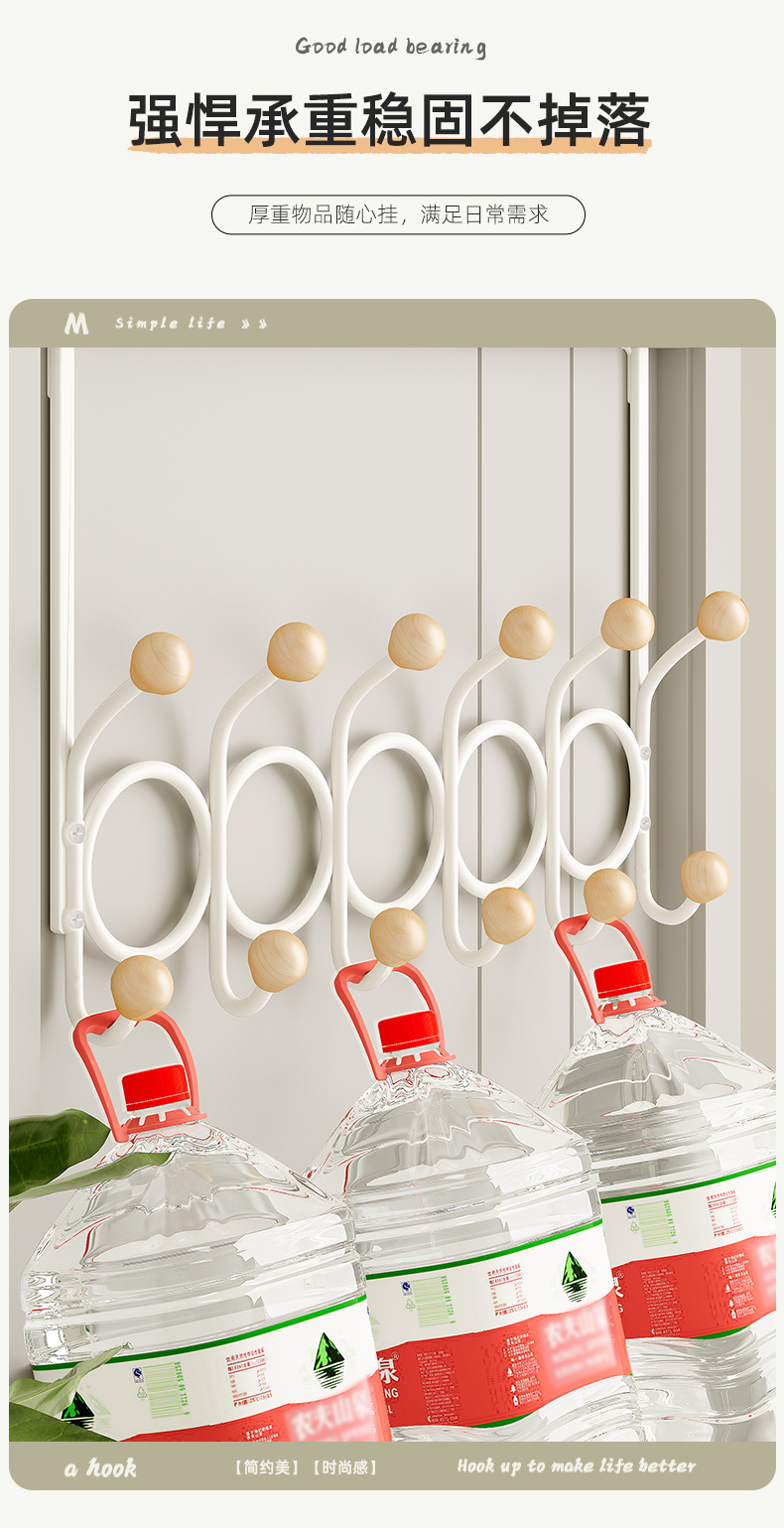 创意门后挂钩免打孔卧室入户门双排挂衣架家用铁艺原木门上挂衣钩