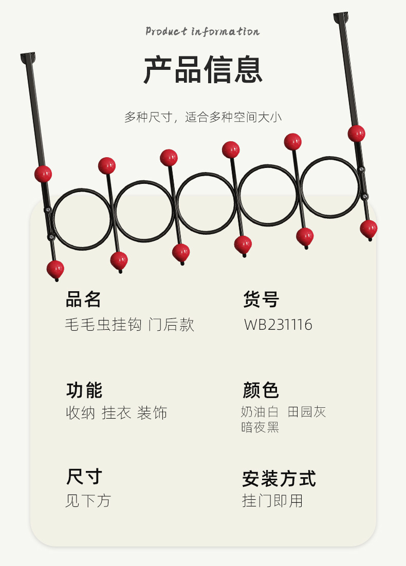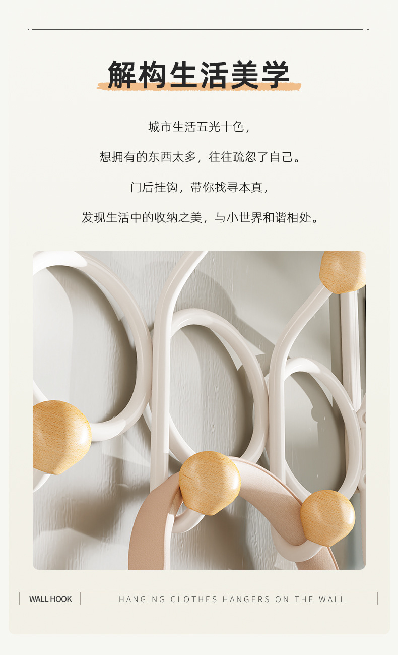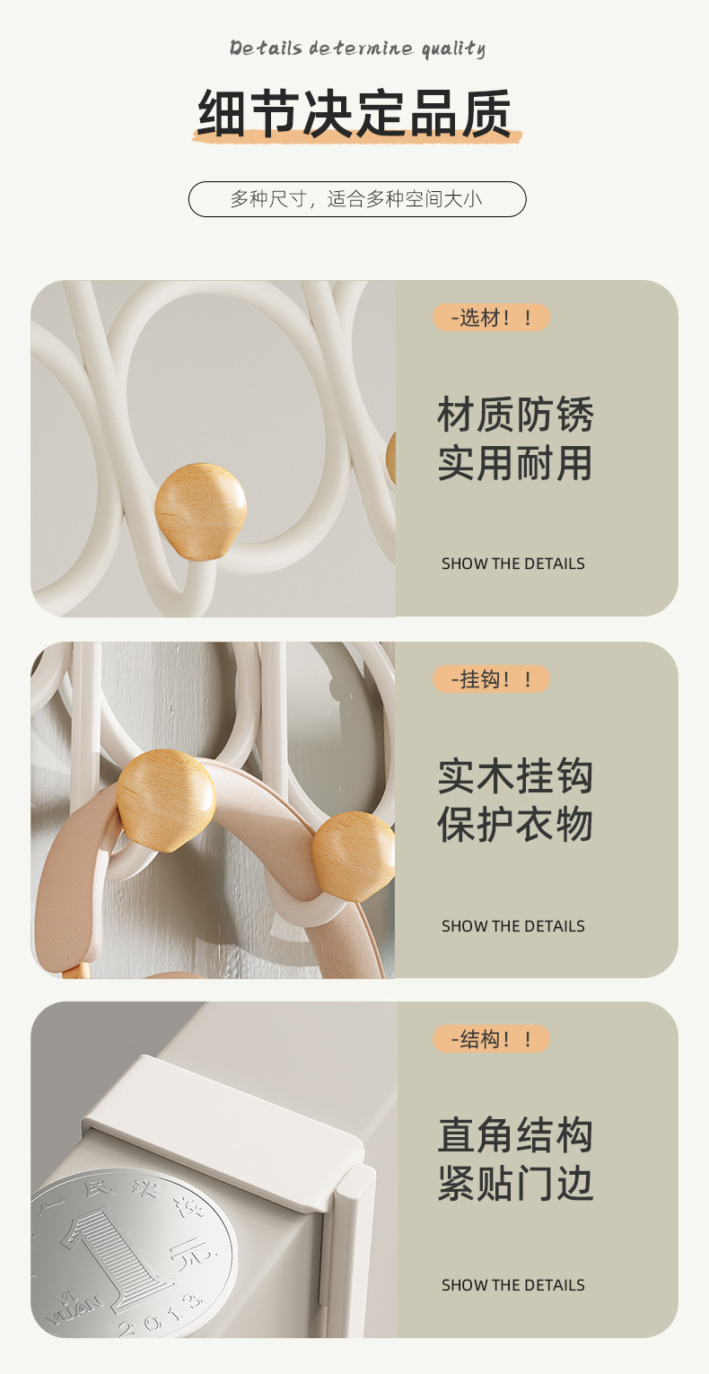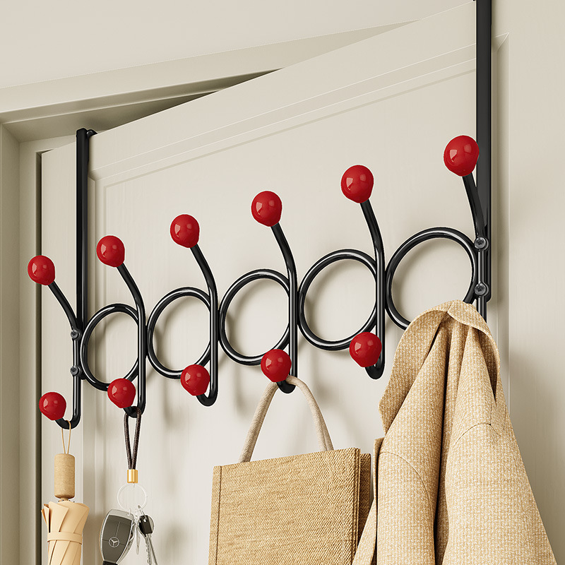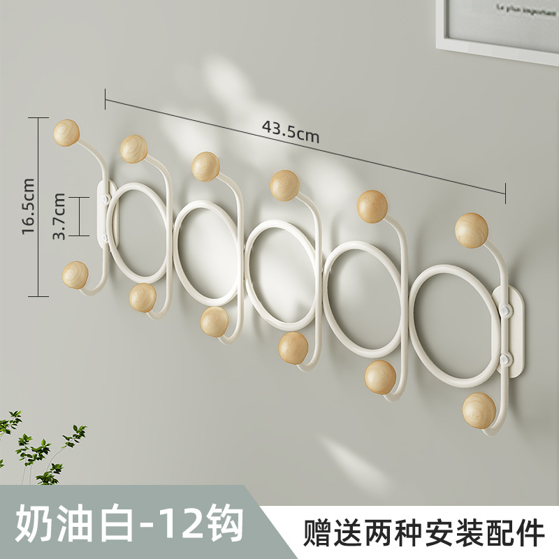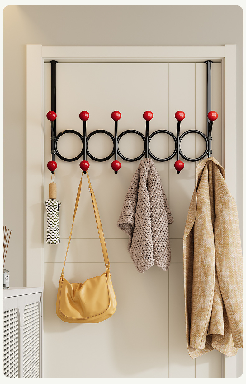 创意门后挂钩免打孔卧室入户门双排挂衣架家用铁艺原木门上挂衣钩