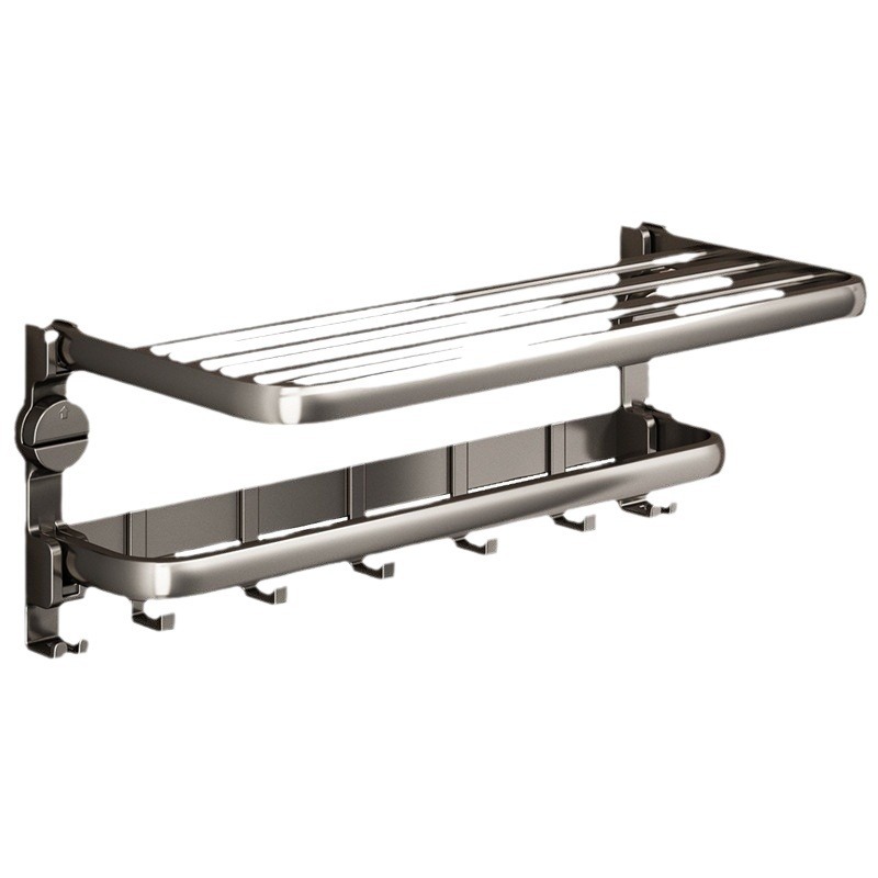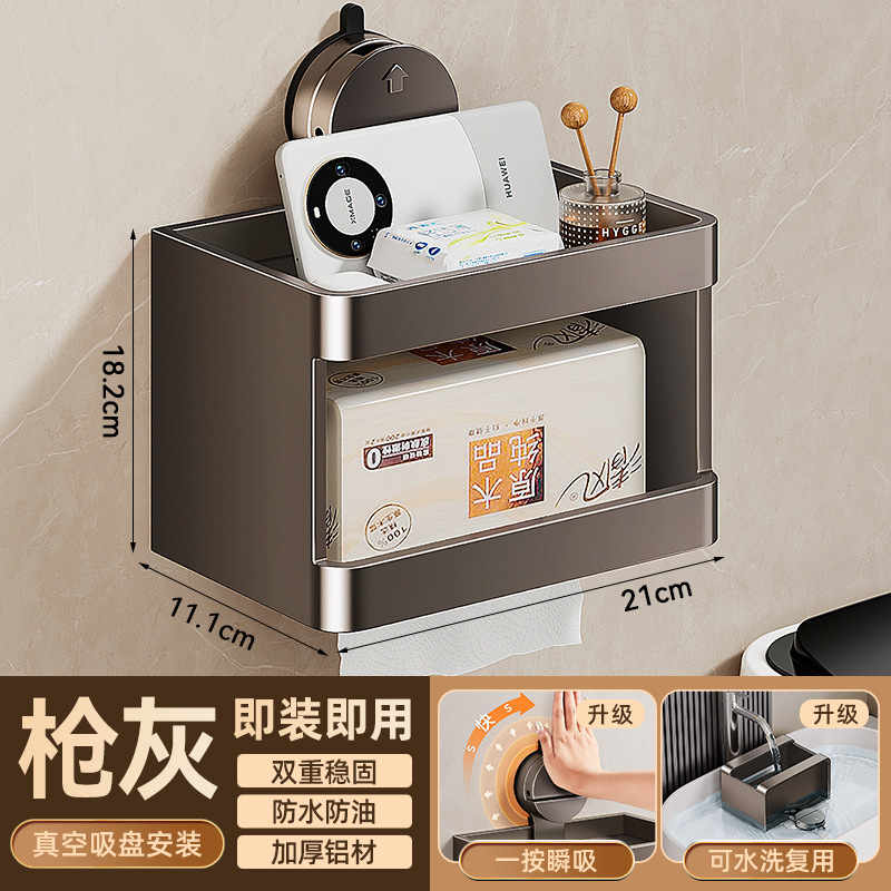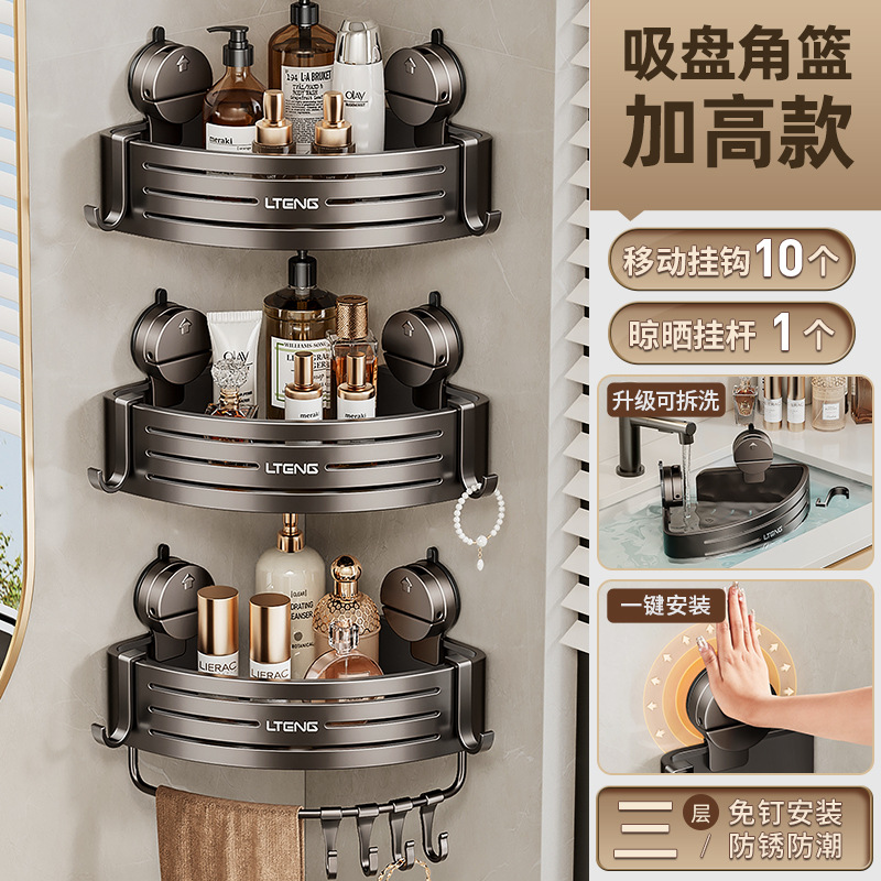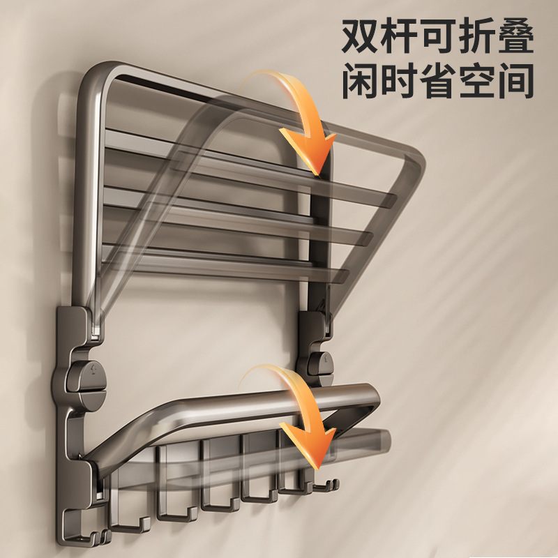 吸盘毛巾架枪灰浴室置物架一体太空铝浴巾架厕所挂架子吸盘式