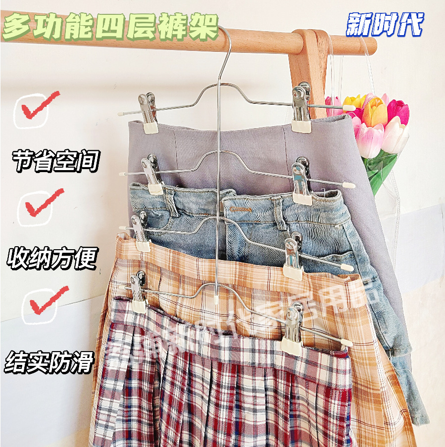 跨境厂家直销多层省空间裤子裙夹无痕防滑袜子夹收纳四层裤架家用